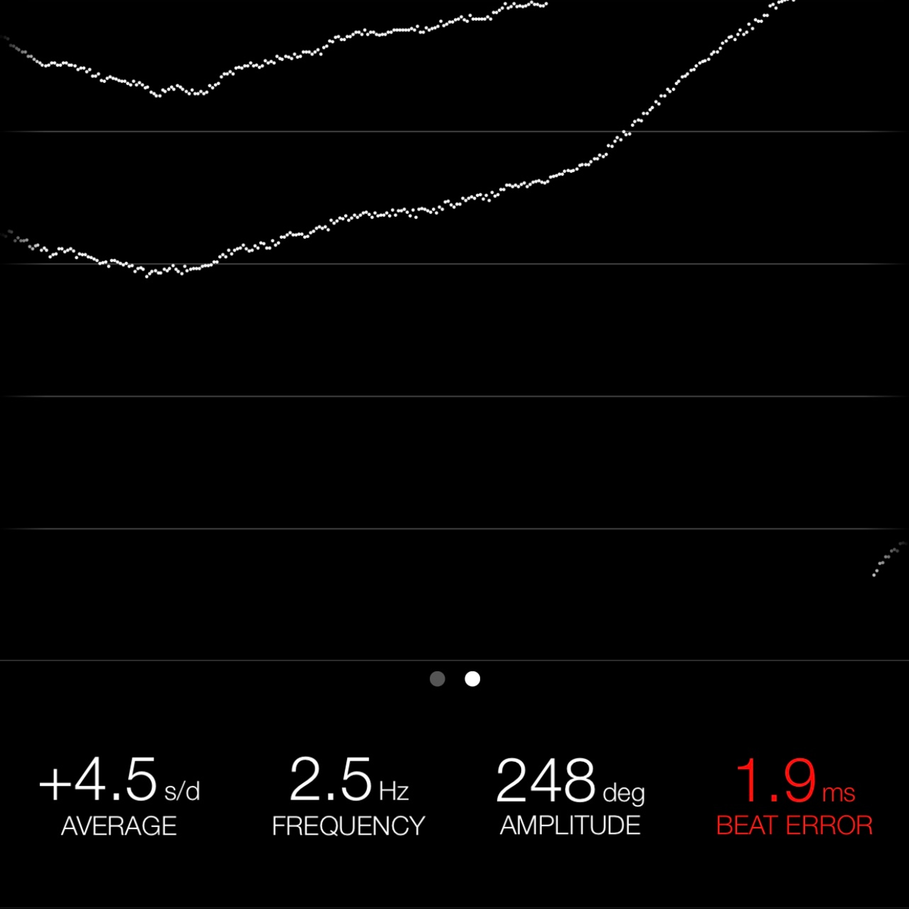 This reading was taken (crown down) with a ONEOF Accuracy Boutique Edition timing machine at time of cataloging. It is provided as a courtesy only, and shall not be construed as a warranty or guarantee of any kind. Please refer to our terms and conditions of sale for more information.