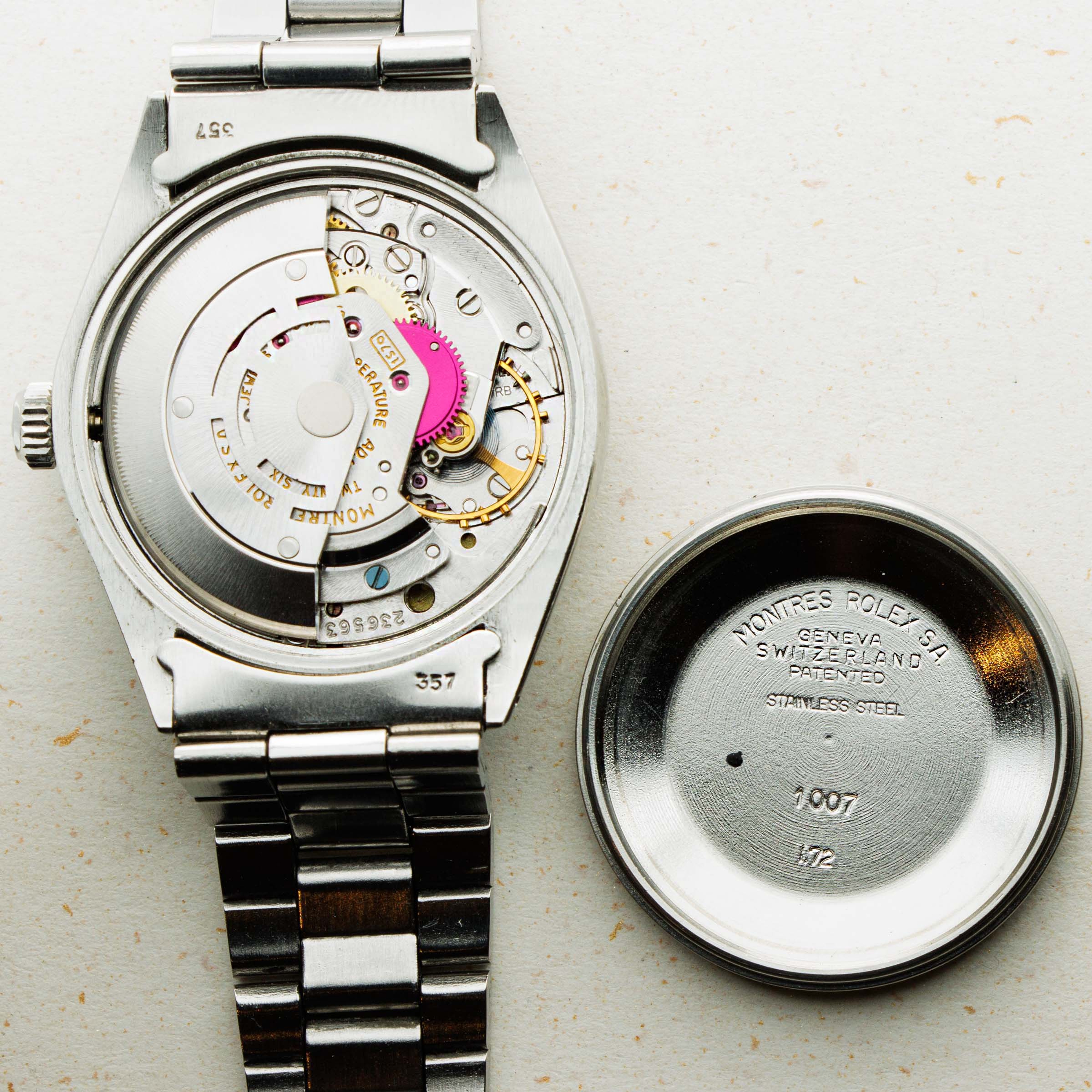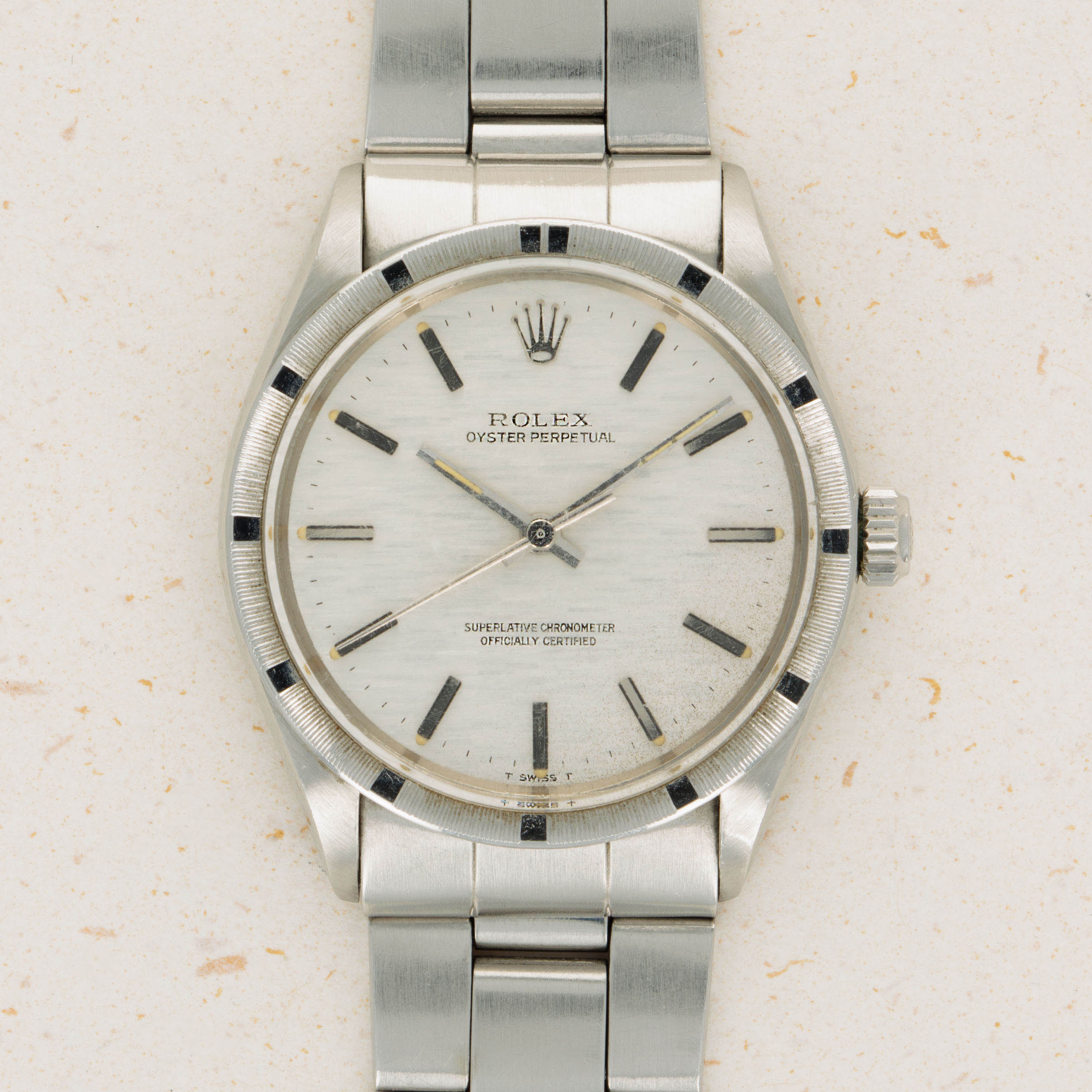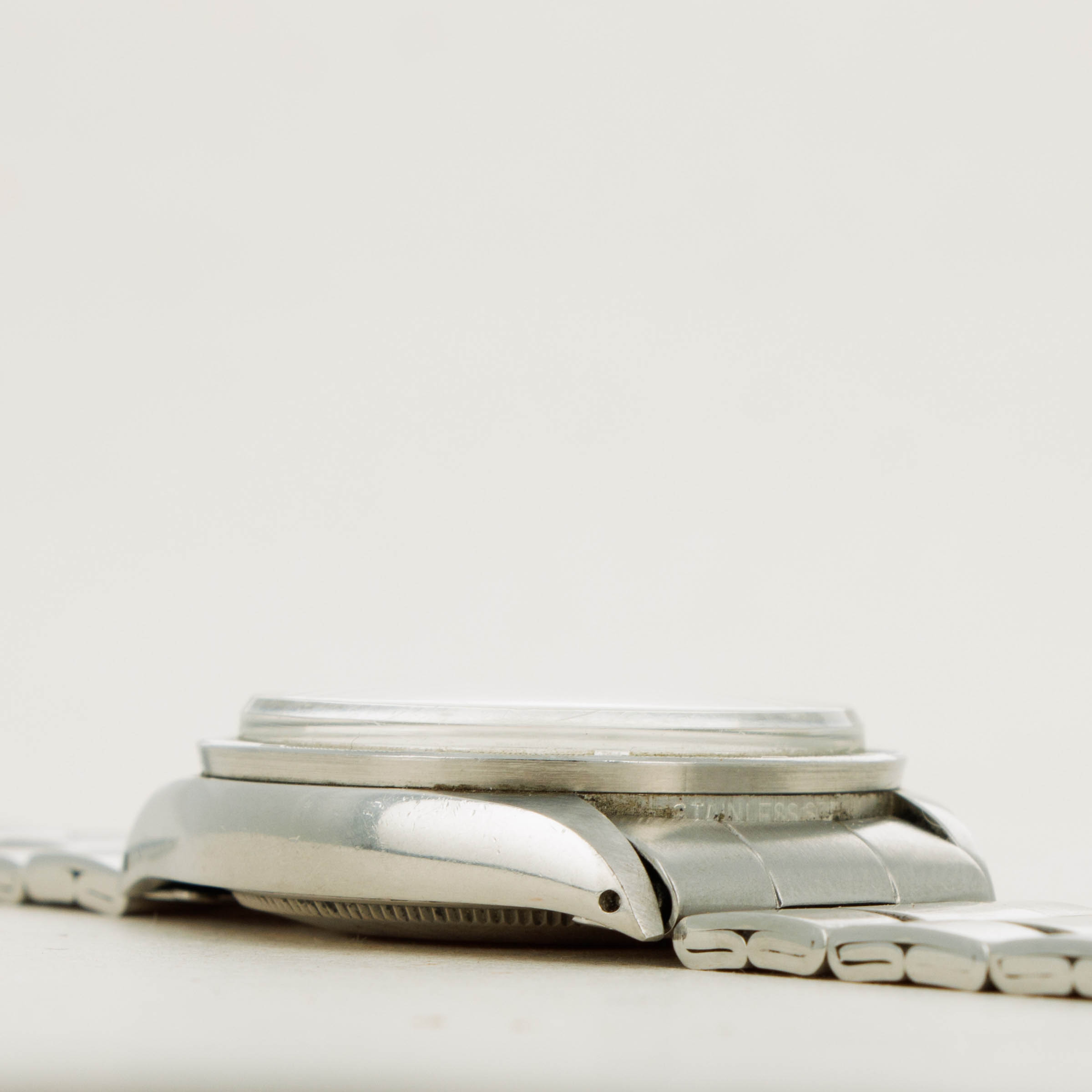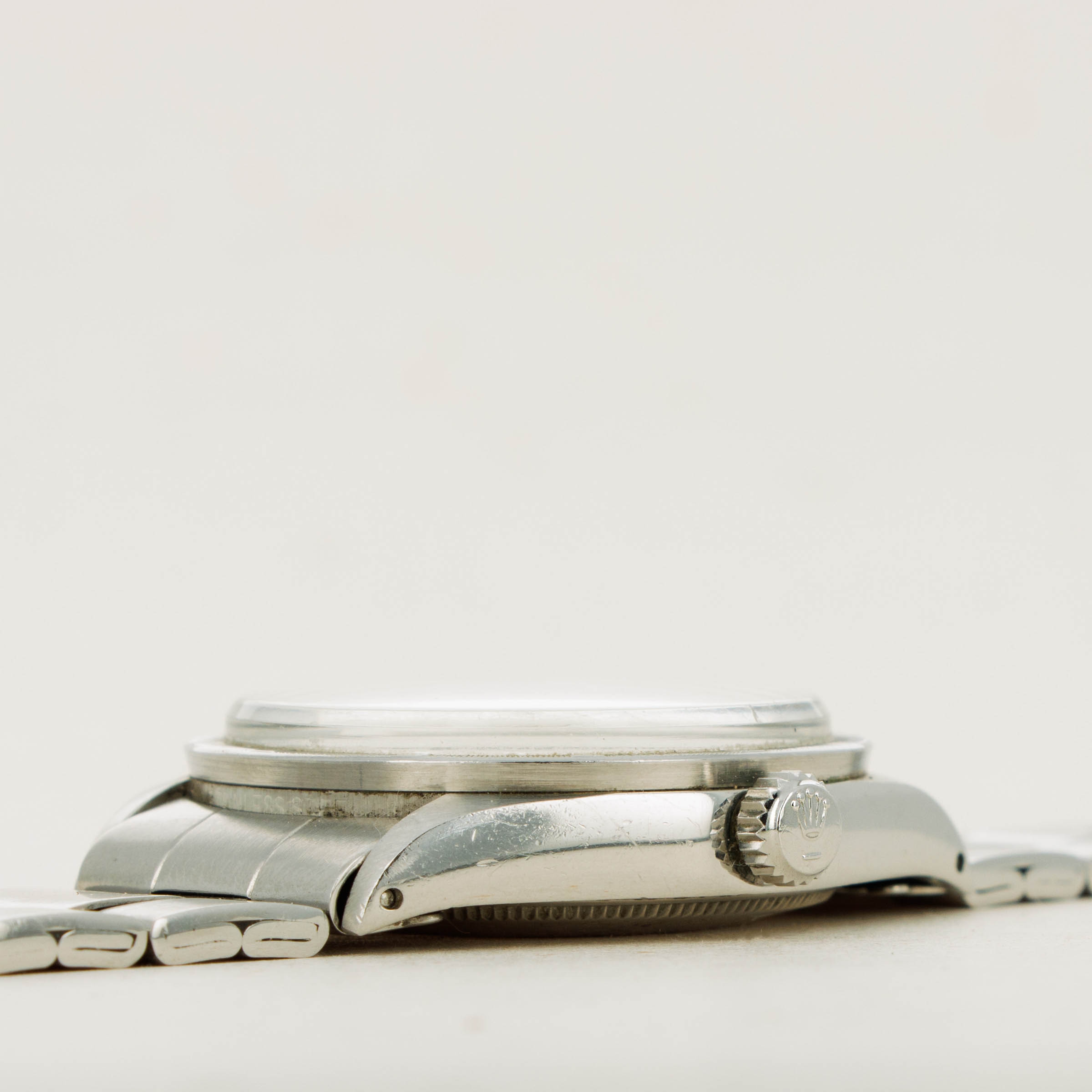 Featuring a robust construction for its time, the Oyster Perpetual's understated 34mm stainless steel case and bracelet allowed it handle the rough and tumble of life with ease, all while looking sophisticated and elegant, a balance it still manages to strike all these decades later.