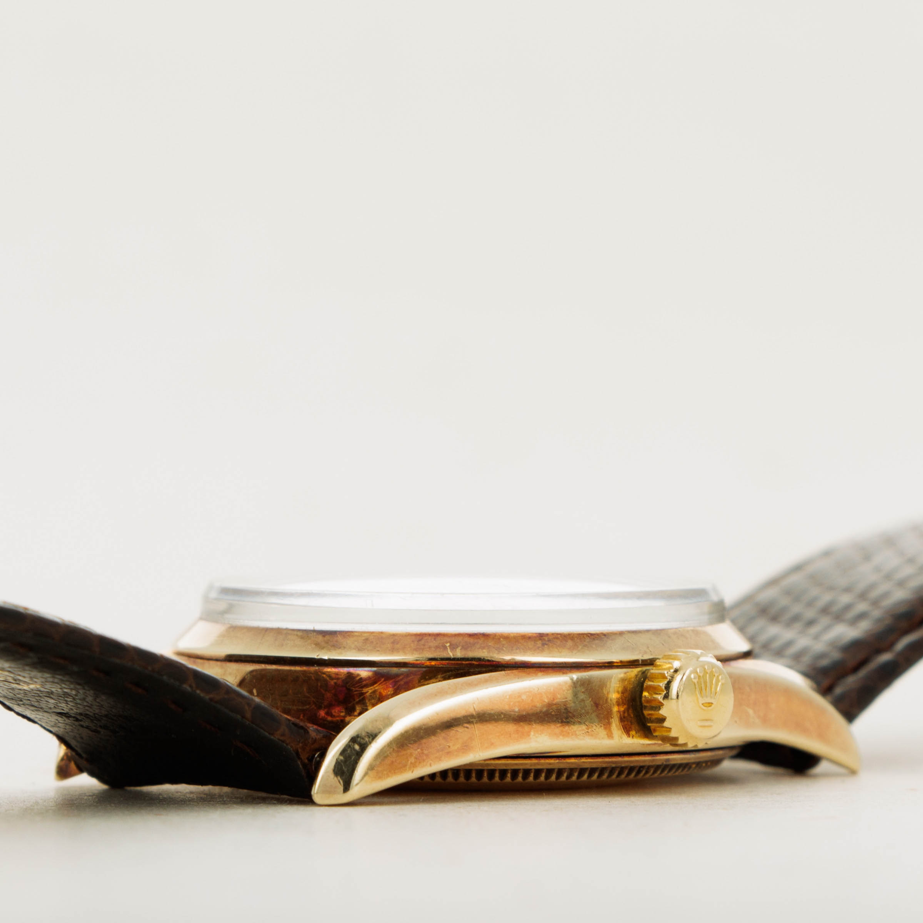 Easily the ref. 1011's most emblematic piece of design are its unique "Bombay" lugs that taper elegantly from its case with a confident candor that gives it a significantly unique aesthetic in comparison to its earlier Oyster Perpetual Bubbleback siblings.