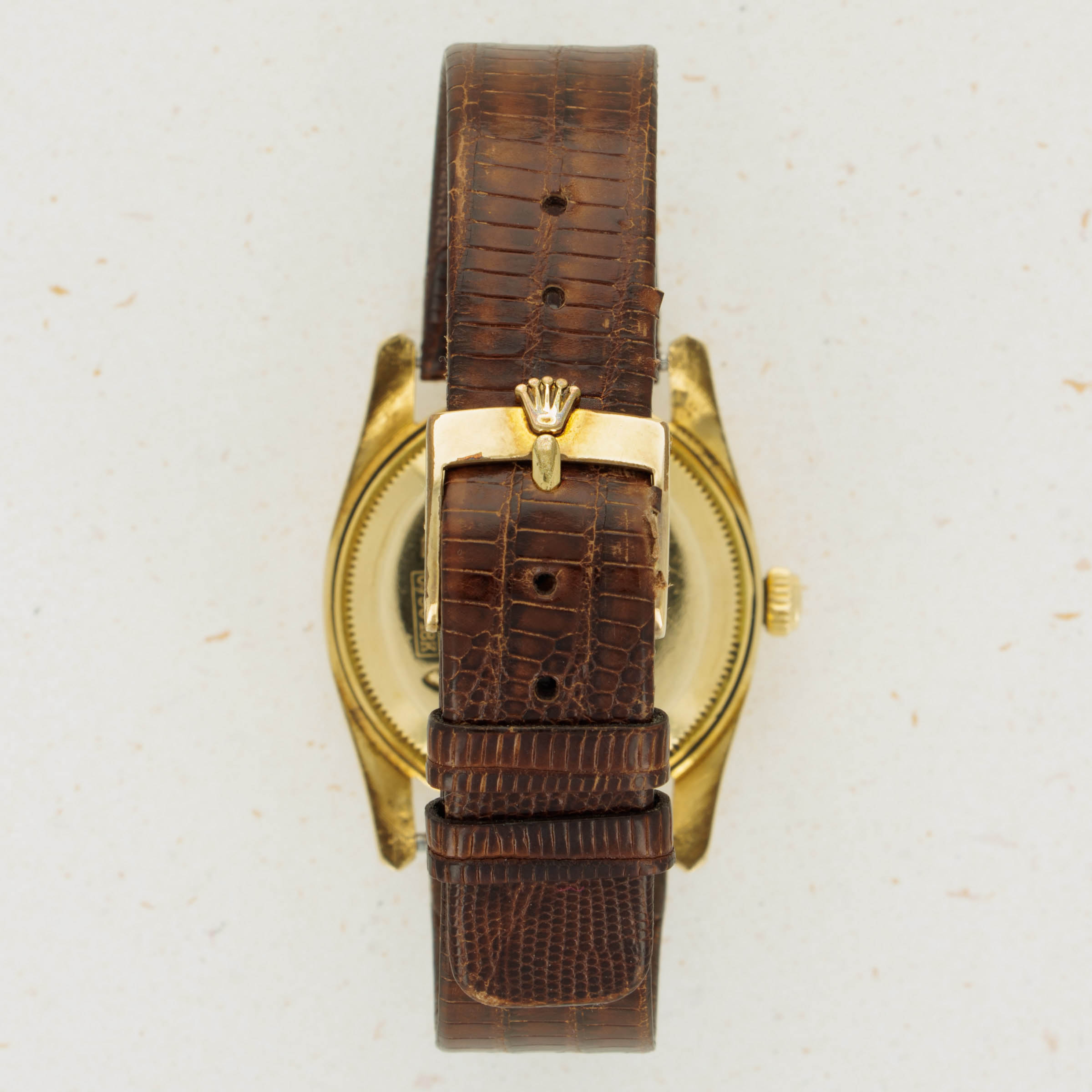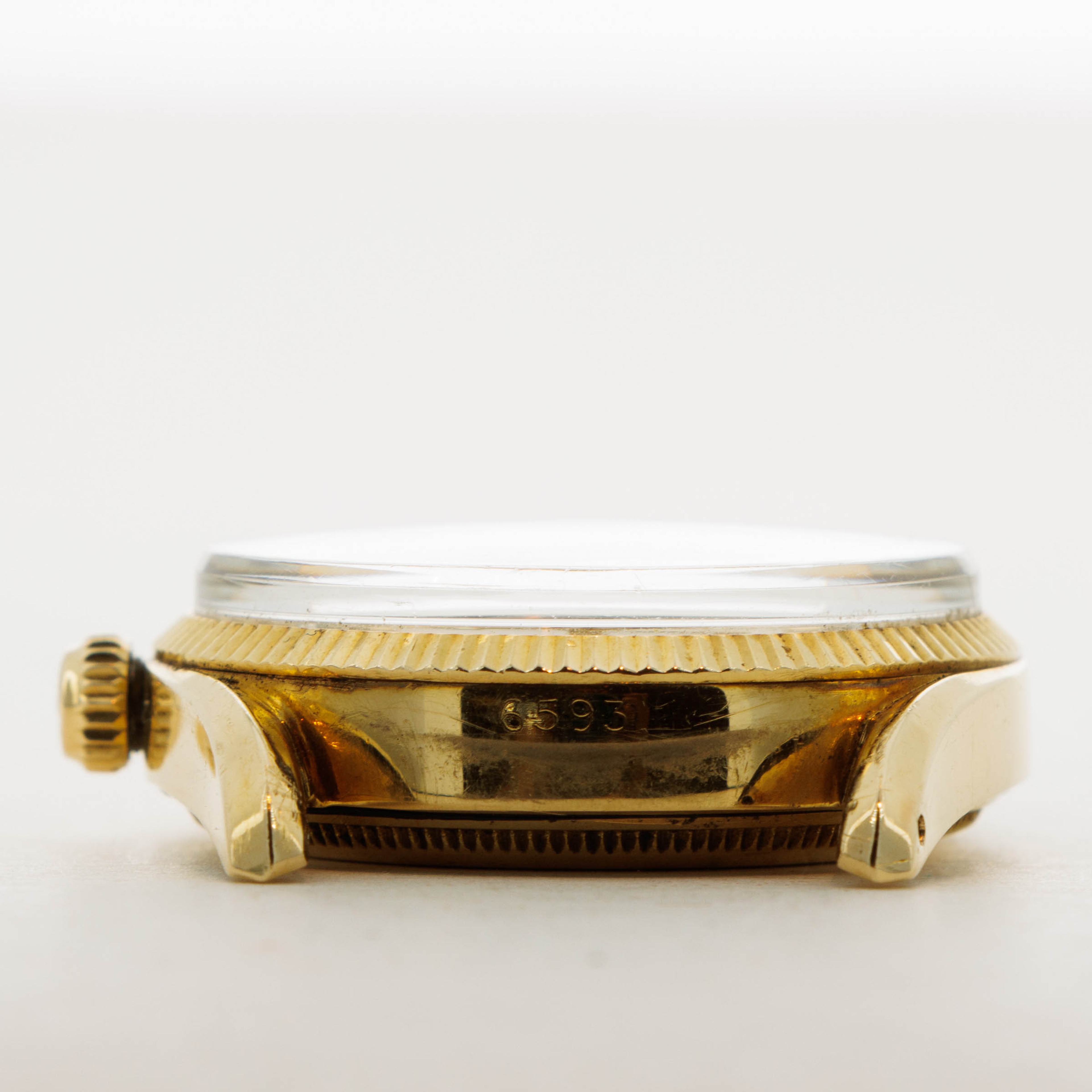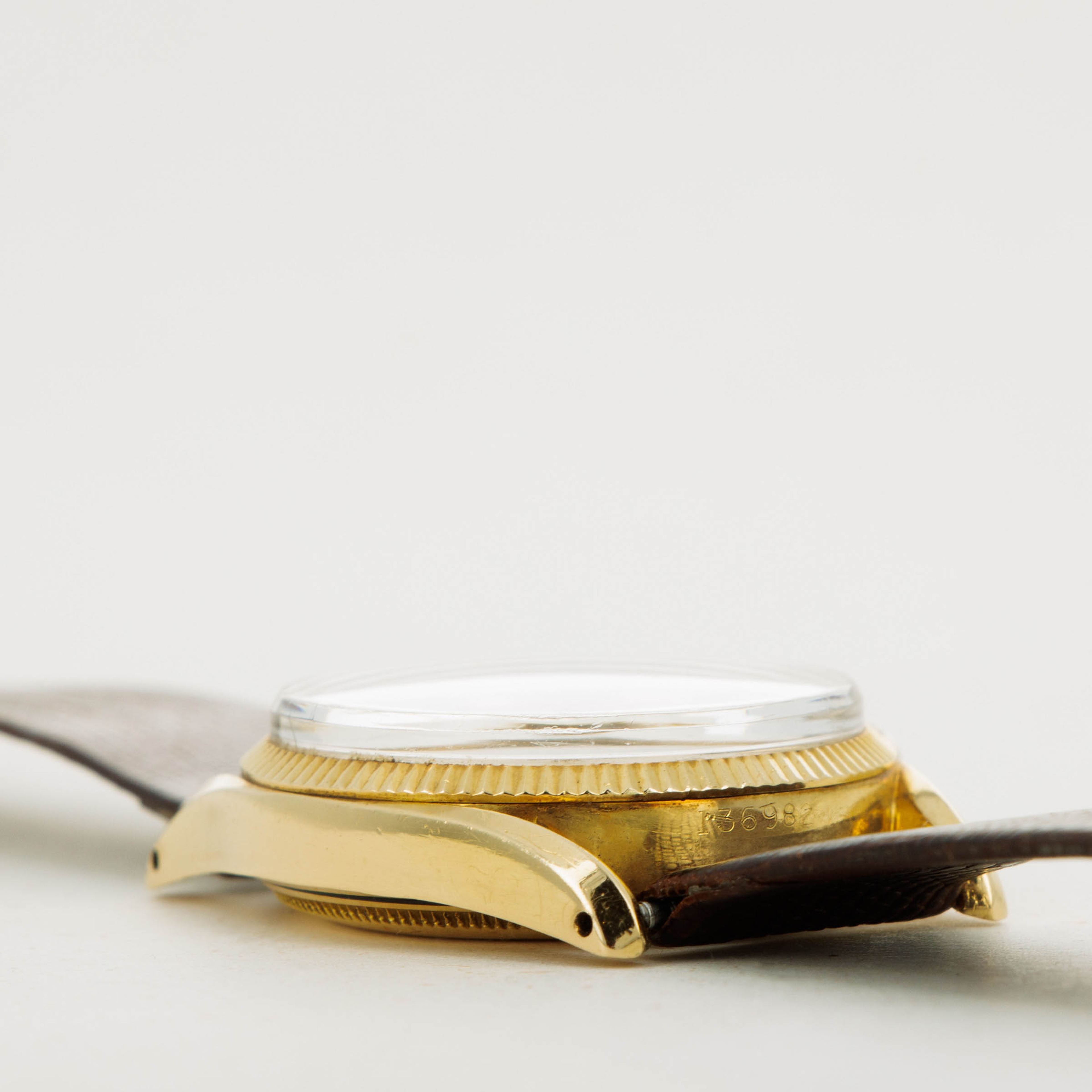 Watch is in excellent overall condition. Case has wear on surfaces consistent with its age, but the bezel retains sharp and well defined teeth. The caseback features external gold hallmarks, a signature of watches distributed by SYL in South America. Dial is near-mint and in beautiful condition. There is no damage or degredation that is visible, and it is remarkably preserved. Buckle is an original plated Rolex buckle.