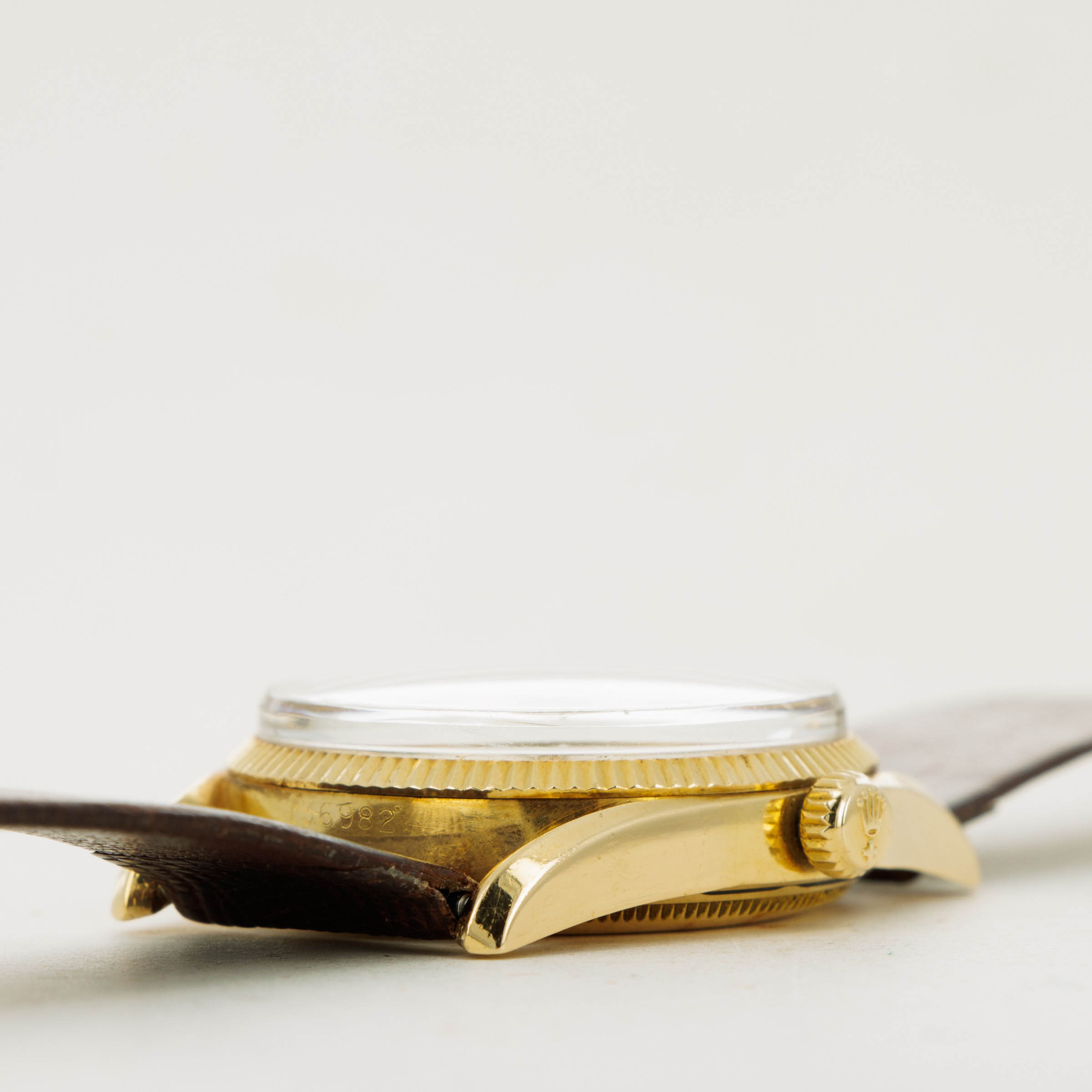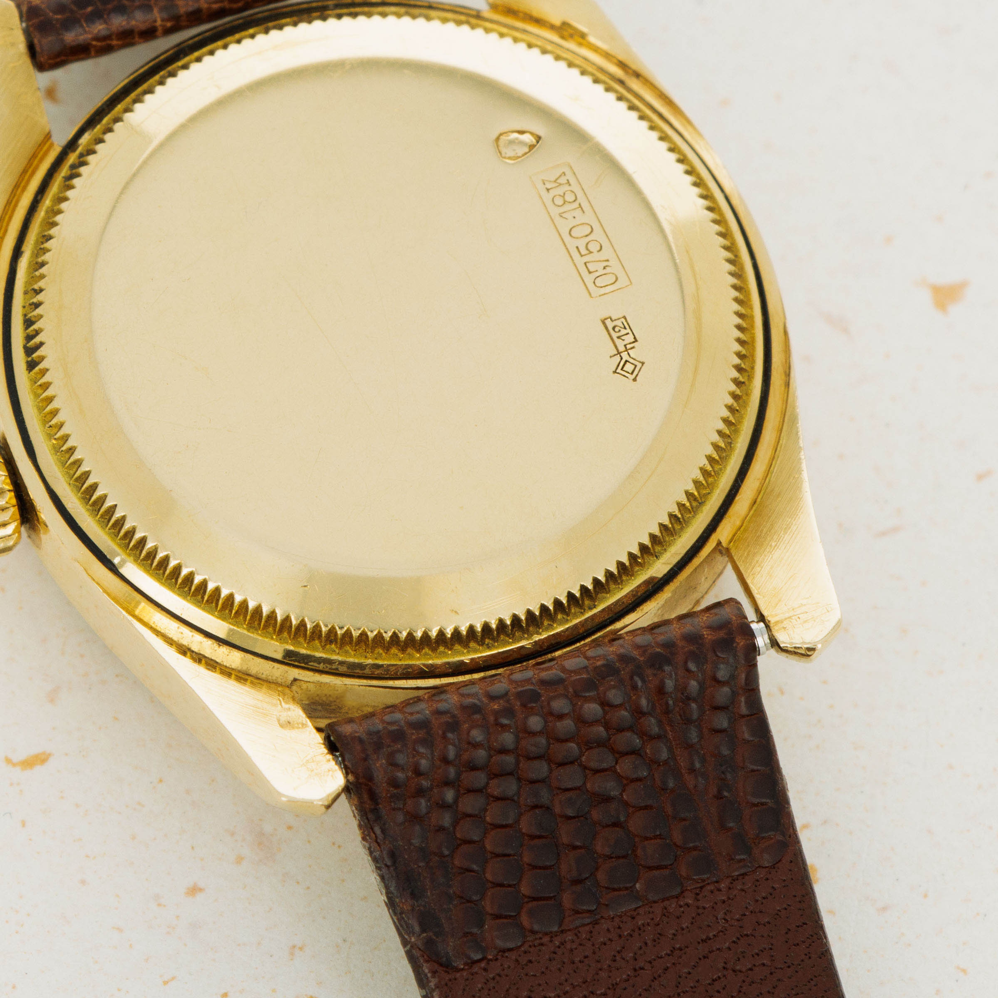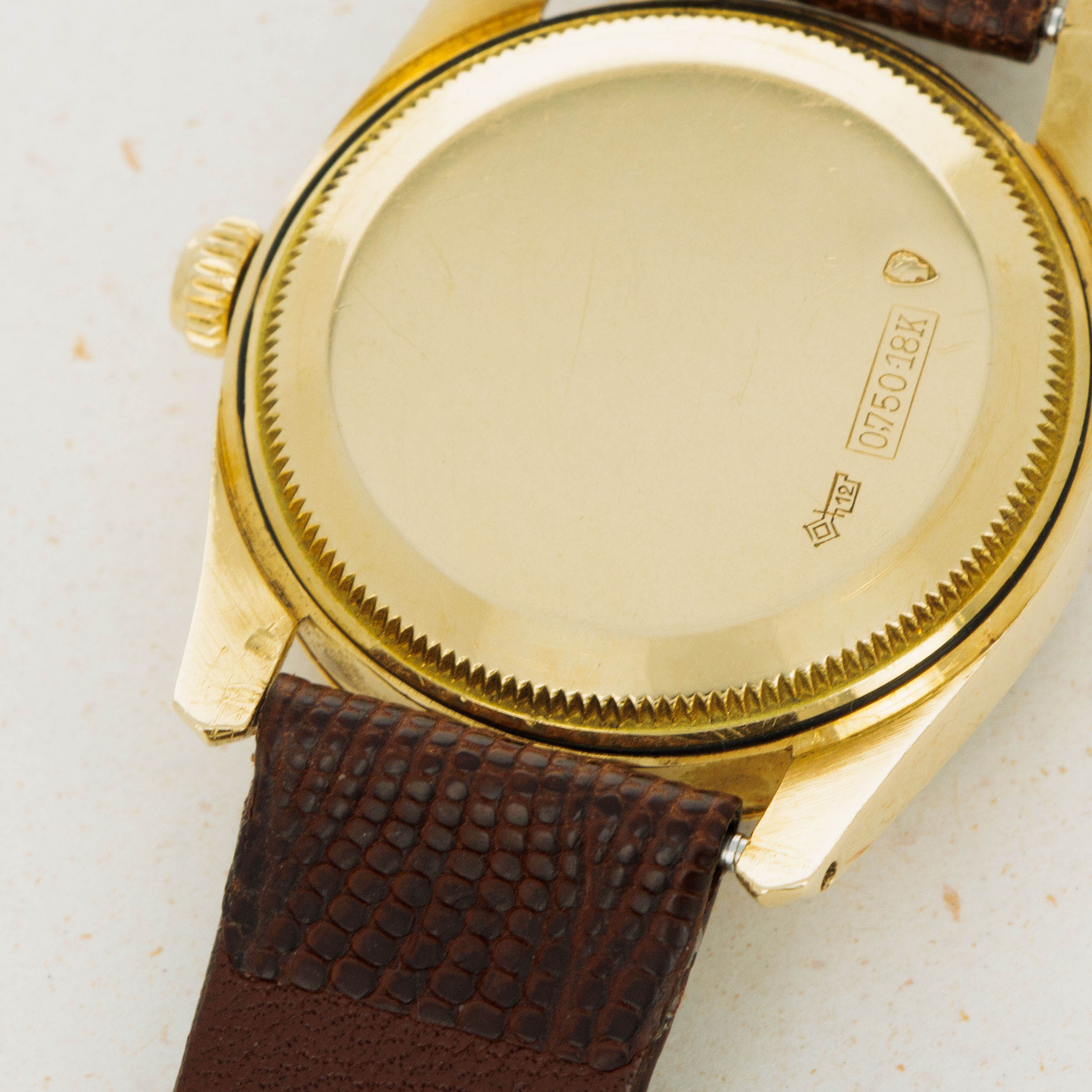 Watch is in excellent overall condition. Case has wear on surfaces consistent with its age, but the bezel retains sharp and well defined teeth. The caseback features external gold hallmarks, a signature of watches distributed by SYL in South America. Dial is near-mint and in beautiful condition. There is no damage or degredation that is visible, and it is remarkably preserved. Buckle is an original plated Rolex buckle.