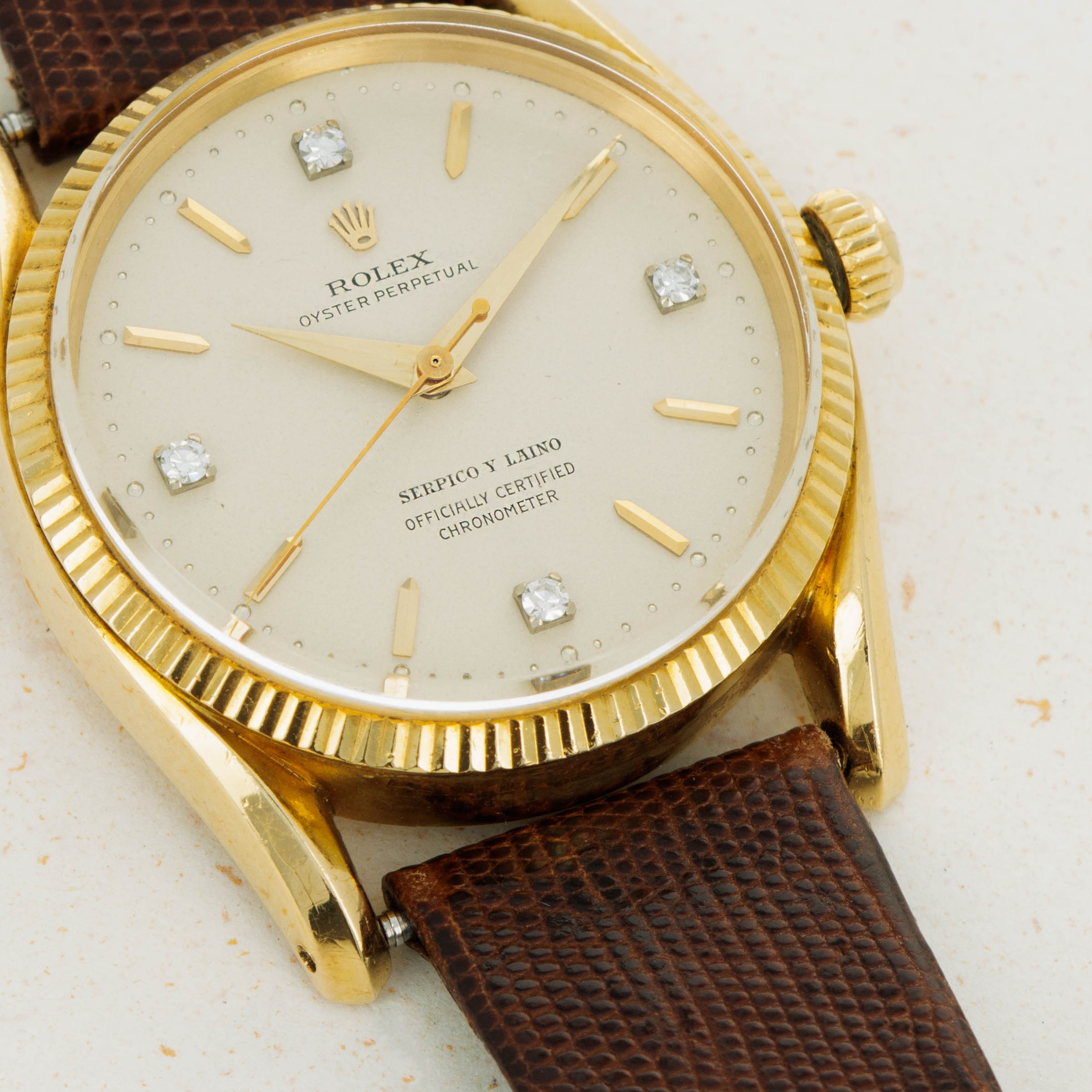 Rolex Oyster Perpetual 6593 Bombe Lugs Diamond Dial Retailed by Serpico Y Laino