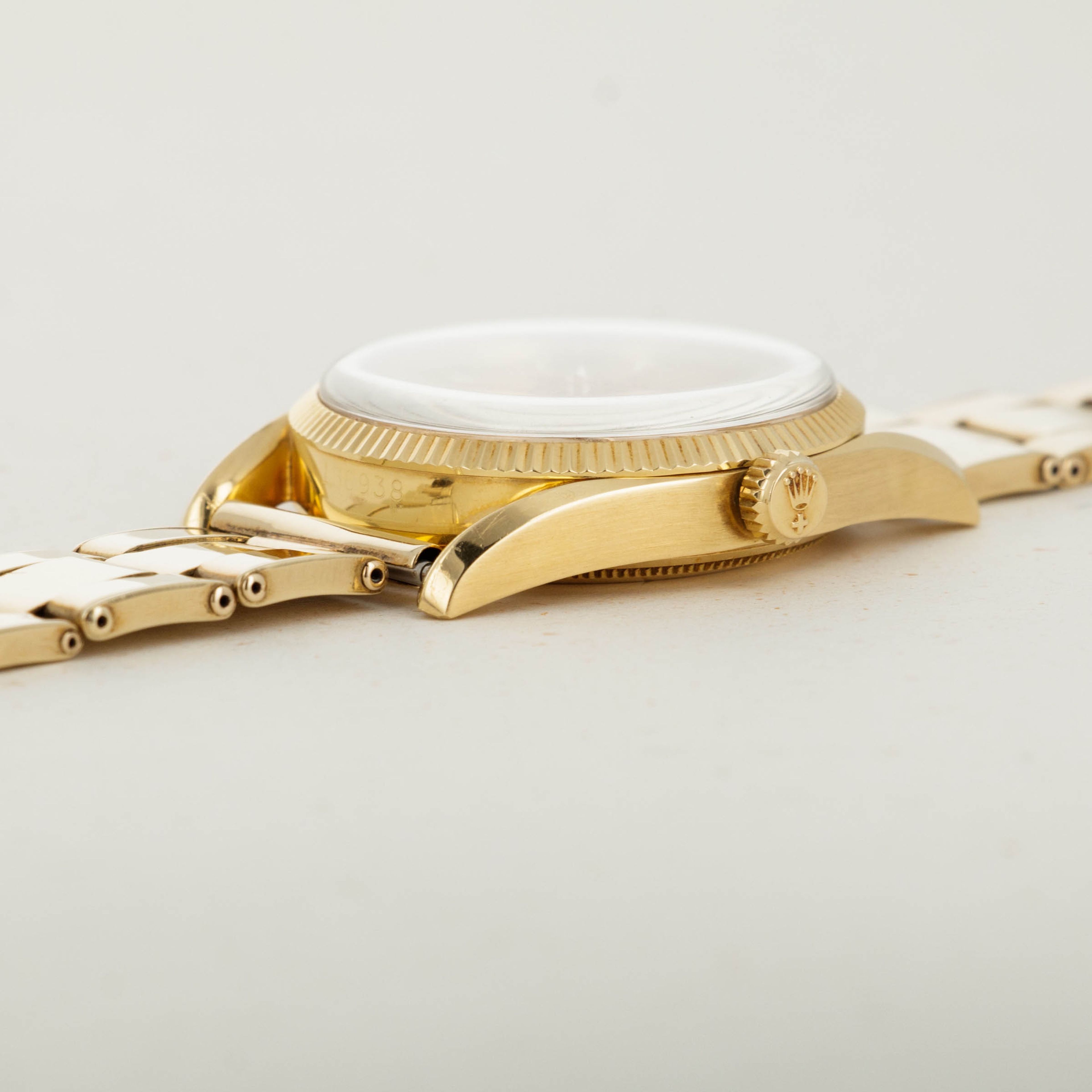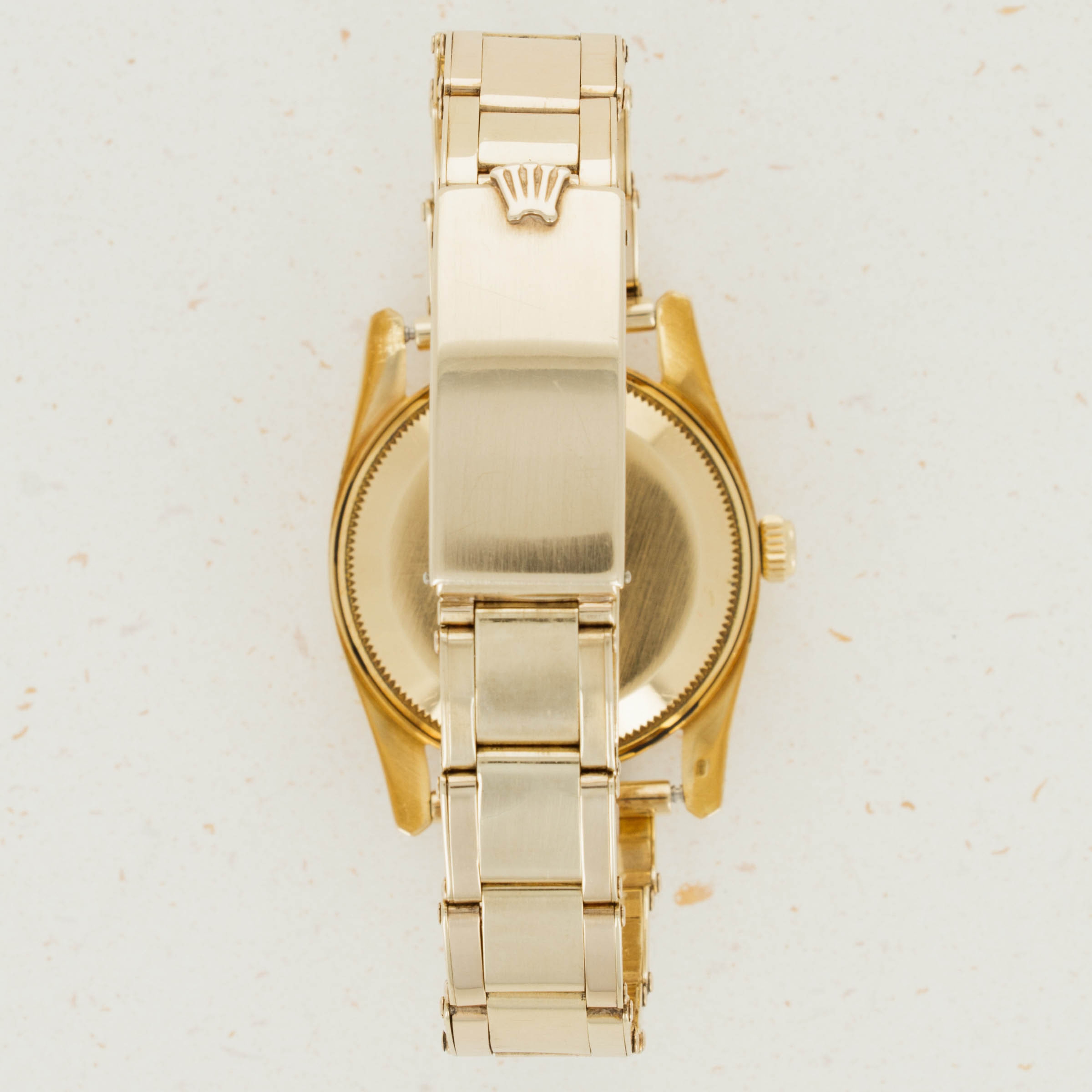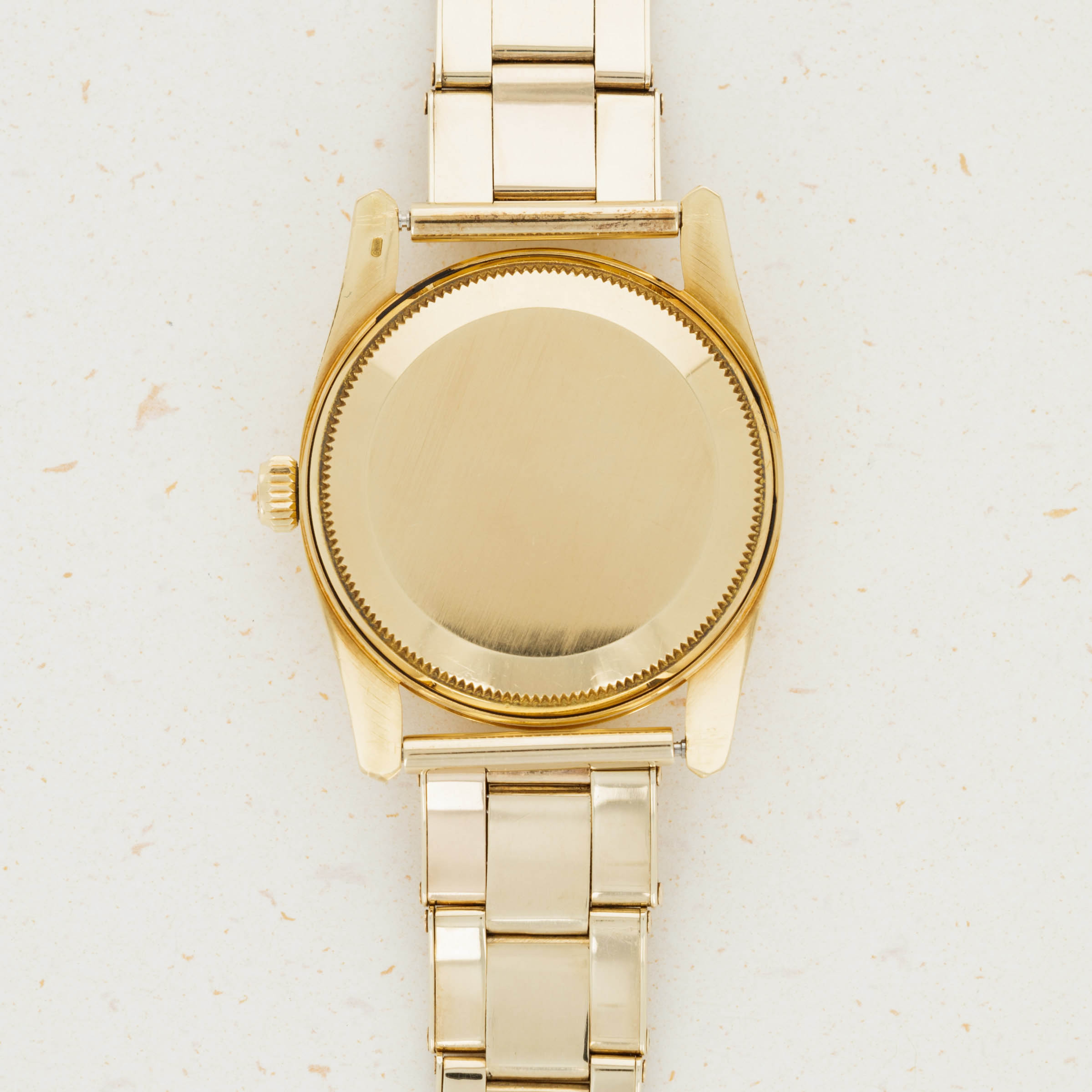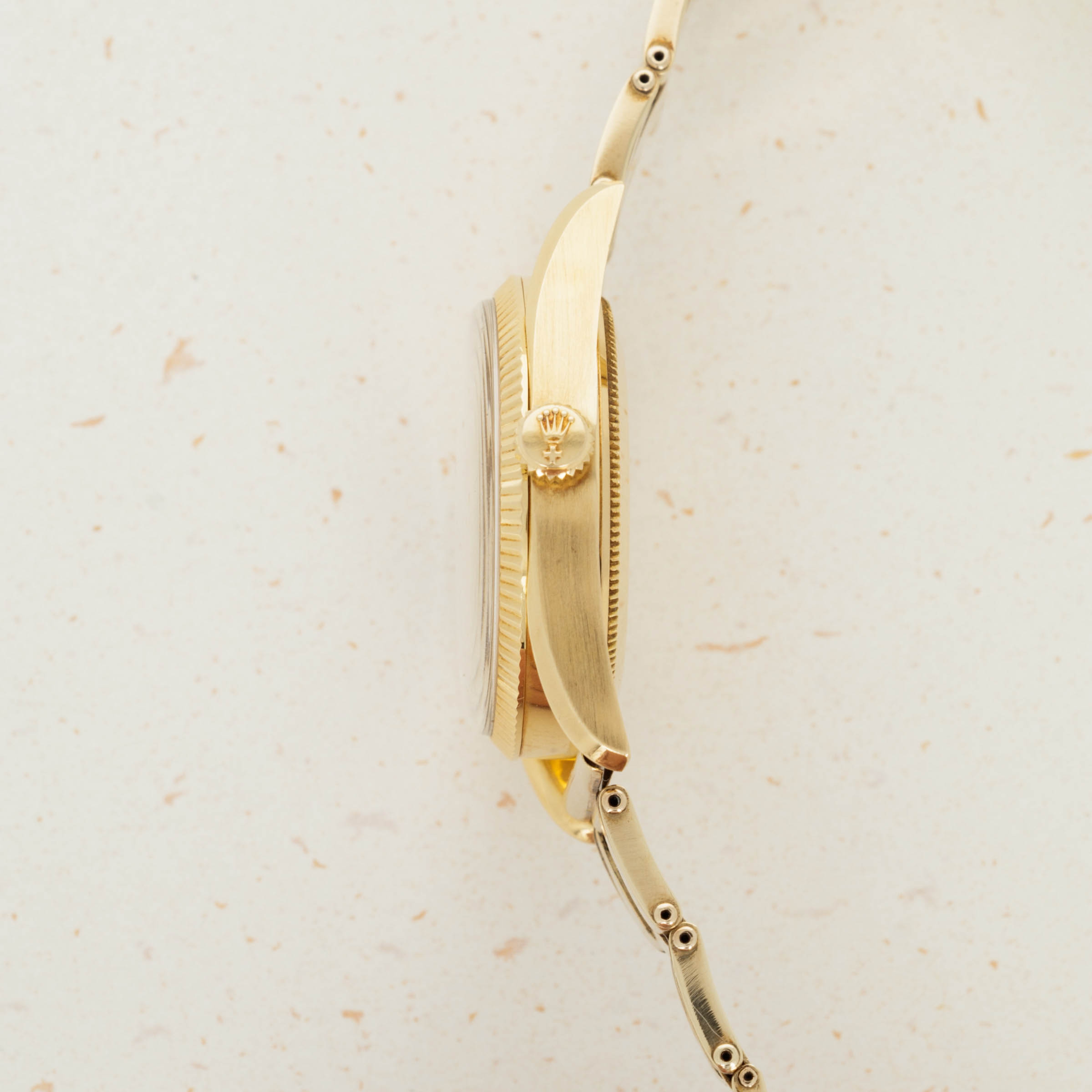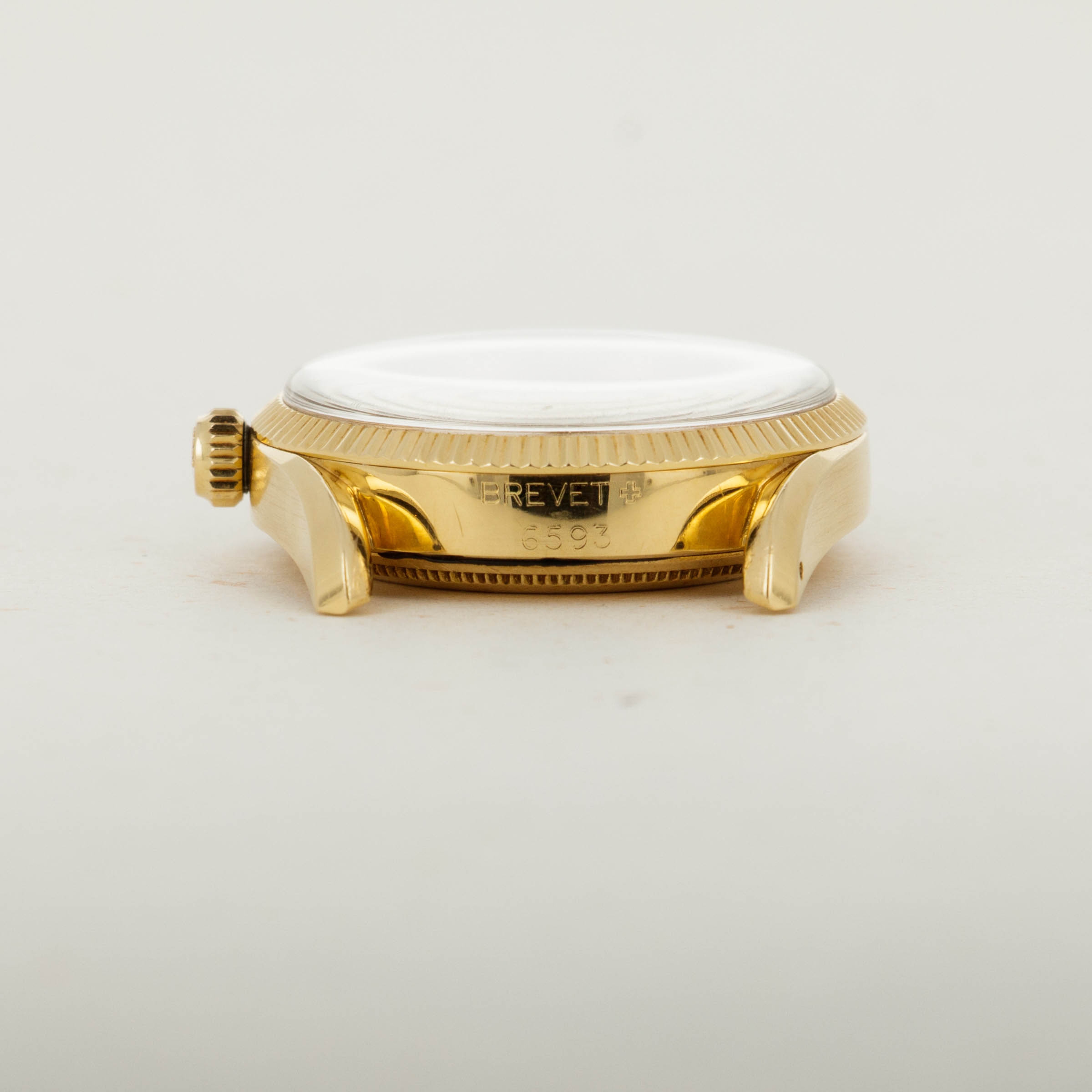 Featuring a stunning champagne dial with a subtle concentric brushed finish, this remarkable dial retains its arrow-shaped hour markers and elegant dauphine hands; both with their beautifully aged lume.