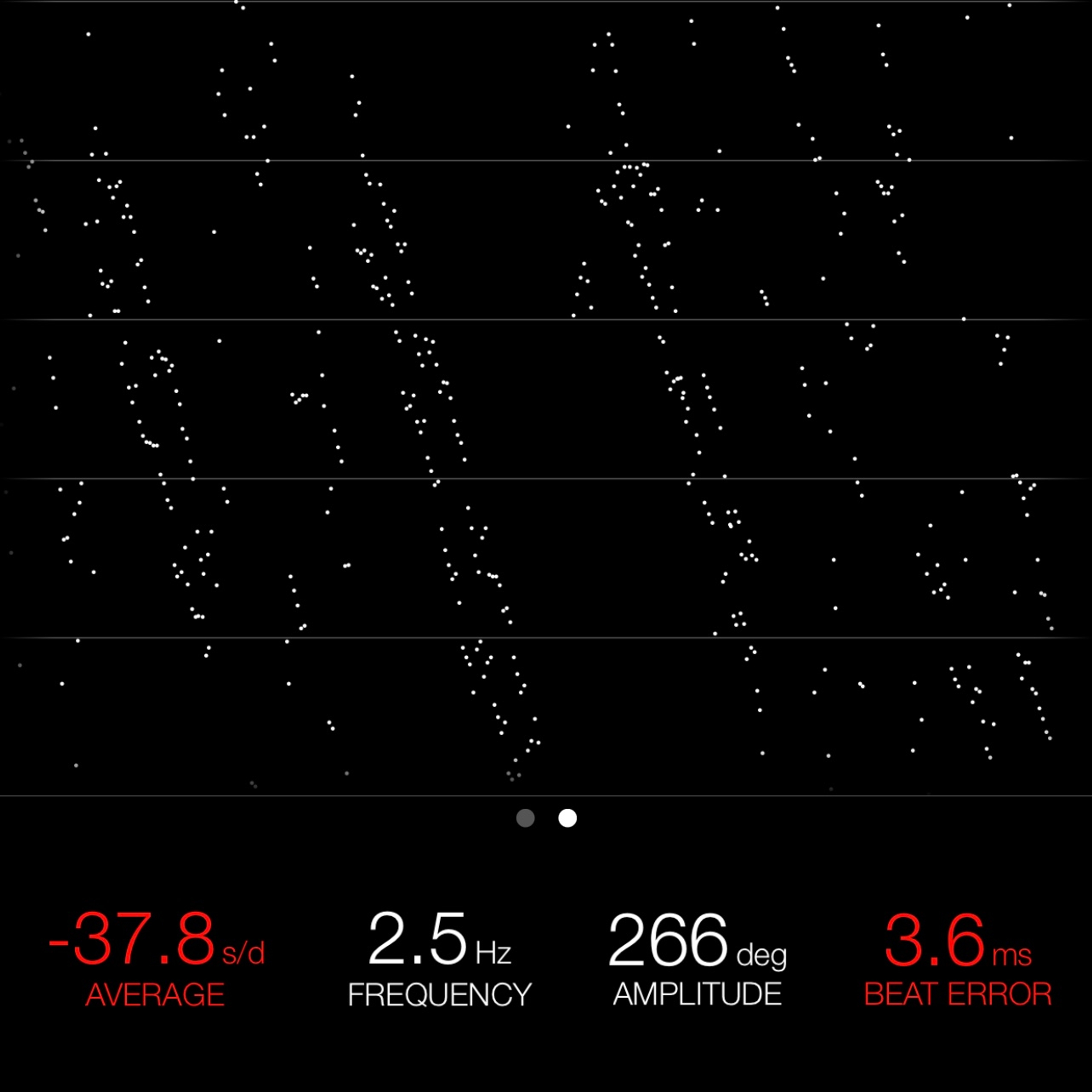 This reading was taken (crown down) with a ONEOF Accuracy Boutique Edition timing machine at time of cataloging. It is provided as a courtesy only, and shall not be construed as a warranty or guarantee of any kind. Please refer to our terms and conditions of sale for more information.