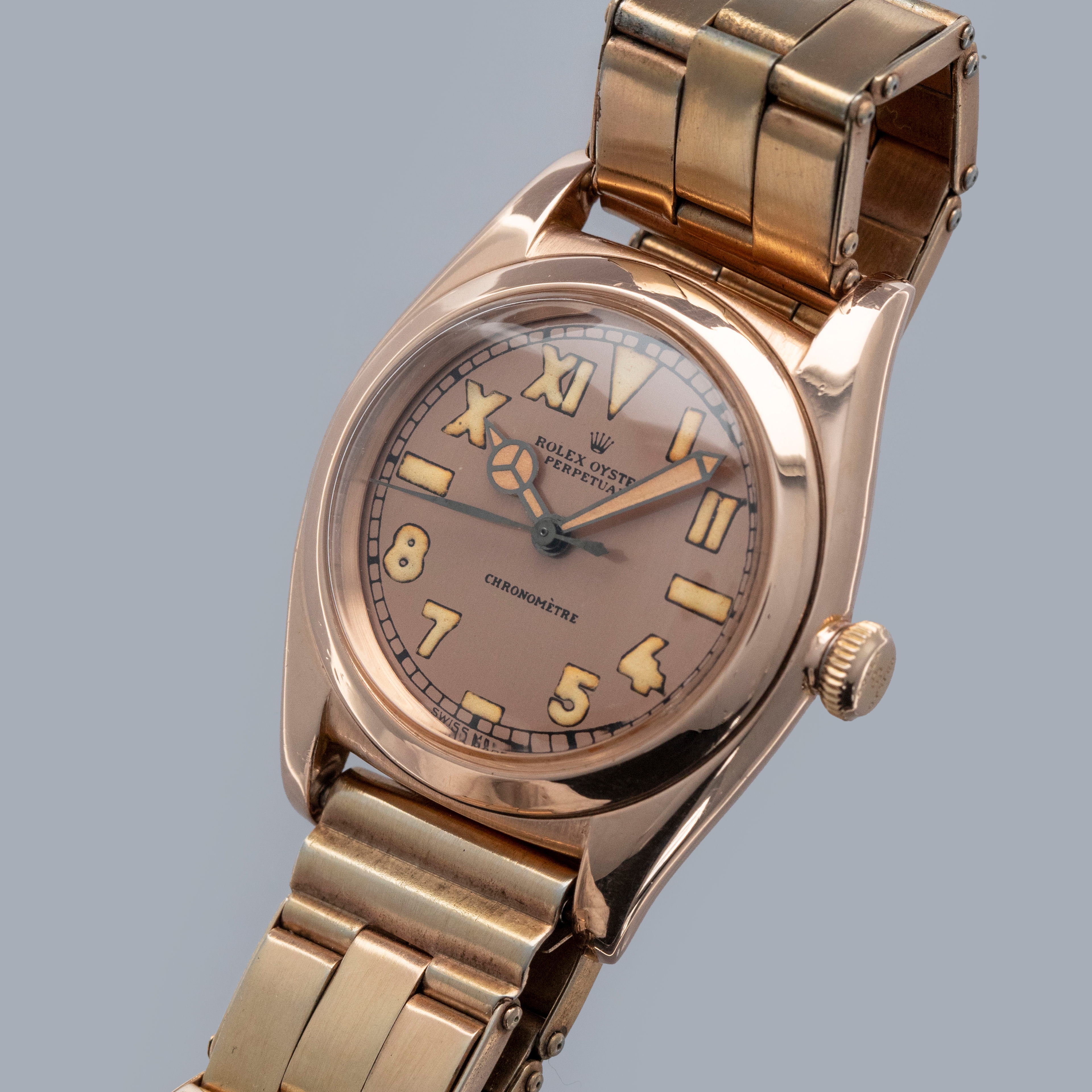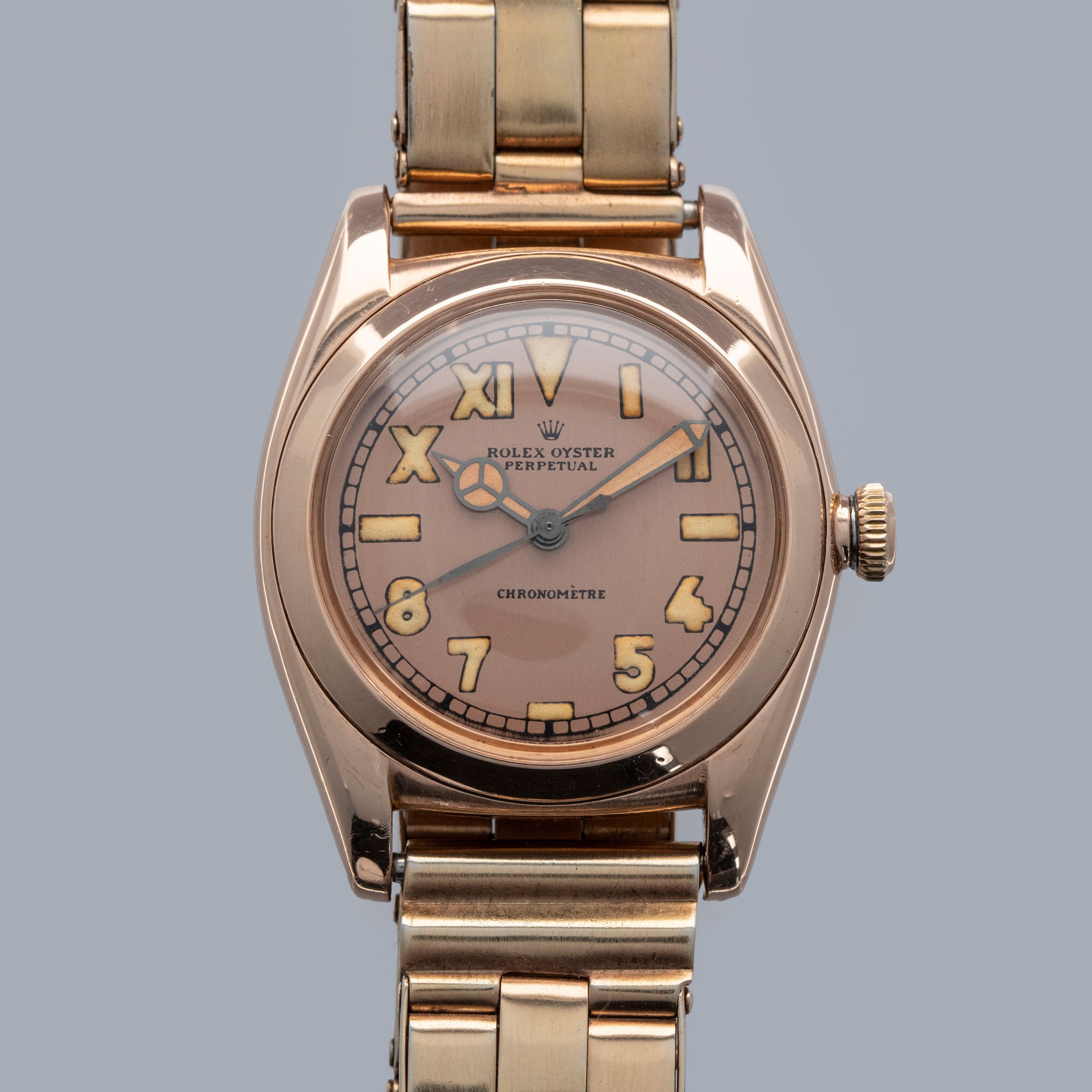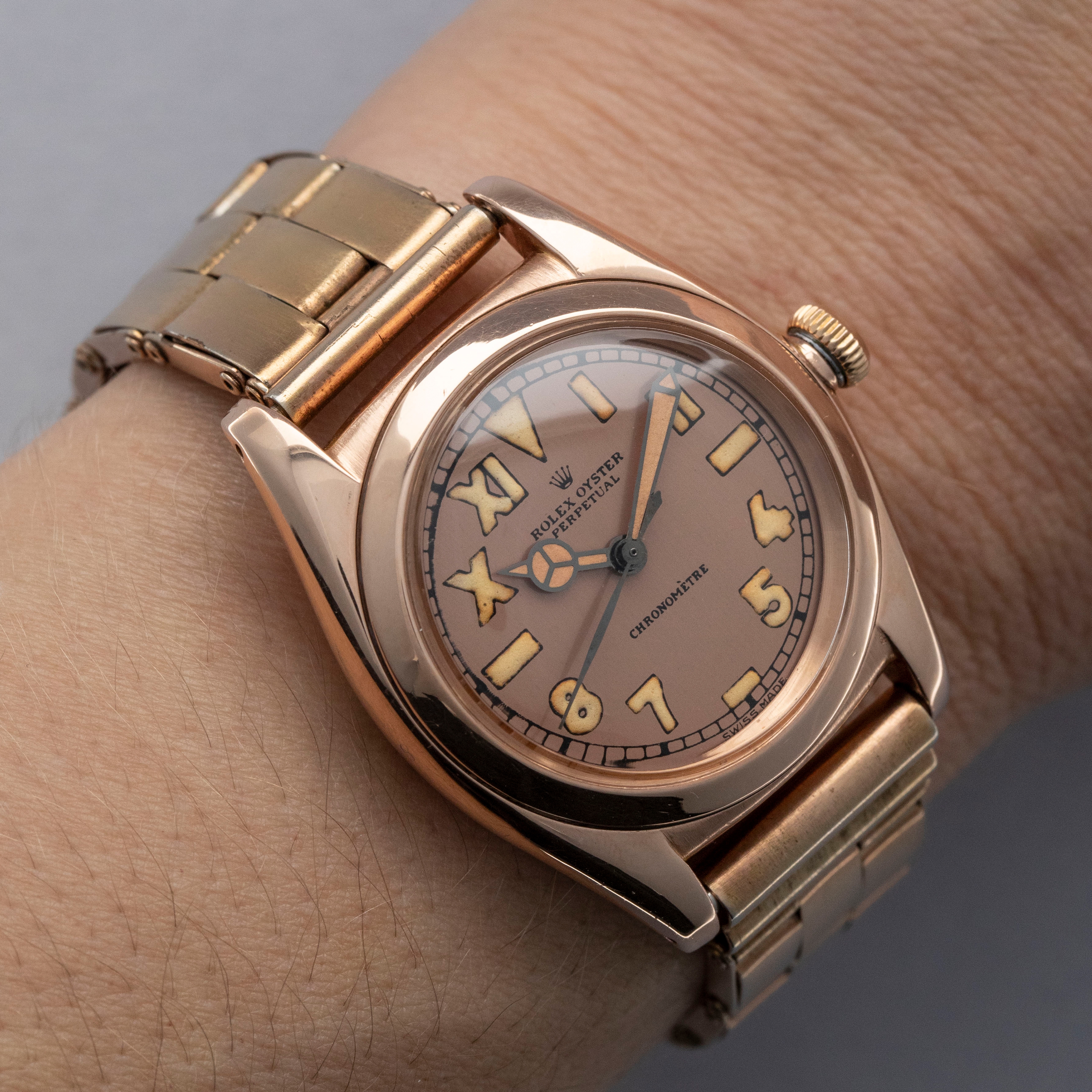 Introduced in 1933 and produced long into the early 1950s, the Rolex Bubbleback saw countless variations of itself produced with various metals used and paired with one another, an exhaustive array of dial configurations and bracelets and straps utilized over its storied past. Featuring some distinctive hooded case designs and constructed from everything such as stainless steel, steel and gold, rose gold, and various weights of yellow gold, the Bubbleback was even powered by both, manual wind and automatic movements in the 1930’s such was its eclectic design history. As a result, the Rolex Bubbleback watches represent a very different Rolex than the sophisticated and clean brand that they have come to be in the last decade or so. Featuring a mix of designs for their luminous indexes and hands over the years, the Bubbleback models have come to signify a select period in Rolex’s history that collectors enjoy paying homage to in their collections. With their eponymous bubbled caseback, the Bubbleback still forms the linchpin of anyone’s collection that wants to pay homage to Rolex’s once quirky design language while owning a timepiece that is seldom seen today in the modern horological landscape.