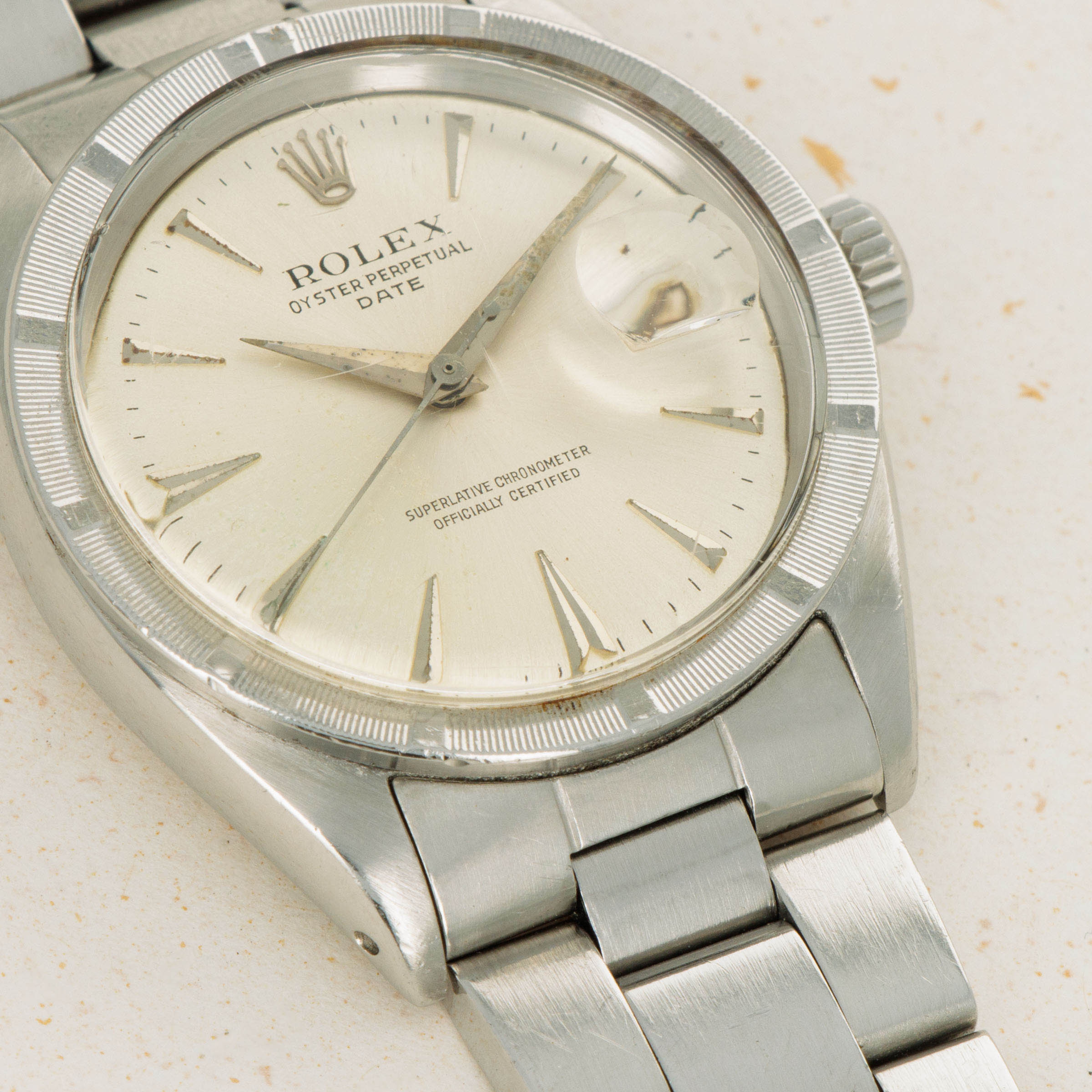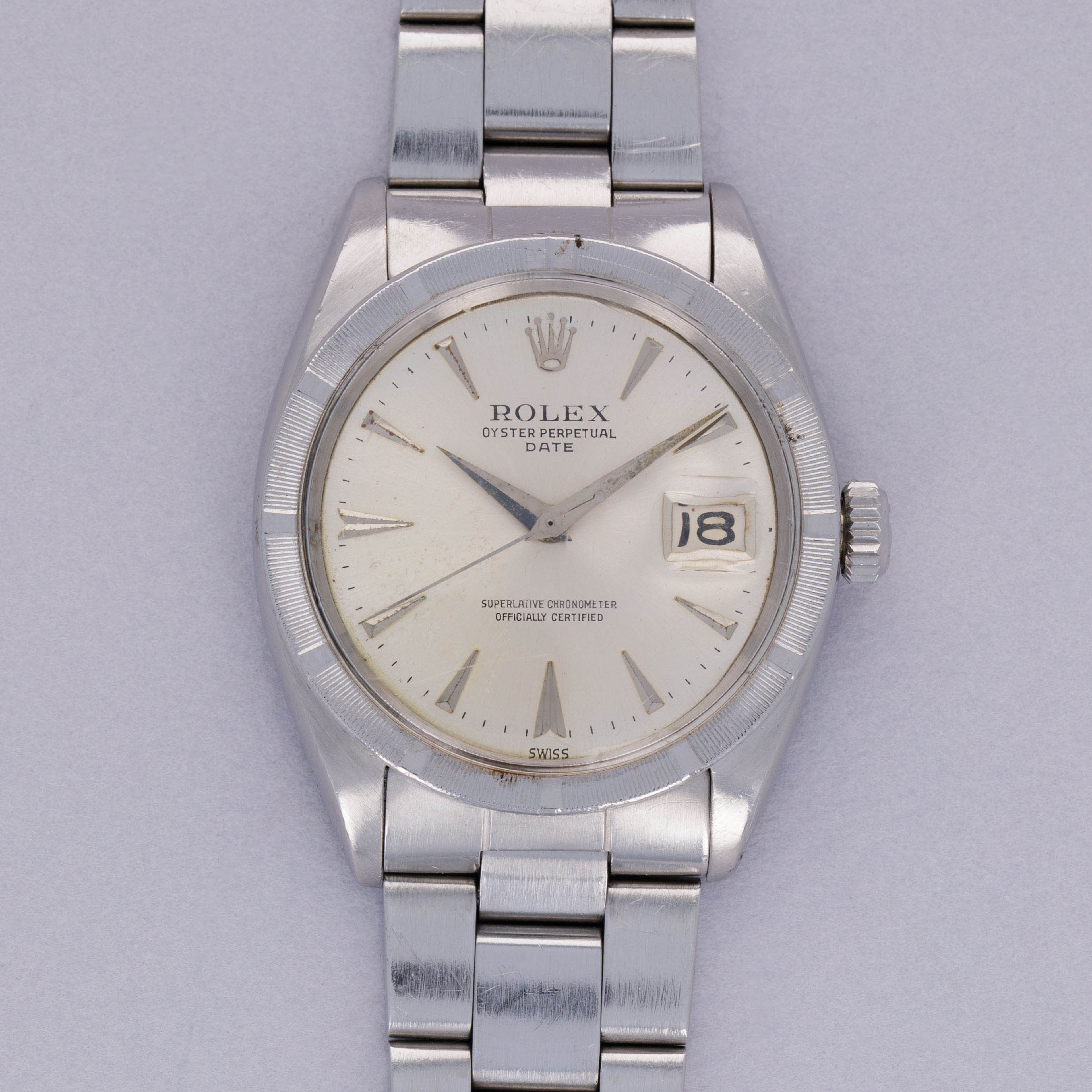 Released in the mid-1950s following the release of the Rolex Datejust, the Rolex Date was a mid-sized version of the Datejust that featured all of its iconic design traits just within a smaller case. Swapping the Datejust’s relatively larger 36mm case for the Air-King’s more quaint 34mm case, the Date was a fashionable watch that fit in with the tastes and aesthetic that was popular during the 50s and 60s. Continuing to offer the Date long into the 2010s, Rolex provided the Date with a wide selection of dial variants, bezel options and case materials. Operating as a watch that could do it all, the Date was most typically made of stainless steel, much like the ref. 1501 that we have here with its decorative engine-turned bezel and Oyster bracelet. A stunning watch that paints a vivid picture of Rolex’s evolution through the ages, the Date collection features a host of interesting timepieces, and the example we have here is certainly a member of that cohort with its stunning silver dial that completes this example's monochromatic aesthetic.
