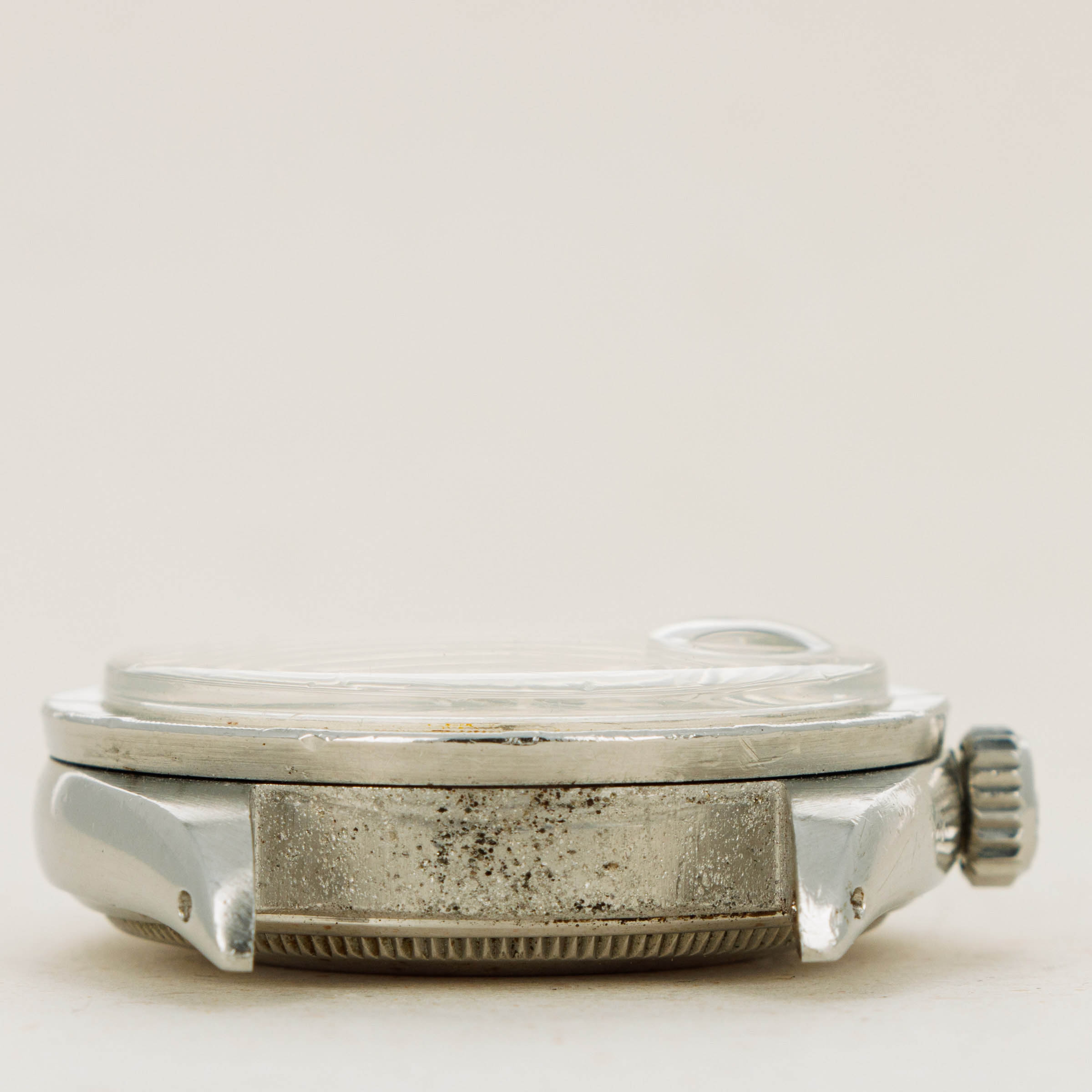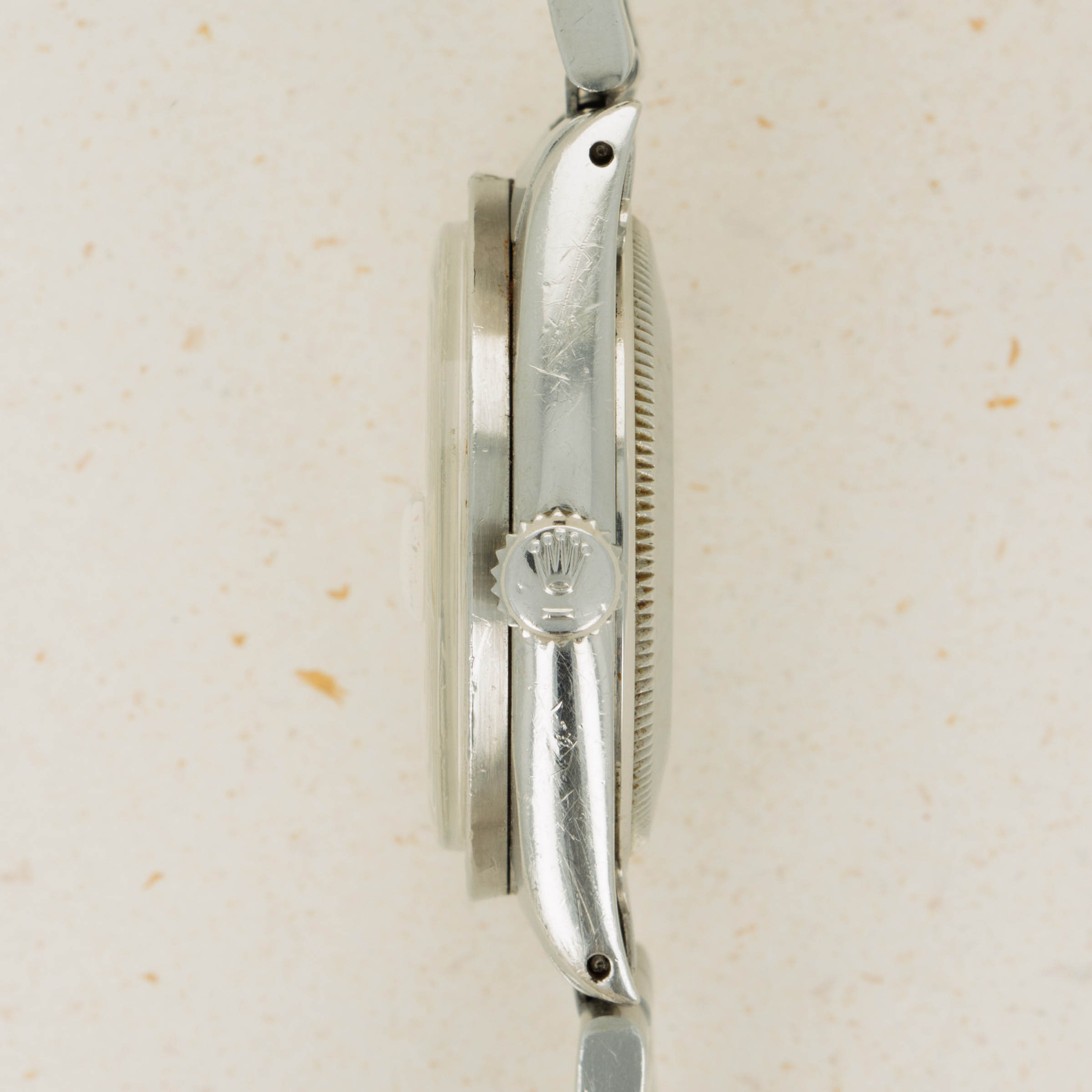 Watch is in very good overall condition. The case exhibits wear, with some softness on the lugs, as well as some scratches and marks visible along the engine turned bezel. Original "SWISS" only dial in excellent condition. Light wear along edge and some minor surface marks are visible upon close inspection. Have some oxidation as seen in the images. Crystal is scratched. Watch comes on a later solid oyster bracelet with 13 links total. 3 of the links are removable, and it fits an approx 7" wrist.