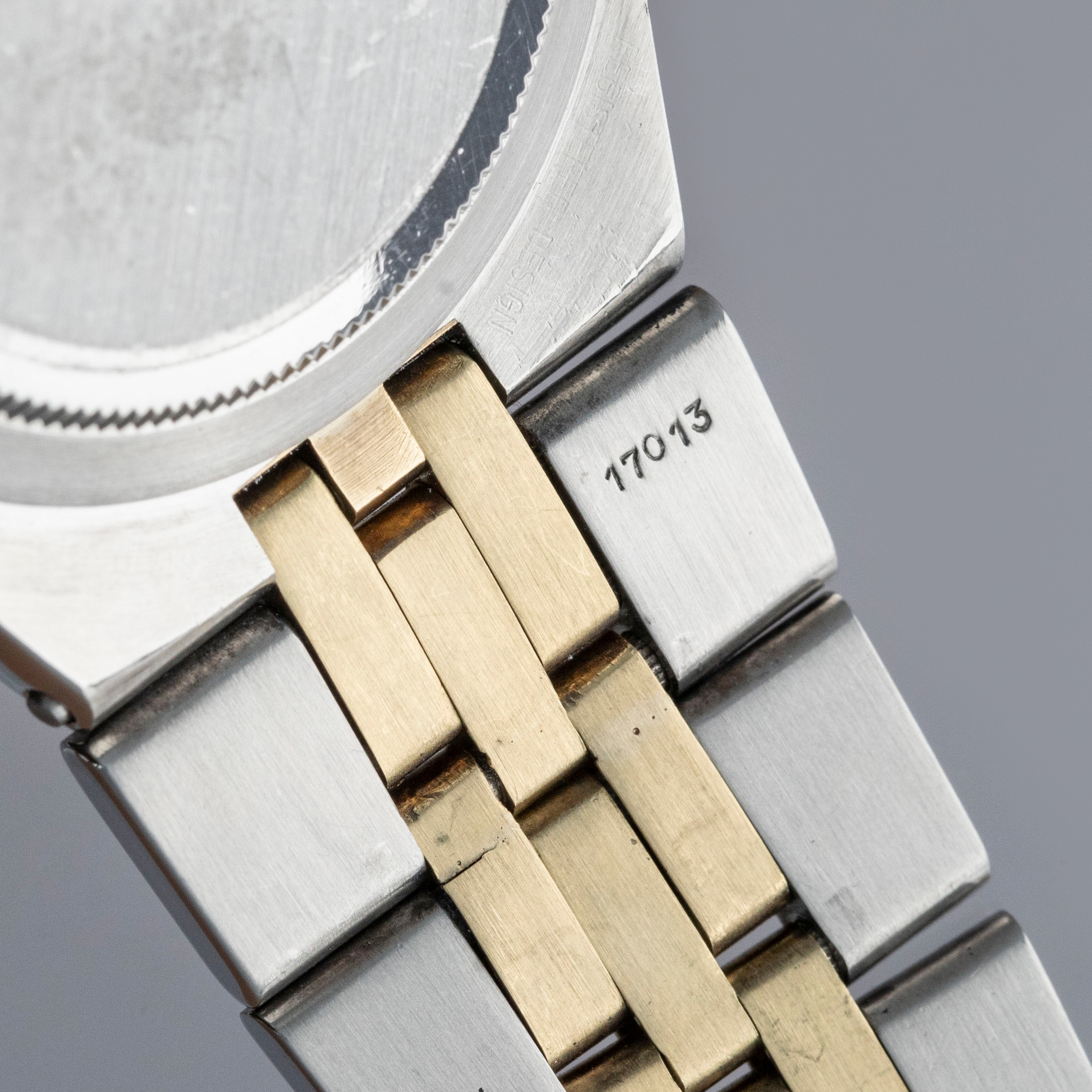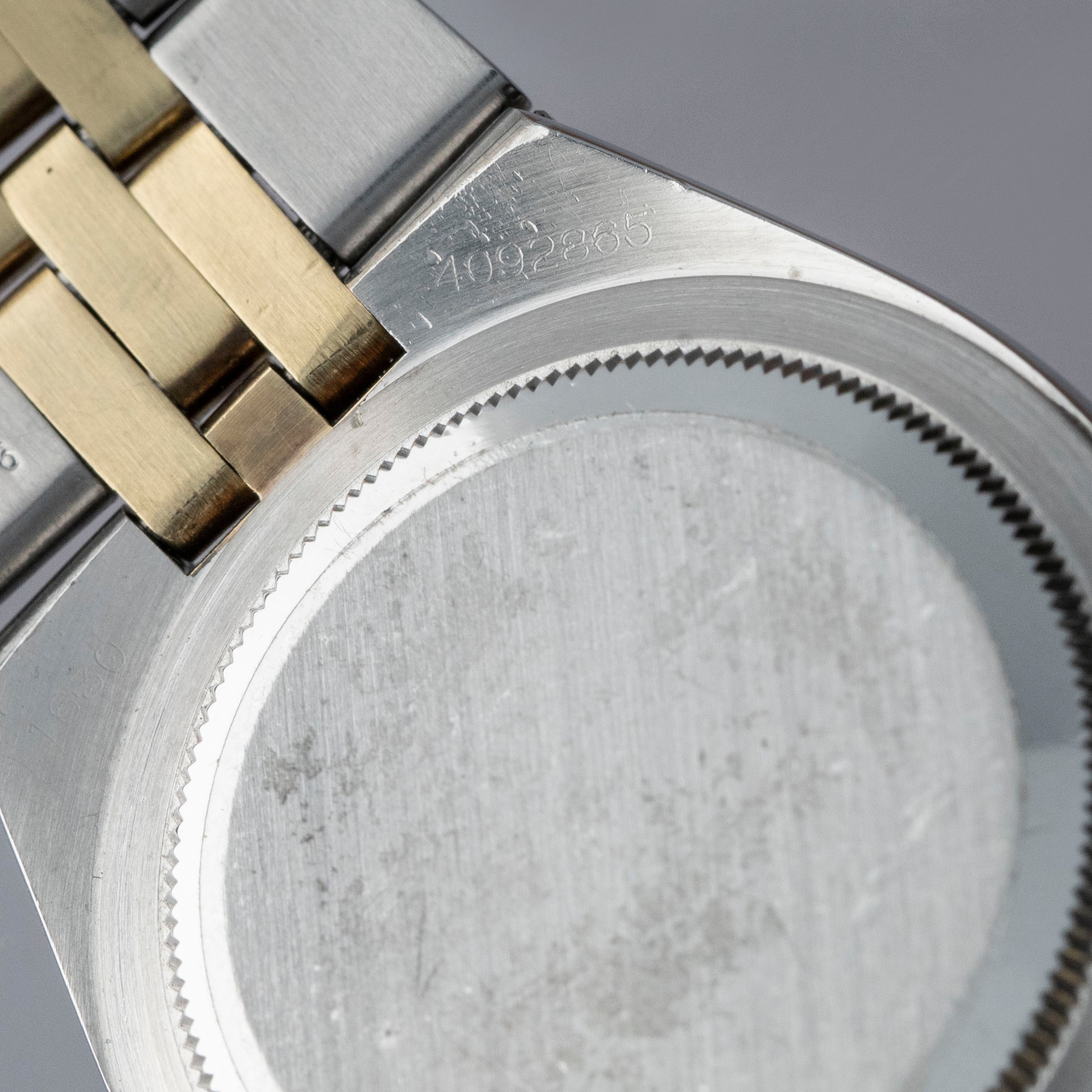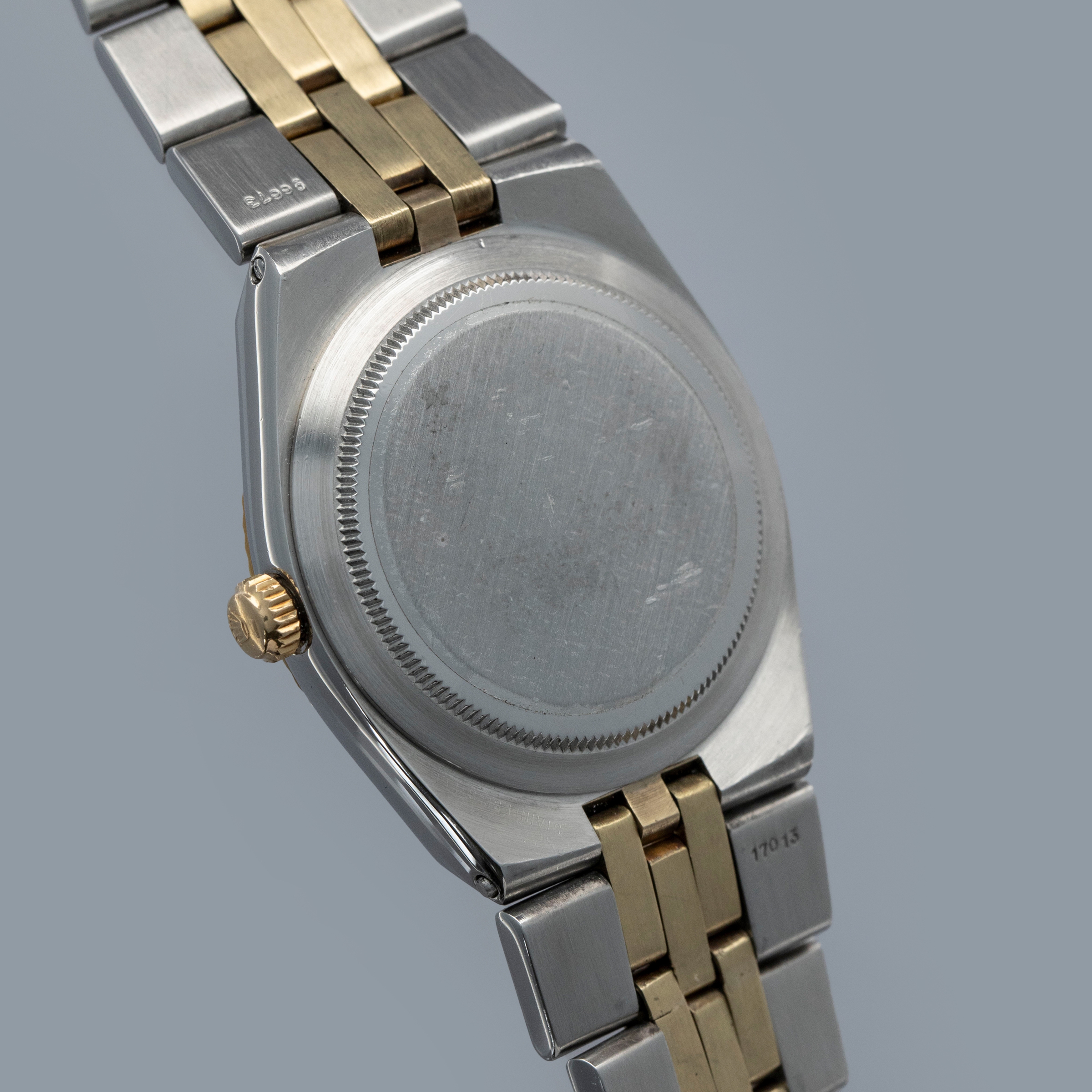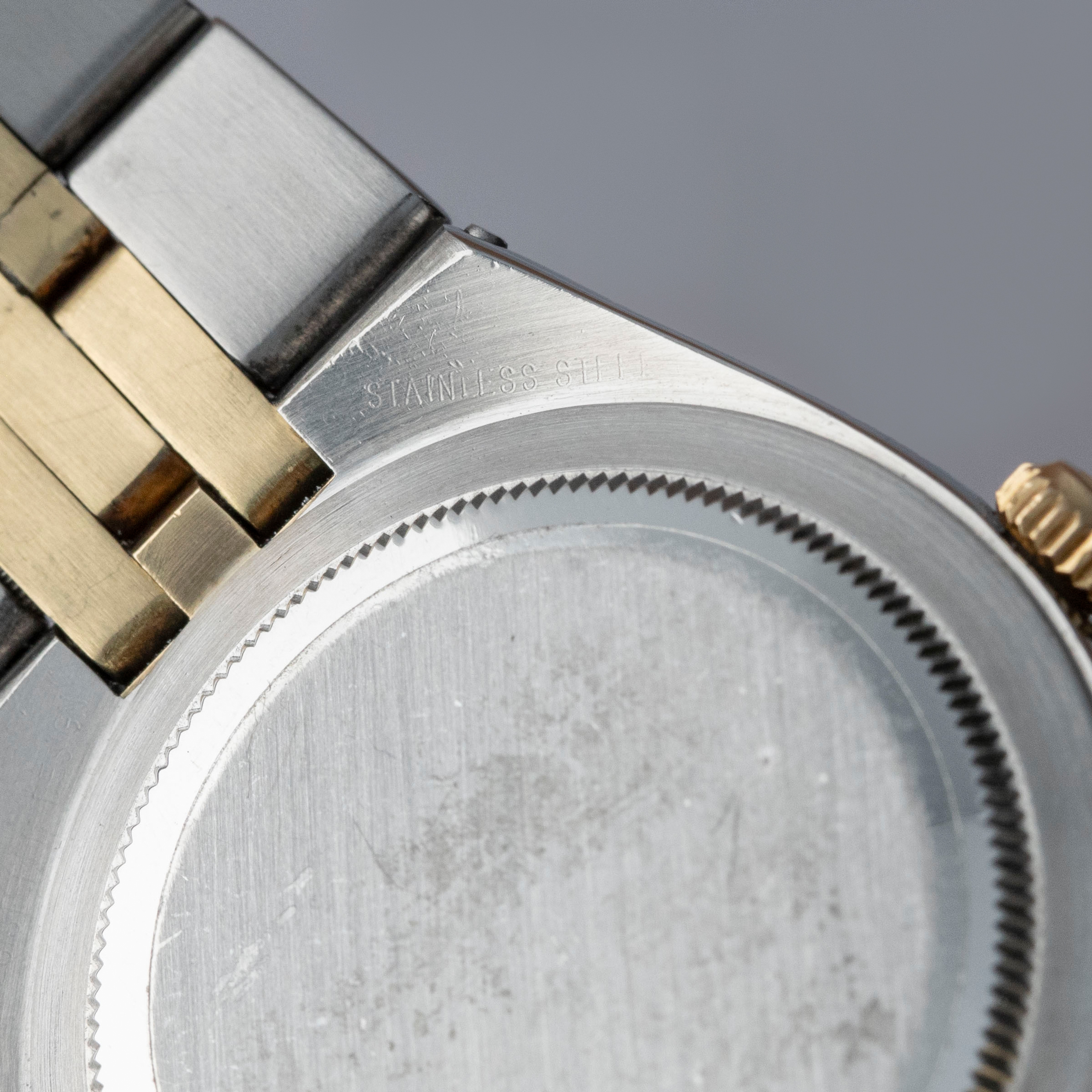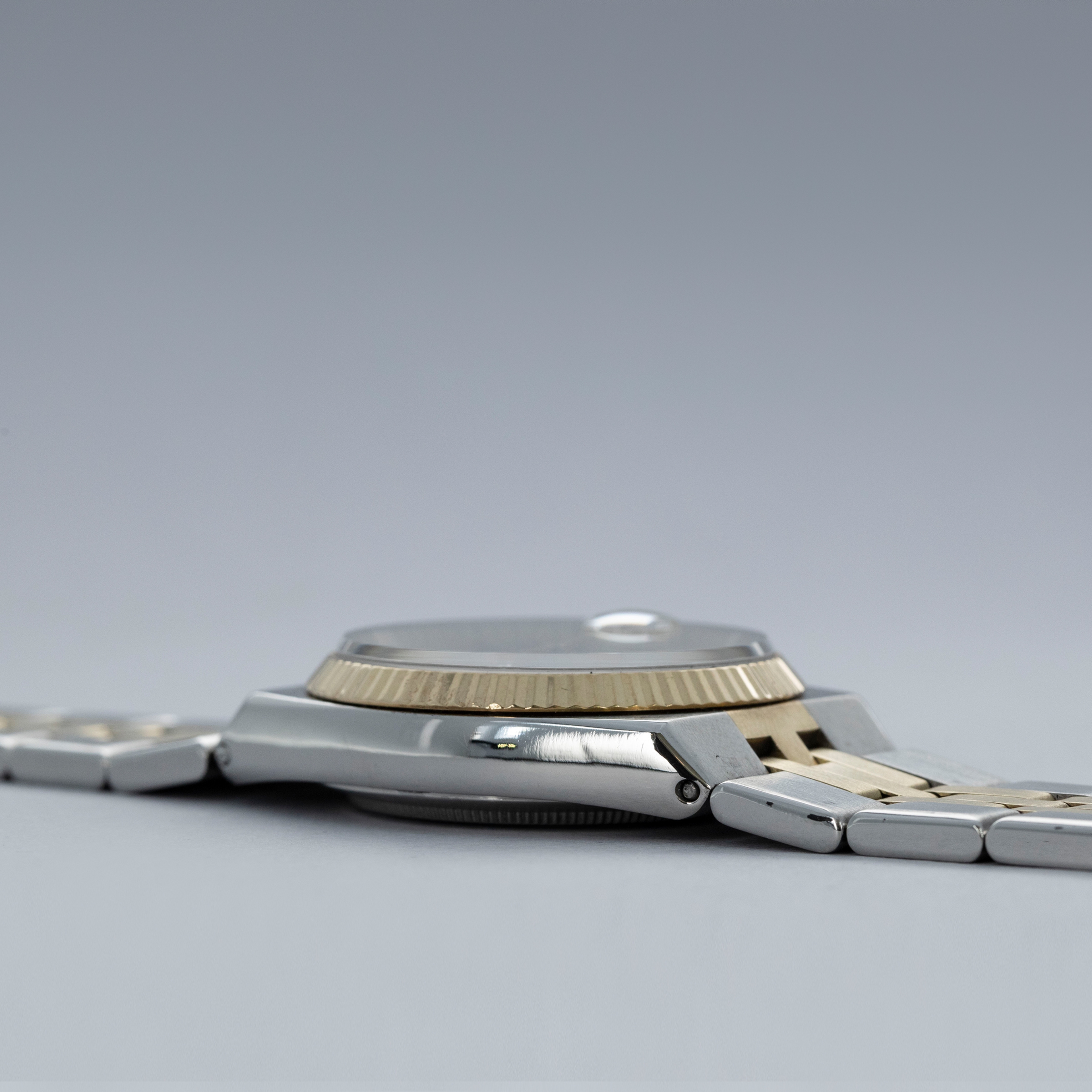 The Rolex Oyster Perpetual Date ref. 1630 stands as a historical timepiece, crafted during Rolex's transition to quartz watches in 1975. Produced alongside its stainless steel sibling, the ref. 1530, the ref. 1630 was discontinued in 1977 just before the the Oysterquartz began production. Boasting the Oysterquartz collection’s angular case, which it was originally designed for, Rolex decided to launch the ref. 1530 and ref. 1630 while they were perfecting their own quartz movement. Besides its angular 36mm two-tone stainless steel and 18kt yellow gold construction, the ref. 1630 houses a sunburst champagne dial with applied index markers and a steep rehaut that includes a minute-scale – a reflection of the construction’s adaptability for the thicker quartz calibre that would soon replace the automatic cal. 1570 movement in the ref. 1530 and ref. 1630. As a part of Rolex's enduring legacy, the Oyster Perpetual Date ref. 1630 symbolizes precision and durability, during a time of genuine uncertainty in the watchmaking industry. A timeless testament to horological excellence, this model remains a distinctive marker in Rolex's unparalleled reputation for precision and durability.