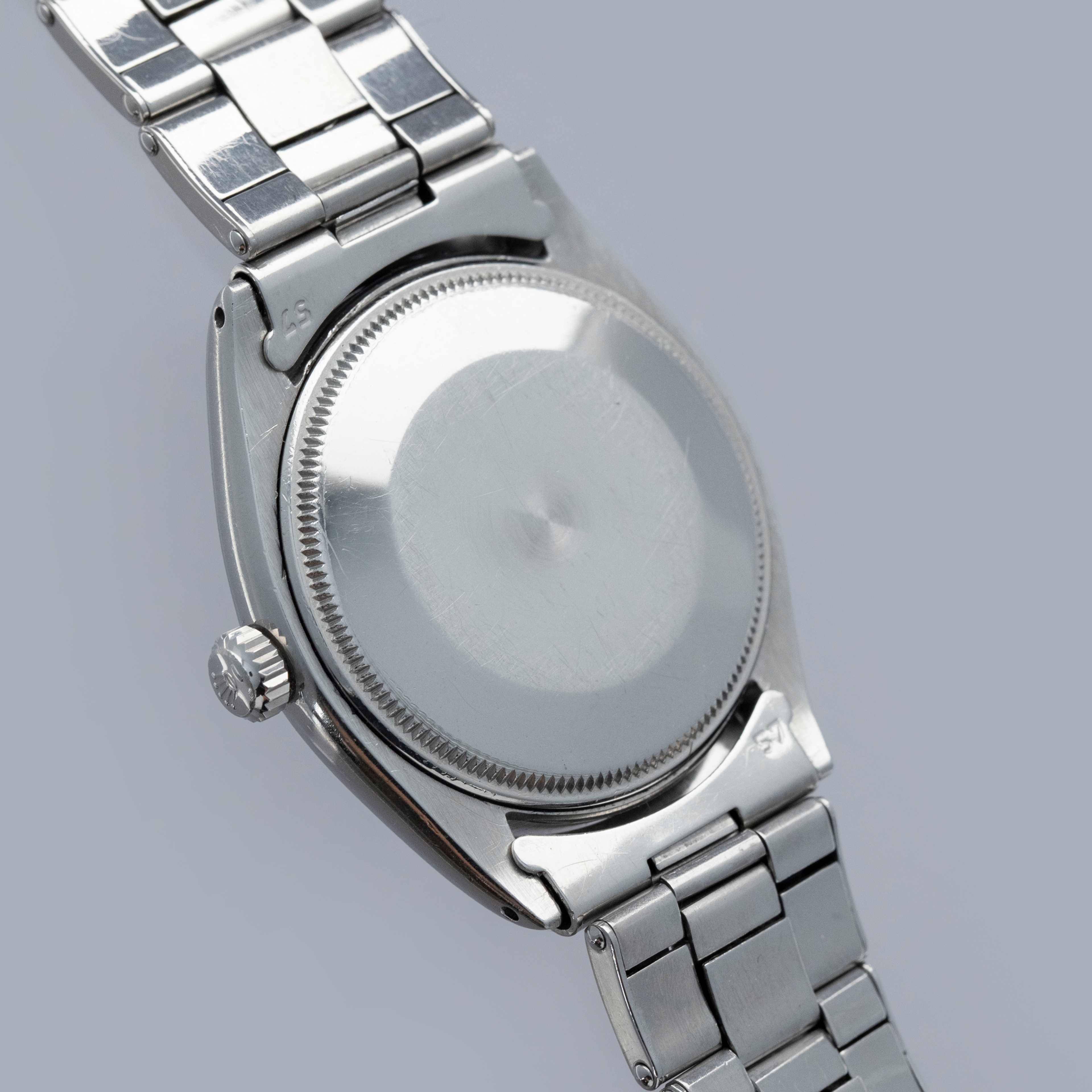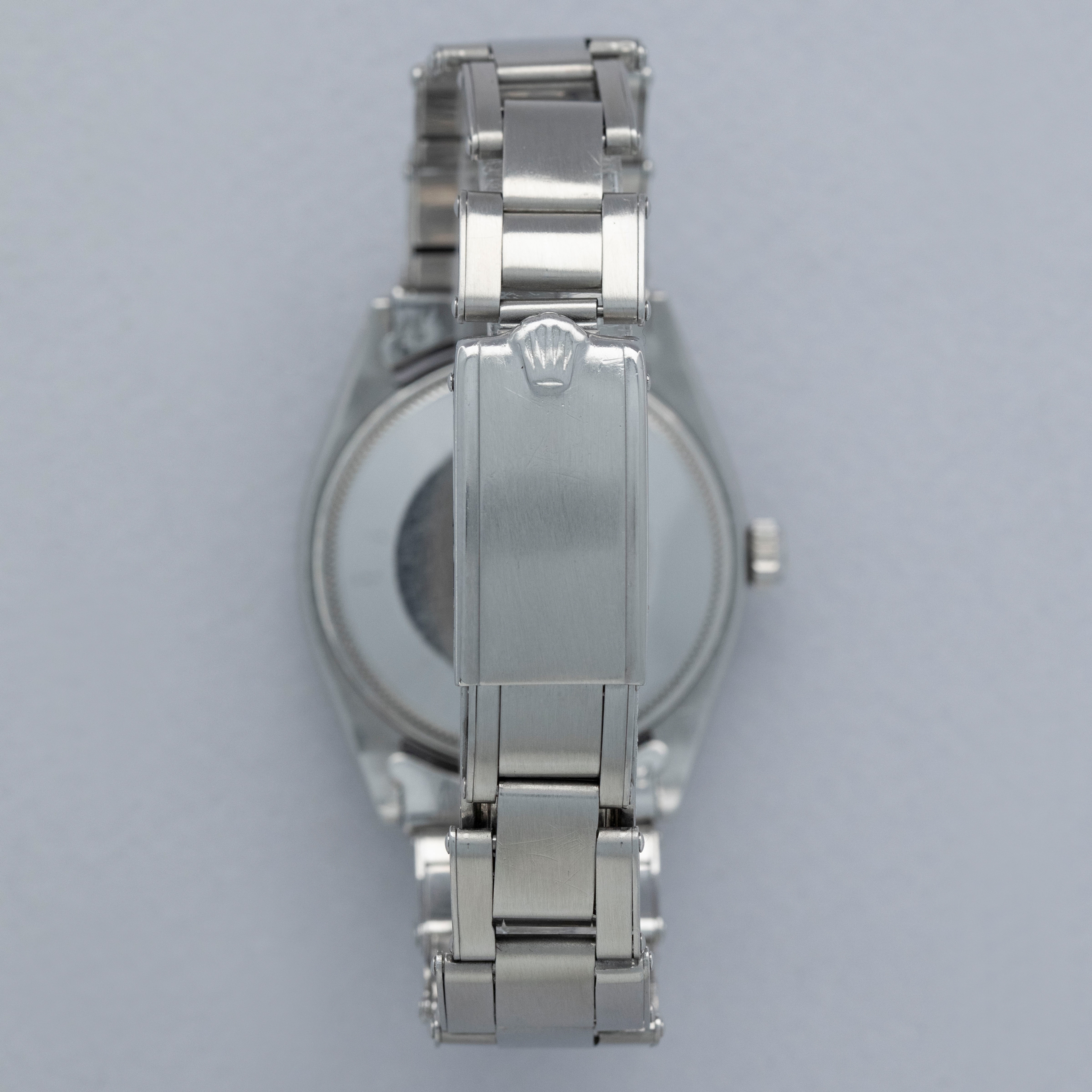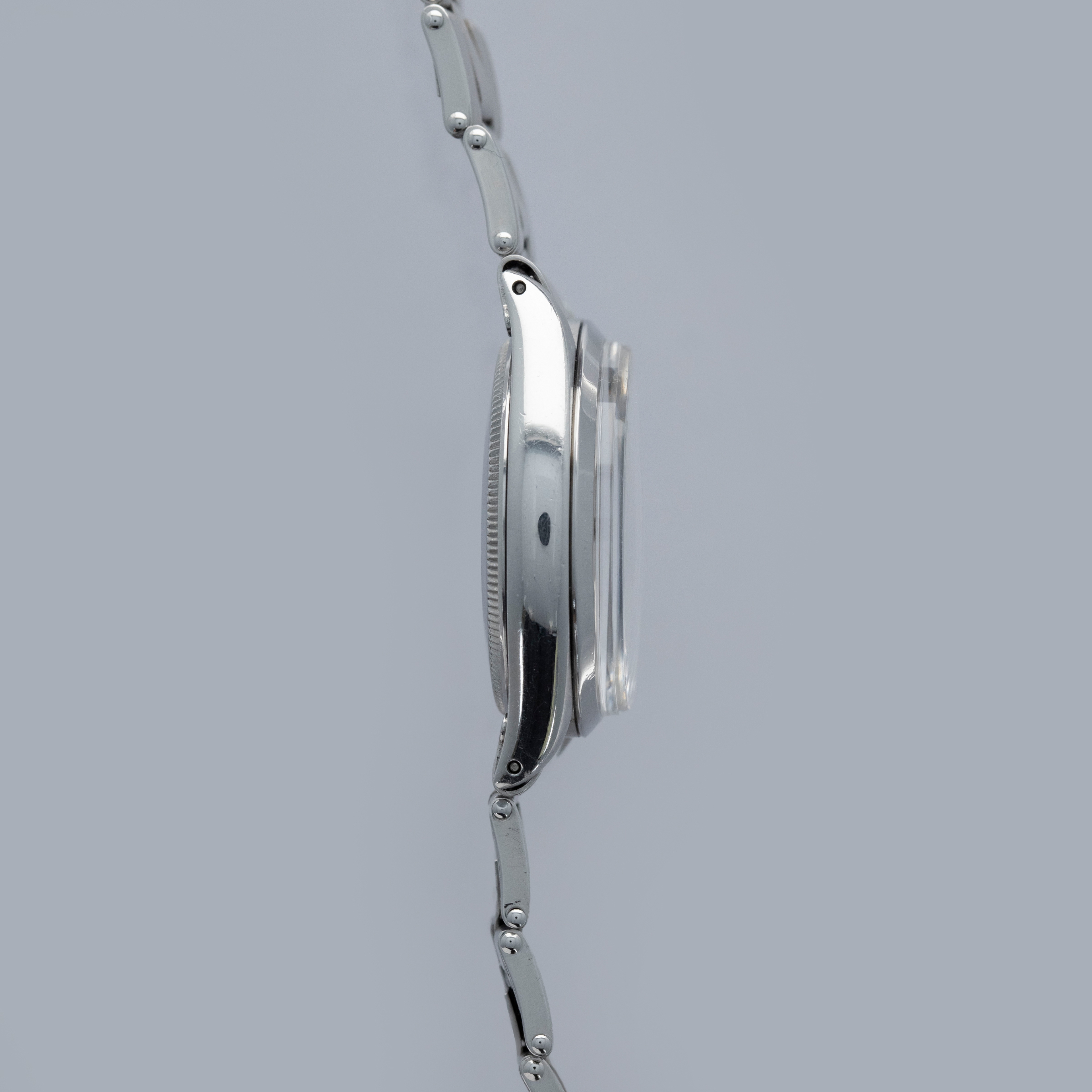 Featuring the Explorer's (and the Air-King's) no-frills construction, the ref. 5500's aesthetic is defined by its flat polished bezel, lack of crown guards, and Rolex's signature Oyster bracelet.