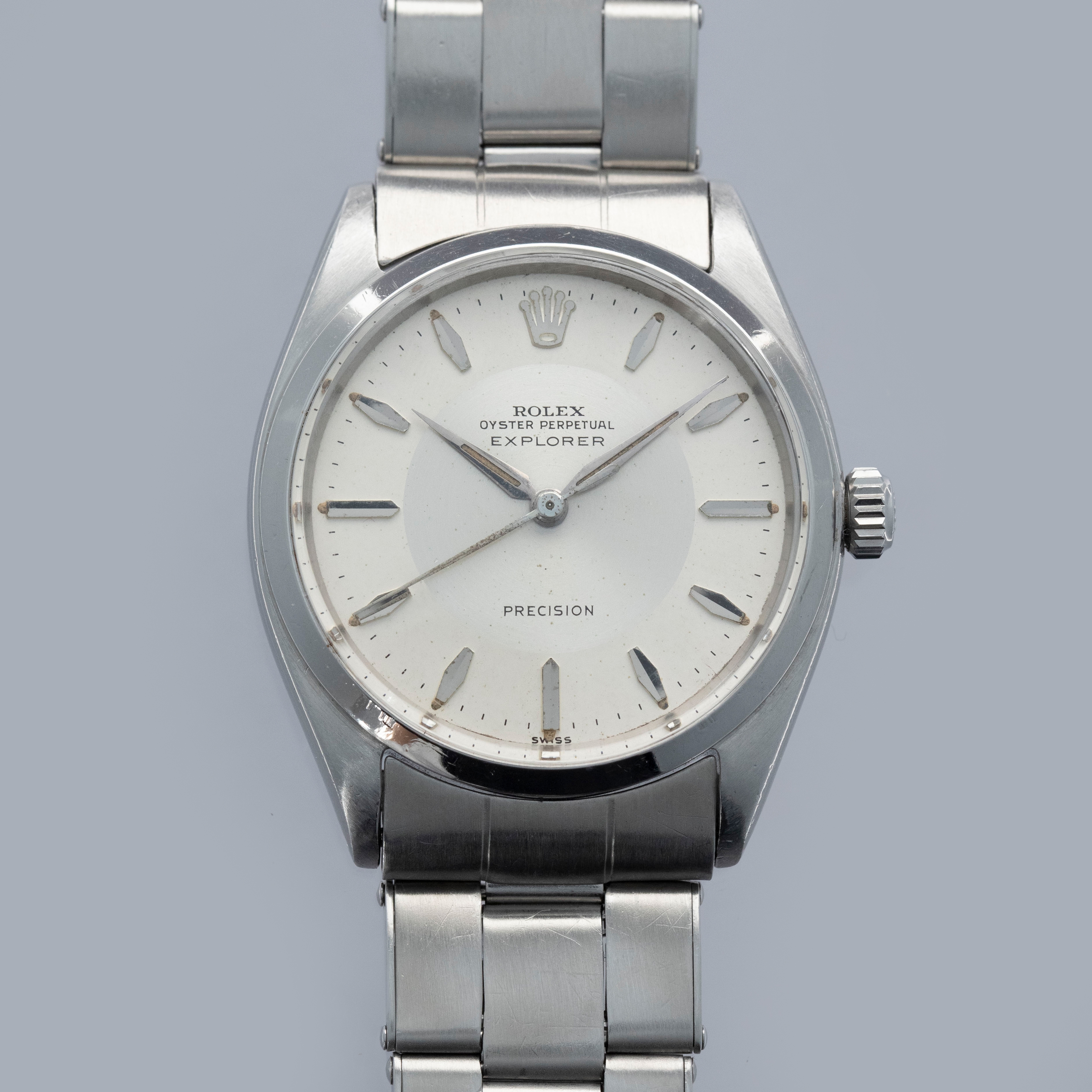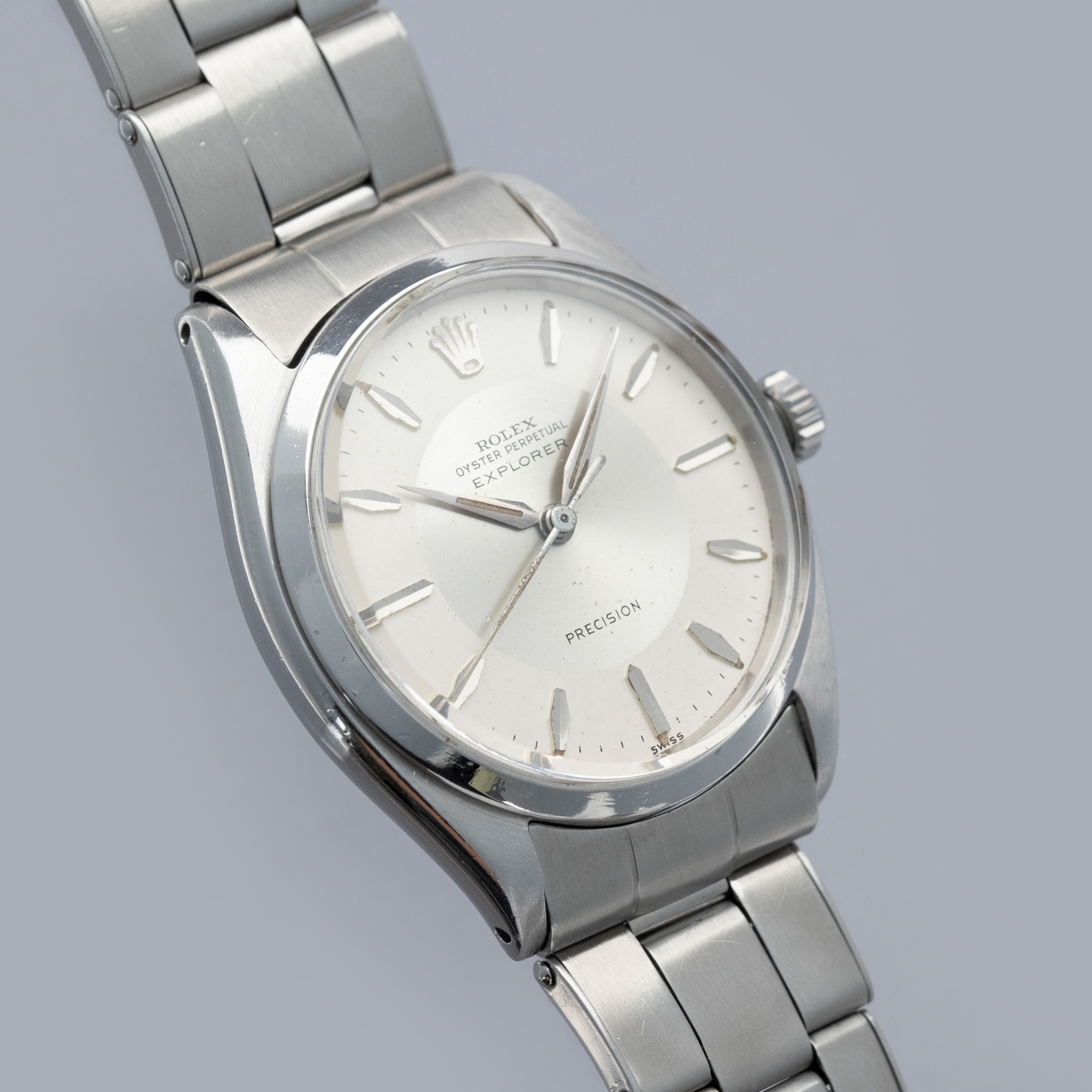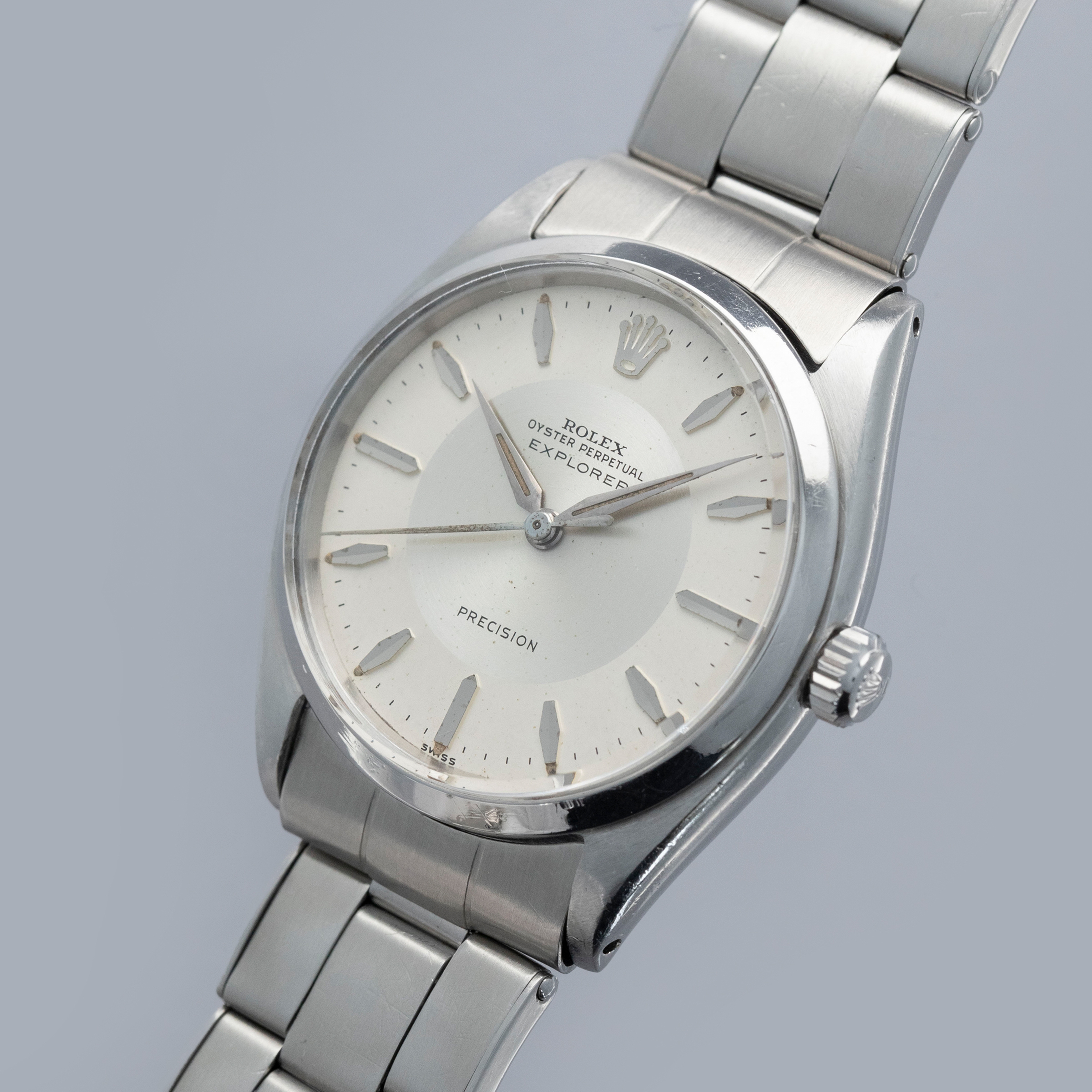 While normally an Air-King reference, this ref. 5500 was created specifically for the Canadian market as an Explorer reference with a silver "Bullseye" dial, as named after its circular brushed central portion that contrasts its outer chapter ring.