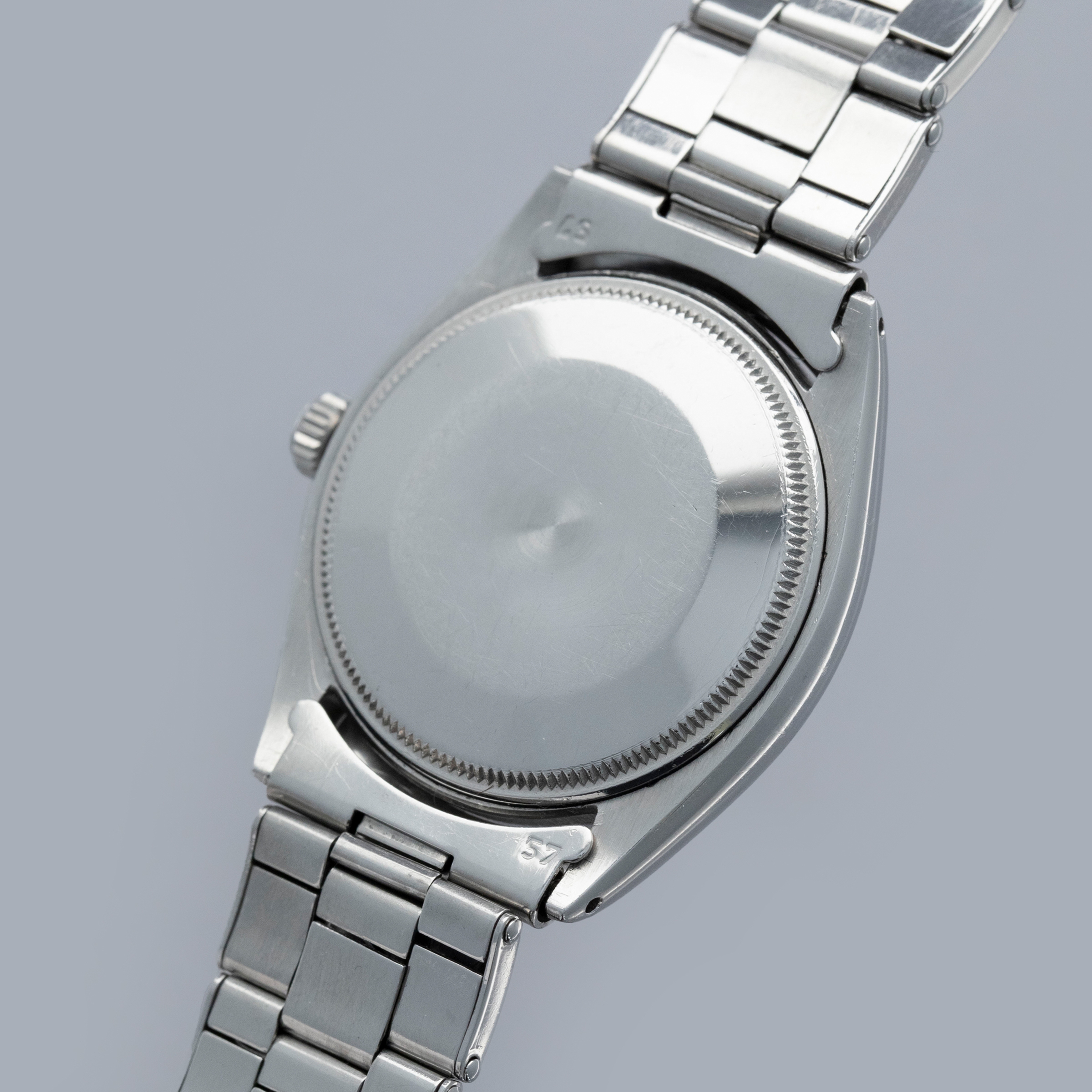 Created specifically for the Canadian market, this ref. 5500 - which is normally a reference used by the Air-King collection - boasts a unique Explorer-branded silver "Bullseye" dial that imbues this watch with an unusual personality that vintage Rolex collectors seek out in the brand's revered timepieces.