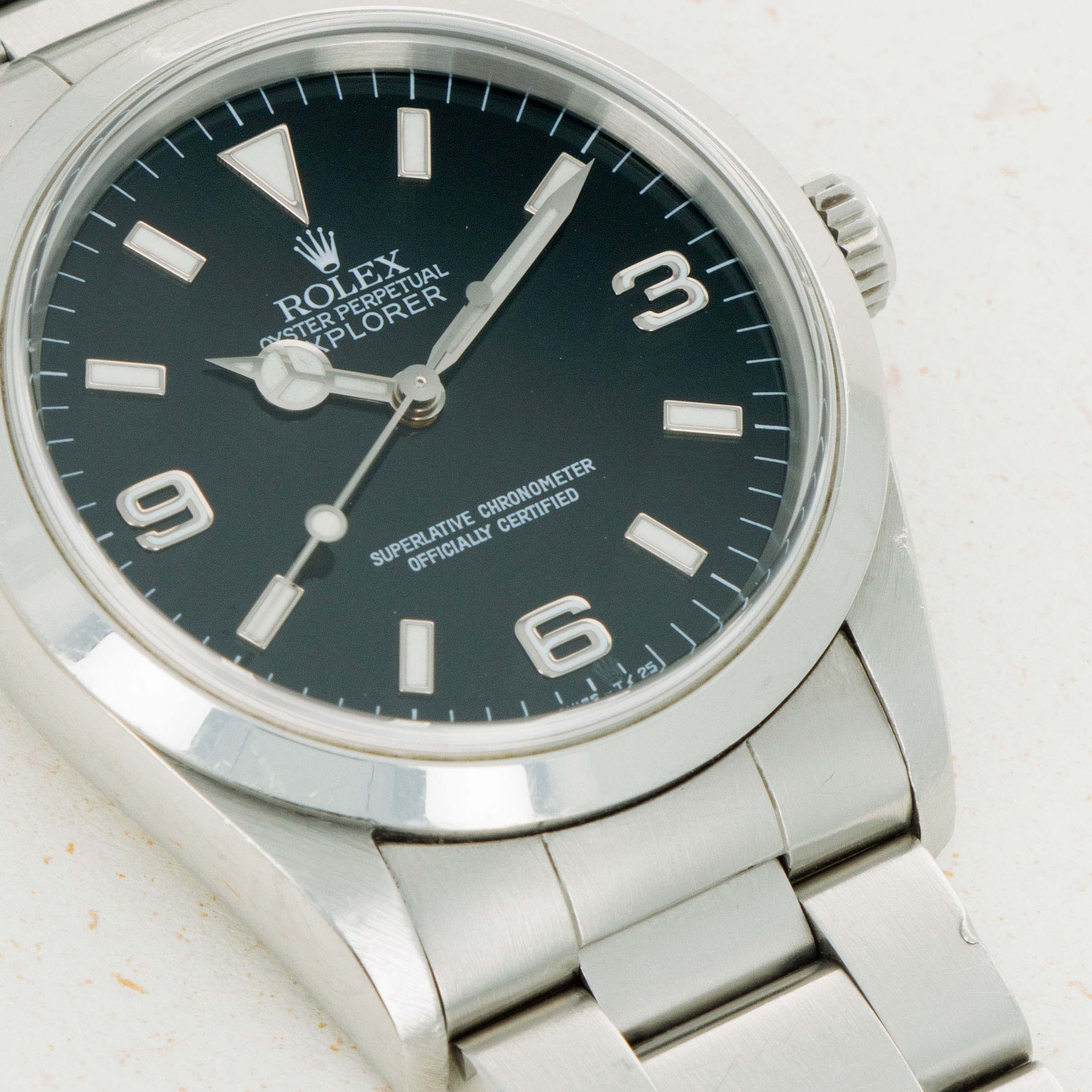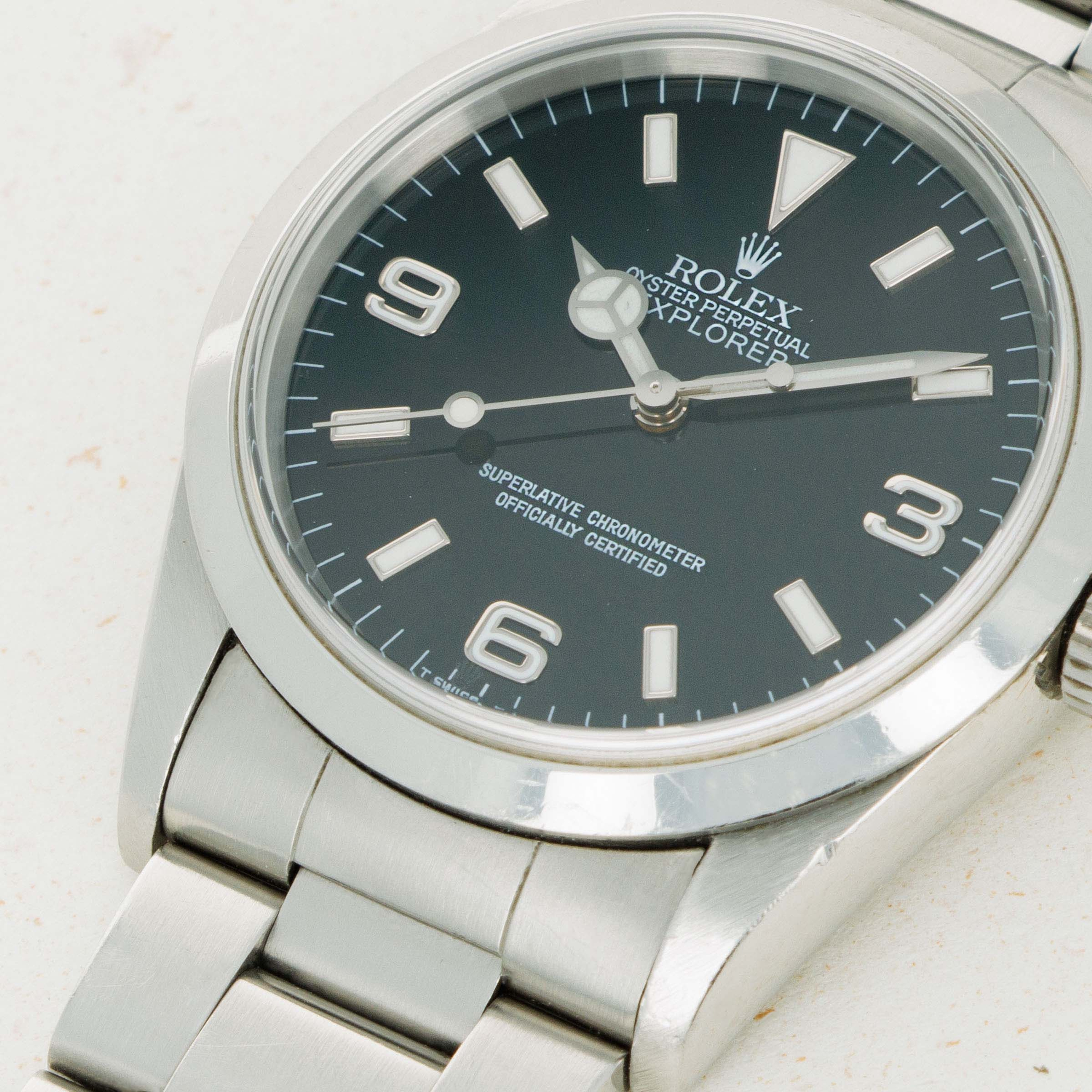 Inspired by the first-ever successful summit of Mount Everest by Sir Edmund Hillary and his Sherpa Tenzing Norgay, who wore a Rolex Oyster Perpetual, the Rolex Explorer has long been Rolex's ultimate adventure watch. Constructed entirely from Rolex's 904L steel, the Explorer's robust design ensures that it can always battle the elements. Featuring some of Rolex's most capable movements and a rich heritage to boot, the Explorer is another display of their timeless design as this icon of watchmaking has remained virtually untouched in its aesthetic since its inception. Identifiable by its signature 3-6-9 glossy black dial, a flat stainless steel bezel, and entirely satin-brushed stainless steel case and bracelet, the Rolex Explorer has become renowned for its understated class, sporty elegance, and capable construction.