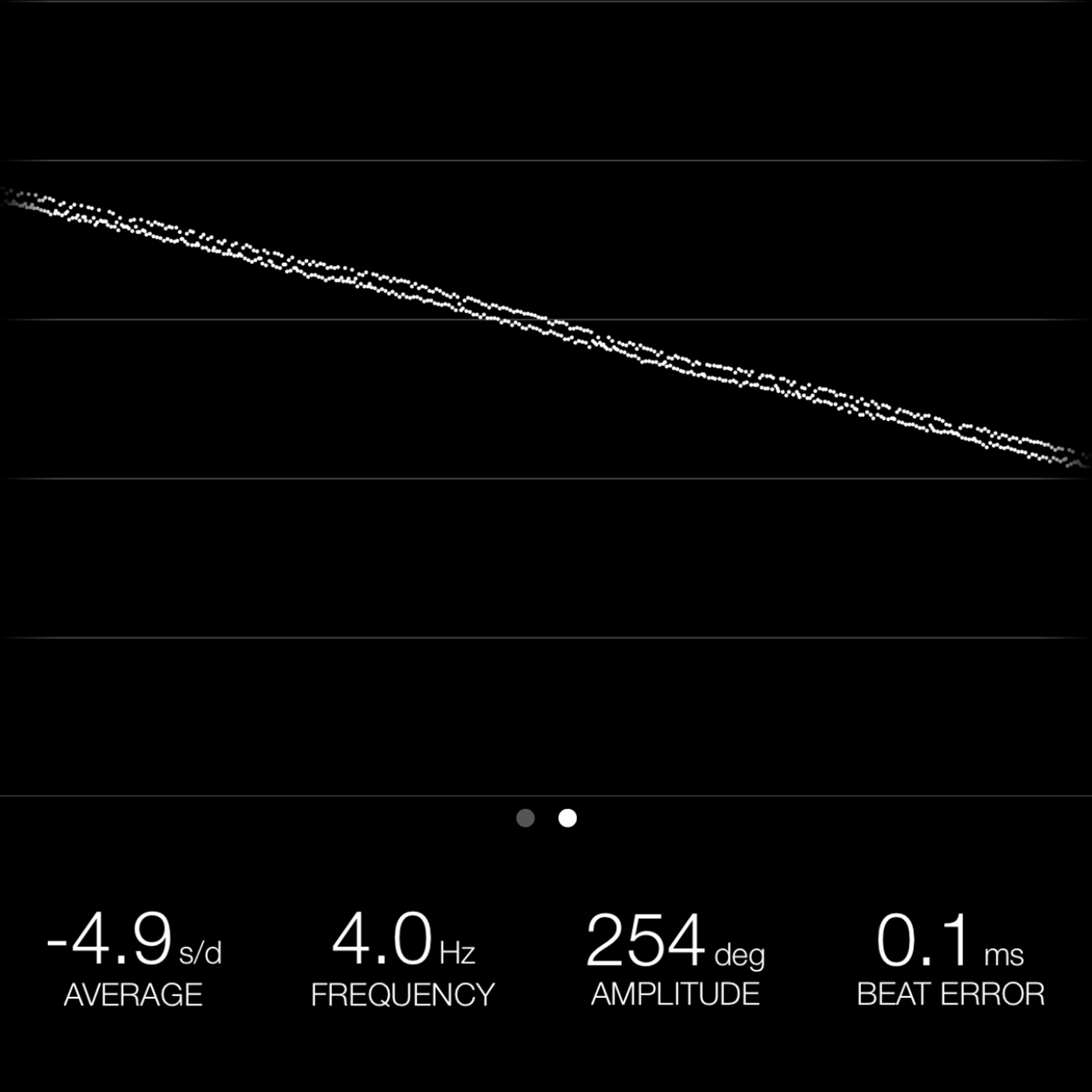 This reading was taken (crown down) with a ONEOF Accuracy Boutique Edition timing machine at time of cataloging. It is provided as a courtesy only, and shall not be construed as a warranty or guarantee of any kind. Please refer to our terms and conditions of sale for more information.