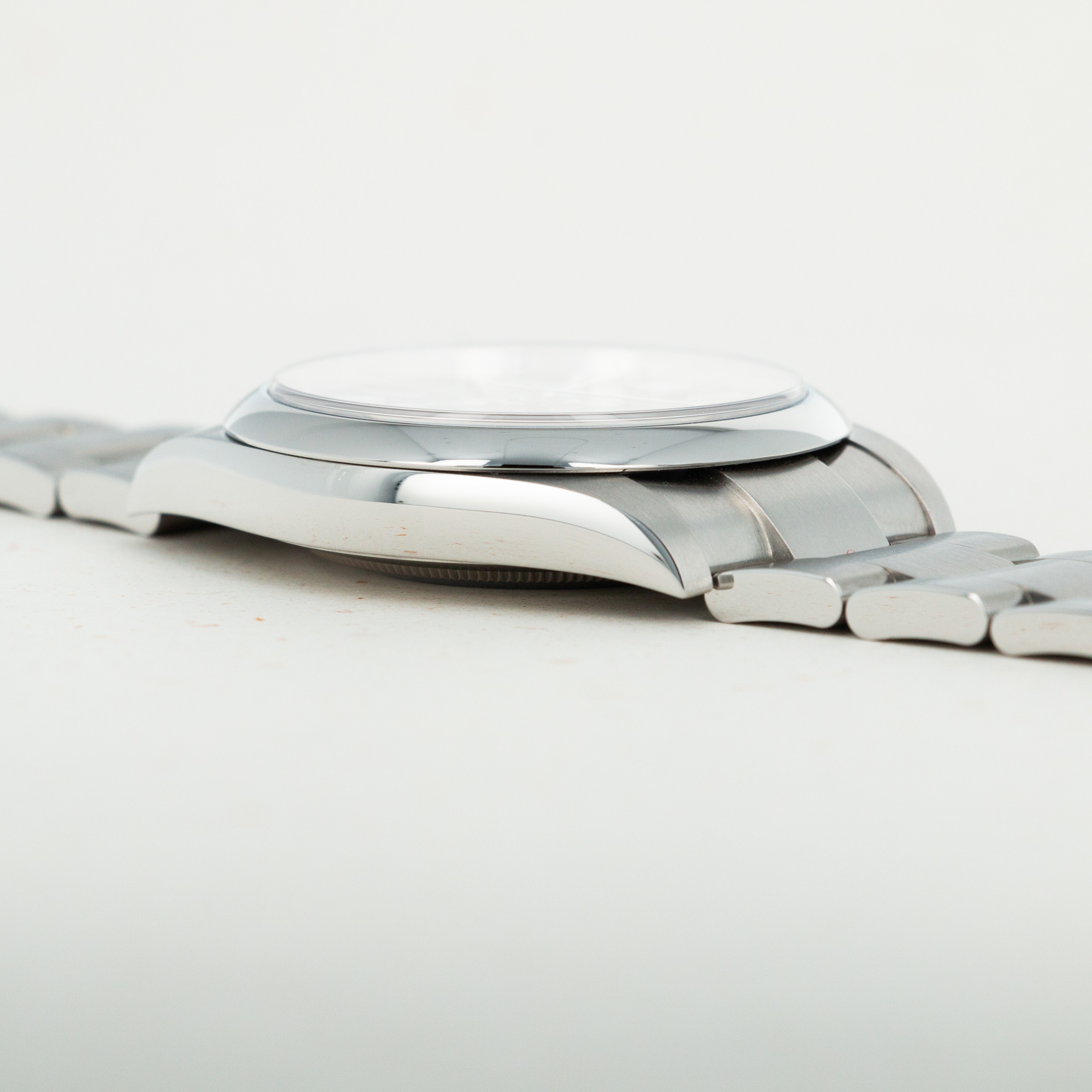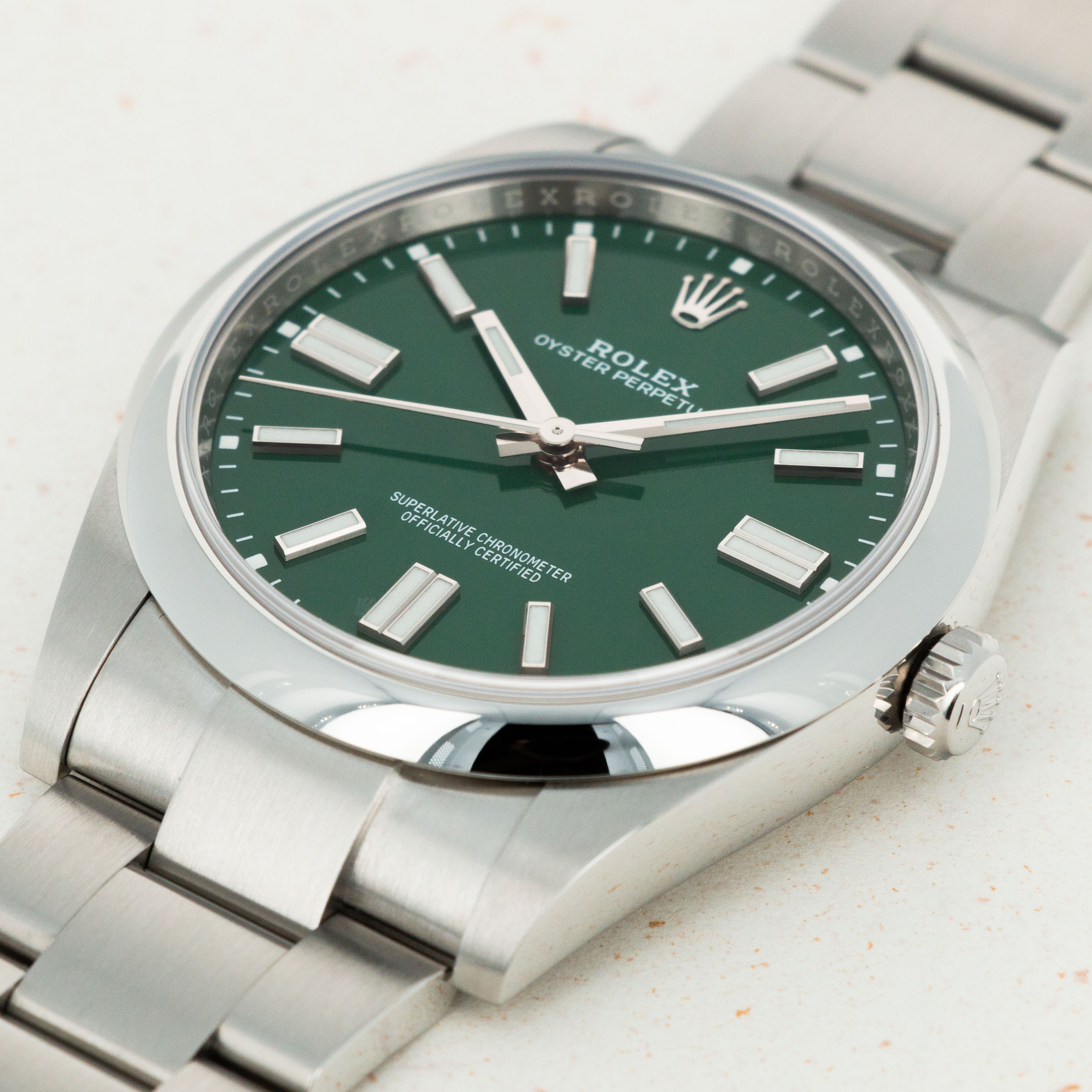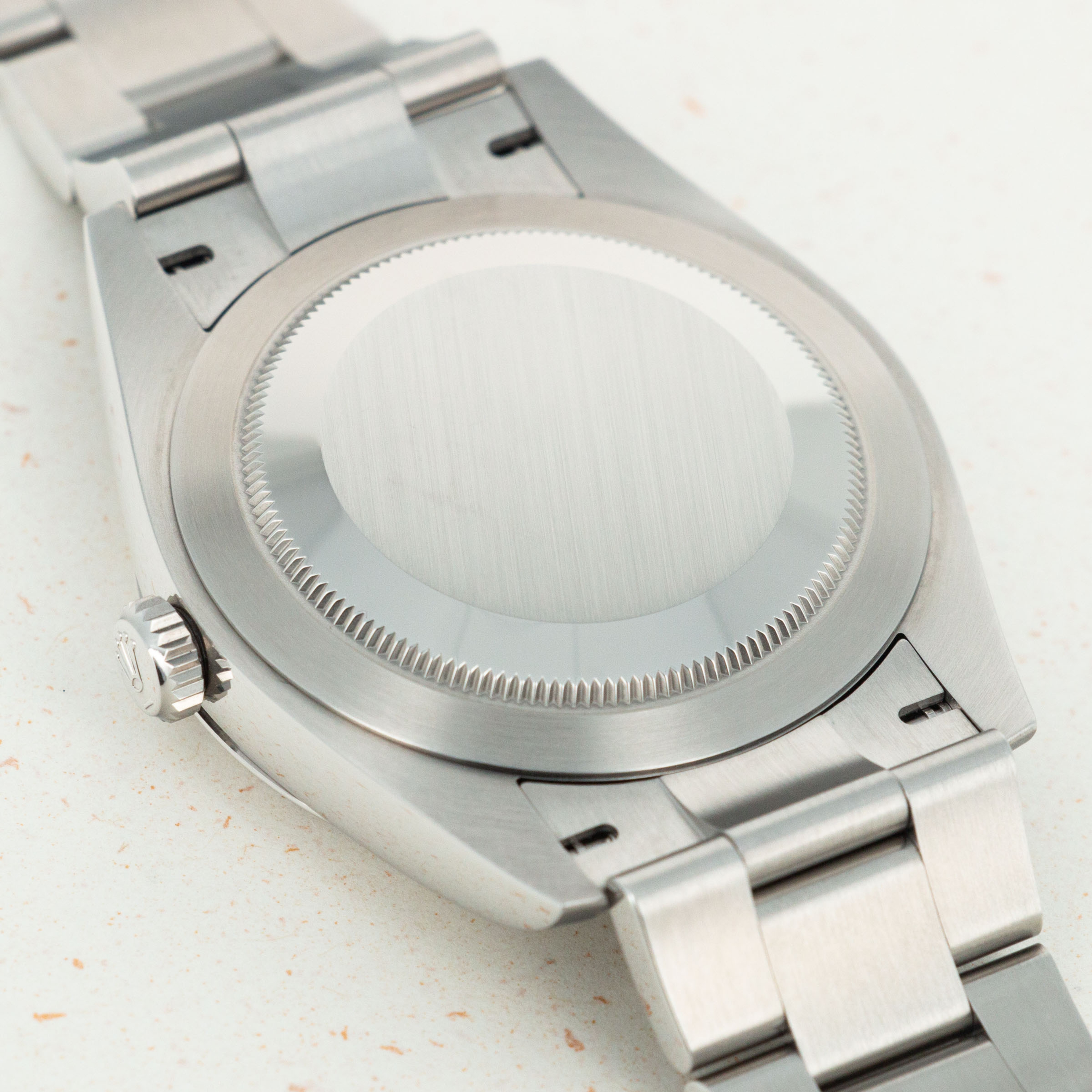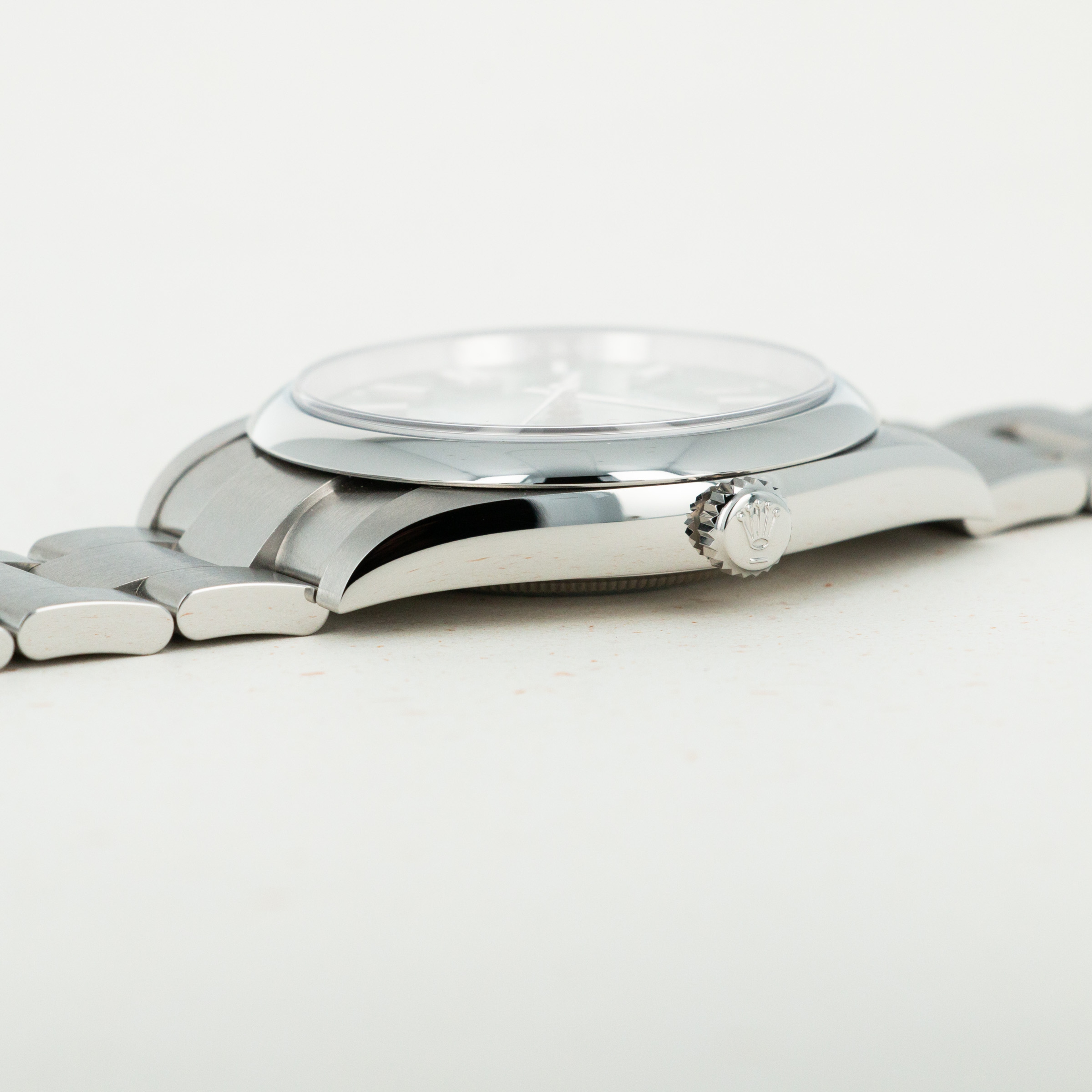 Released in 2020 as Rolex revitalized the entire Oyster Perpetual collection, the new OP41 ref. 124300 features the incredible in-house Rolex cal. 3230 movement within its 41mm entirely satin-brushed stainless steel case. Featuring 70 hours of power reserve with COSC certification and Rolex's own "Superlative Chronometer" certification, this new movement has ensured that the latest Oyster Perpetuals remain accurate to within -2/+2 seconds a day and feature the same level of horological engineering as any other flagship offering from the Genevan brand. Aside from its movement, the Oyster Perpetual was also given an aesthetic overhaul in the form of a range of new and immediately recognizable Stella dial reminiscent dial options. Ranging from turquoise blue to yellow to green to coral red and a selection of other colors, these new vibrant dials fuelled a massive shift in public opinion for the Oyster Perpetual, as it went from a relatively obscure offering to an instant hit overnight.