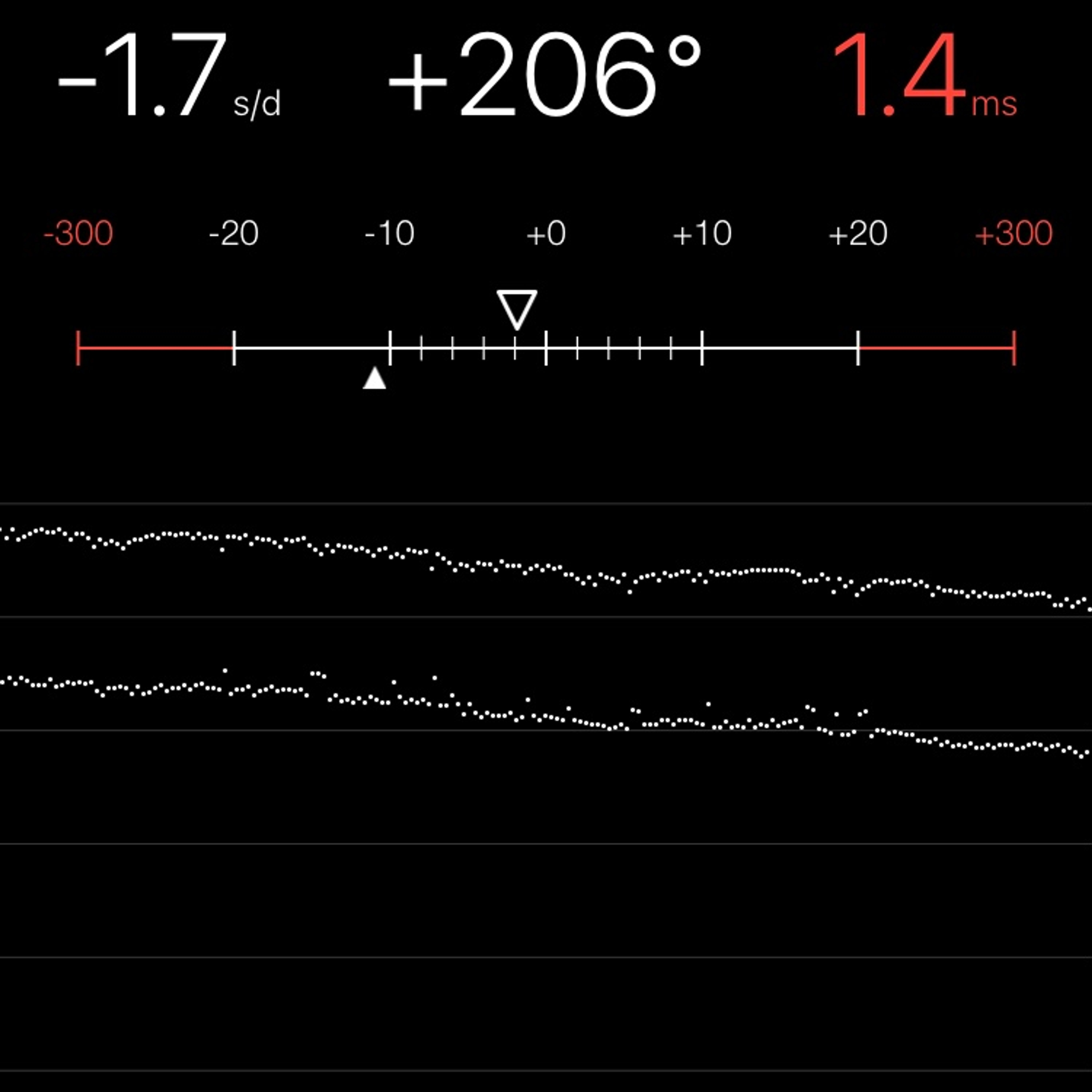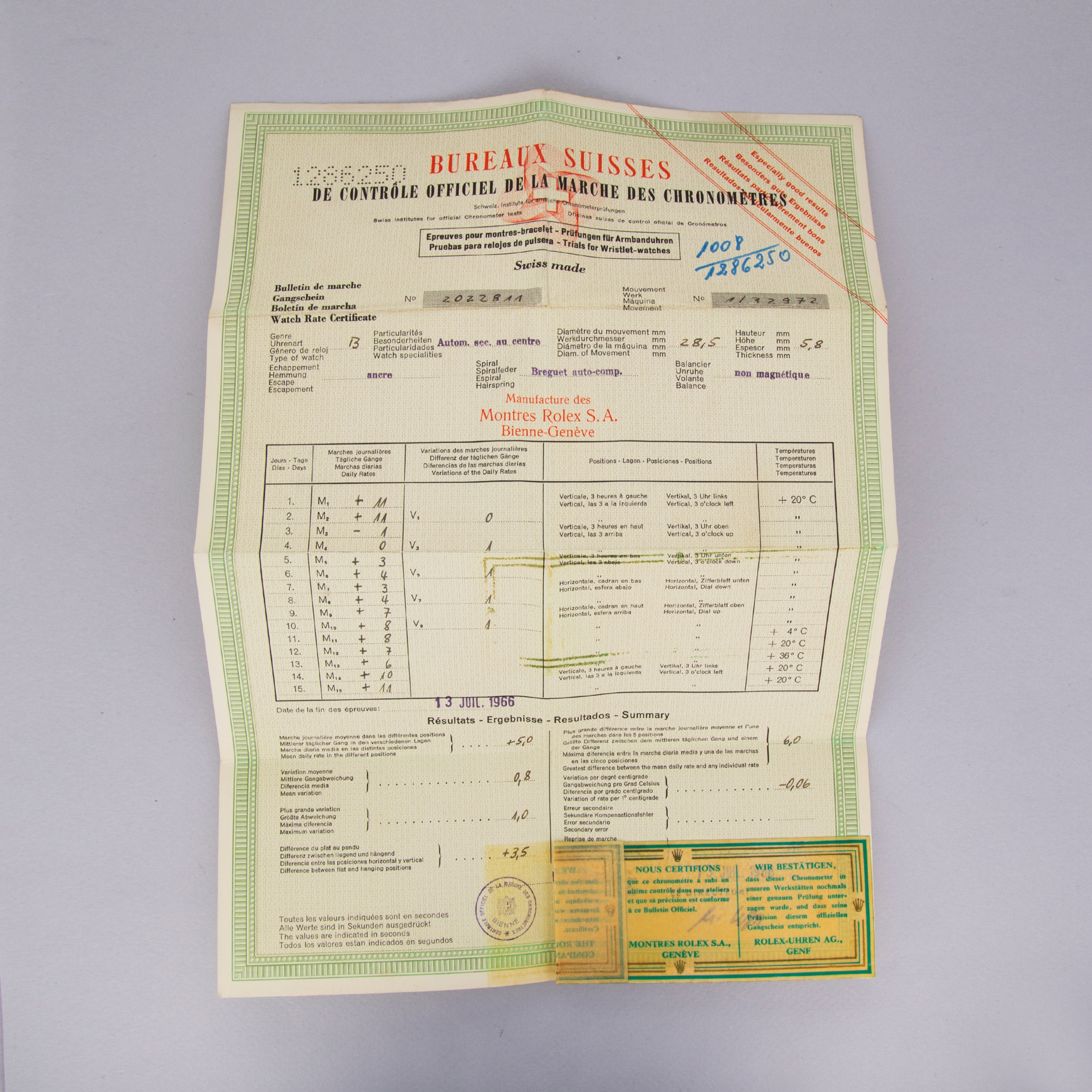 This reading was taken (crown down) with a ONEOF Accuracy Boutique Edition timing machine at time of cataloging. It is provided as a courtesy only, and shall not be construed as a warranty or guarantee of any kind. Please refer to our terms and conditions of sale for more information.