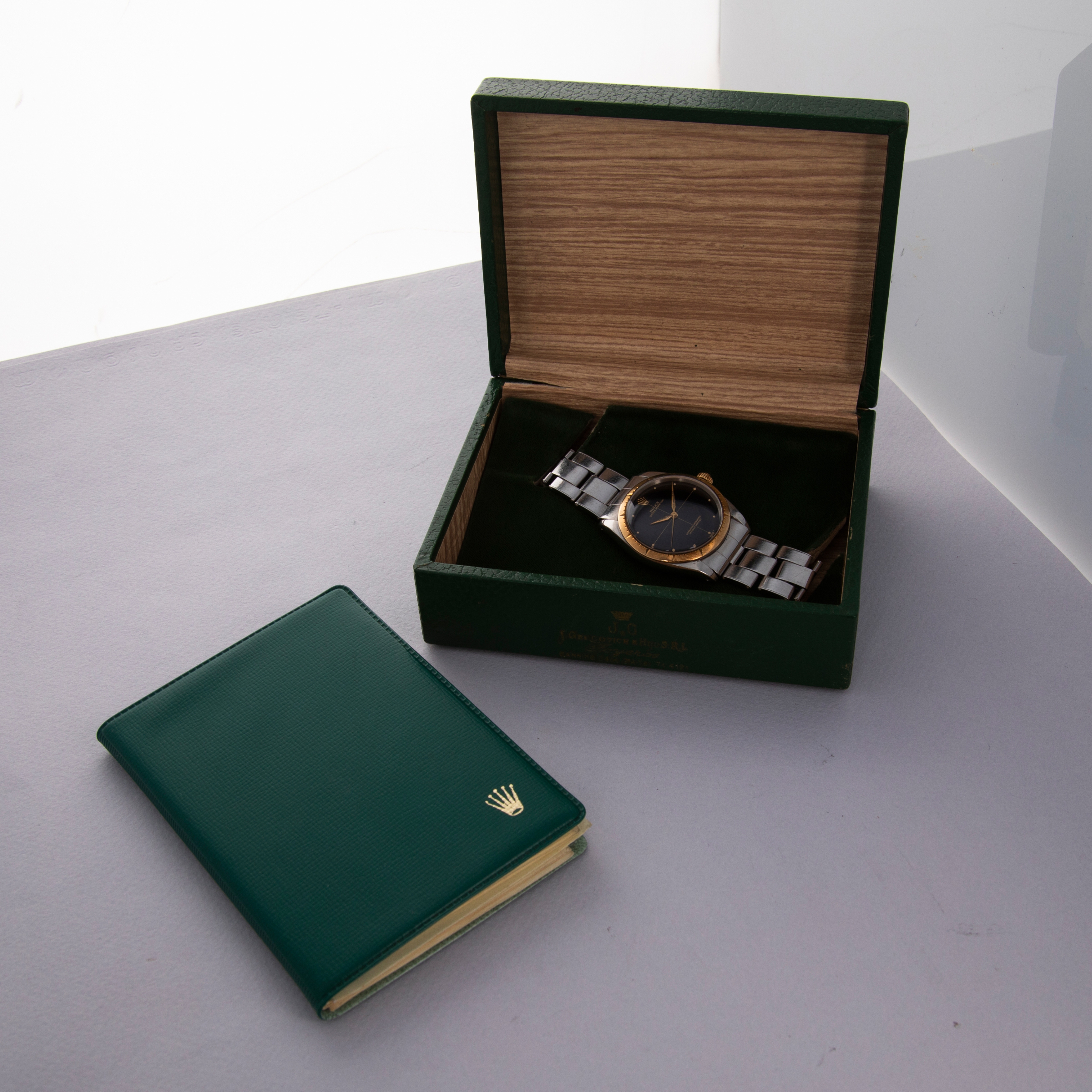 A wonderful example of how the Zephyr dial can transform the look of a watch, this ref. 1008's black display completely transforms it from a normal Oyster Perpetual into something completely exotic.