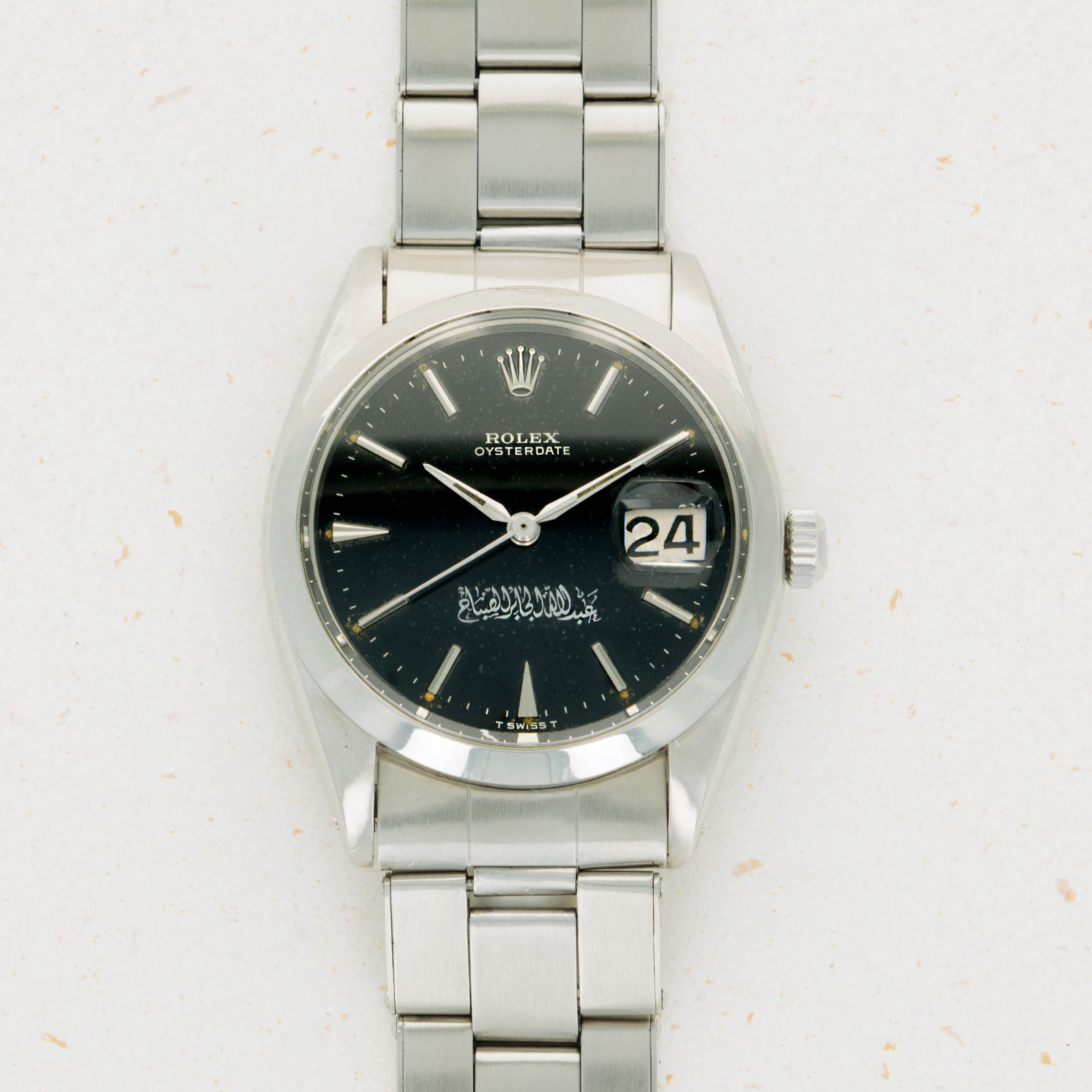 The Rolex Oysterdate is an admittedly utilitarian watch. Refined and free from excess like a lot of other Rolex models, it is a tool watch in its purest form. Launched as the ref. 6094 in Rolex’s busiest year, 1953, it featured the manual-wind cal. 1215. This was eventually upgraded to the cal. 1225 that powered the reference we have here, the ref. 6694 that debuted in the early 1960s. Svelte by today’s proportions, the Oysterdate was sold as an entry-level version of the Datejust, with its 2mm smaller 34mm case and manual movement allowing its retail price to be that bit more palatable. This more accessible price worked in enabling groups to purchase the watch, just like the Kuwaiti Royal Family, who bought this particular example in 1966 to have its dial stamped with the name of Abdullah Al Jaber Al Sabah, Kuwait’s fifth king who would go on to have a massive impact on the development of Kuwait, with his diplomatic efforts seeing the Ottoman Empire supply Kuwait with drinking water, along with helping the country work through several natural disasters and even minting the country’s first coins. A legendary Kuwaiti leader, this Rolex celebrates his impact on Kuwait and serves as a reminder of Rolex’s status as the watch that these royal families used to mark the reign of their previous members.