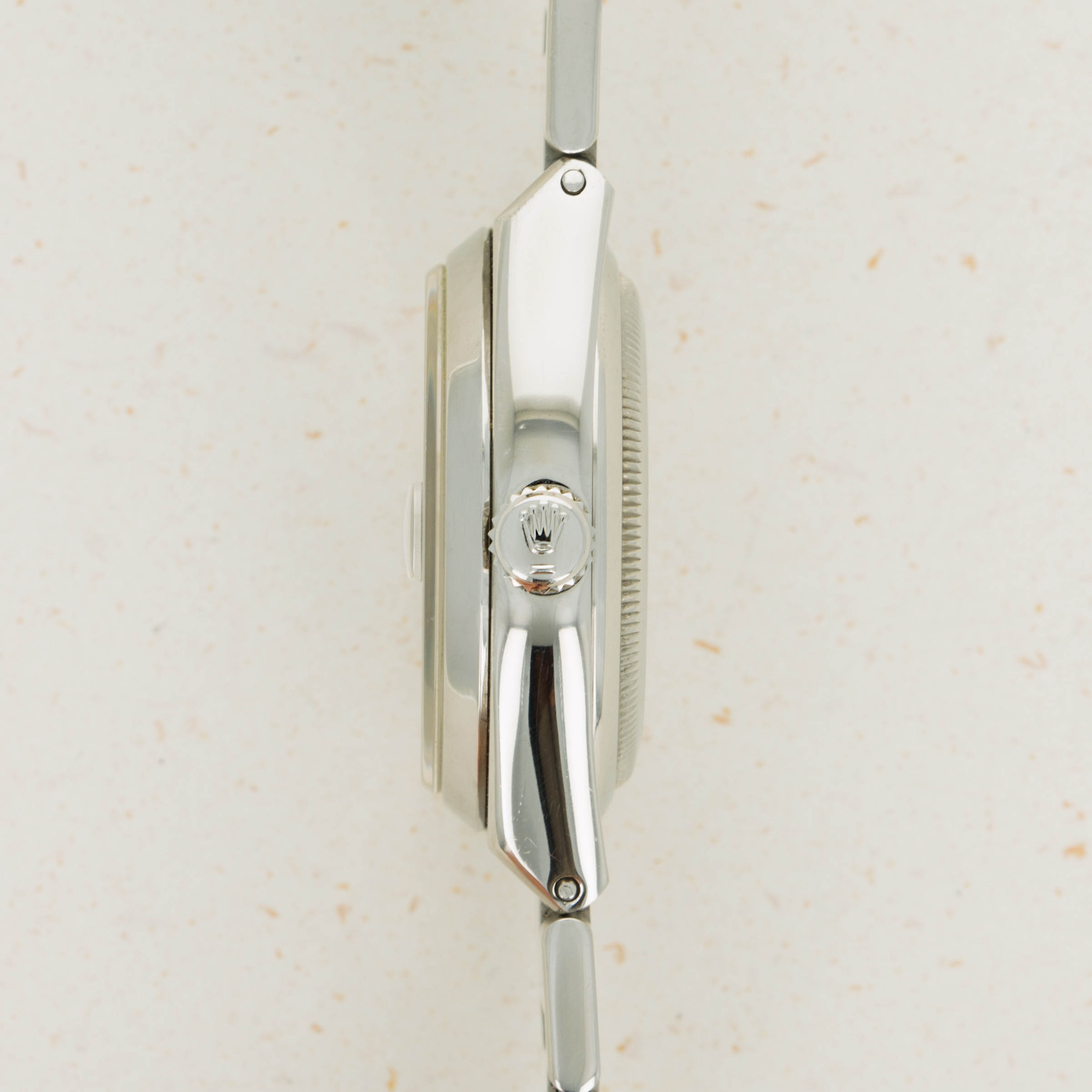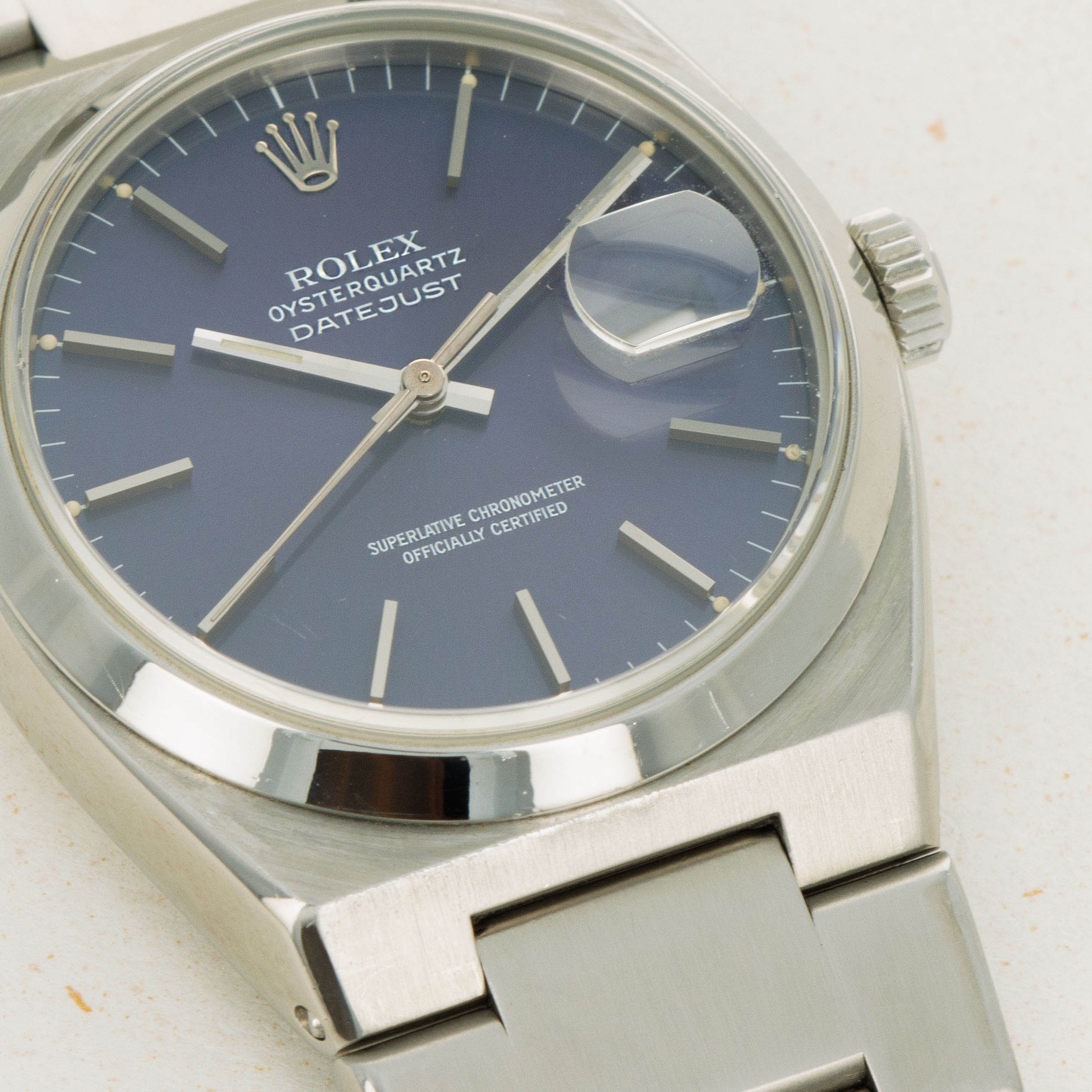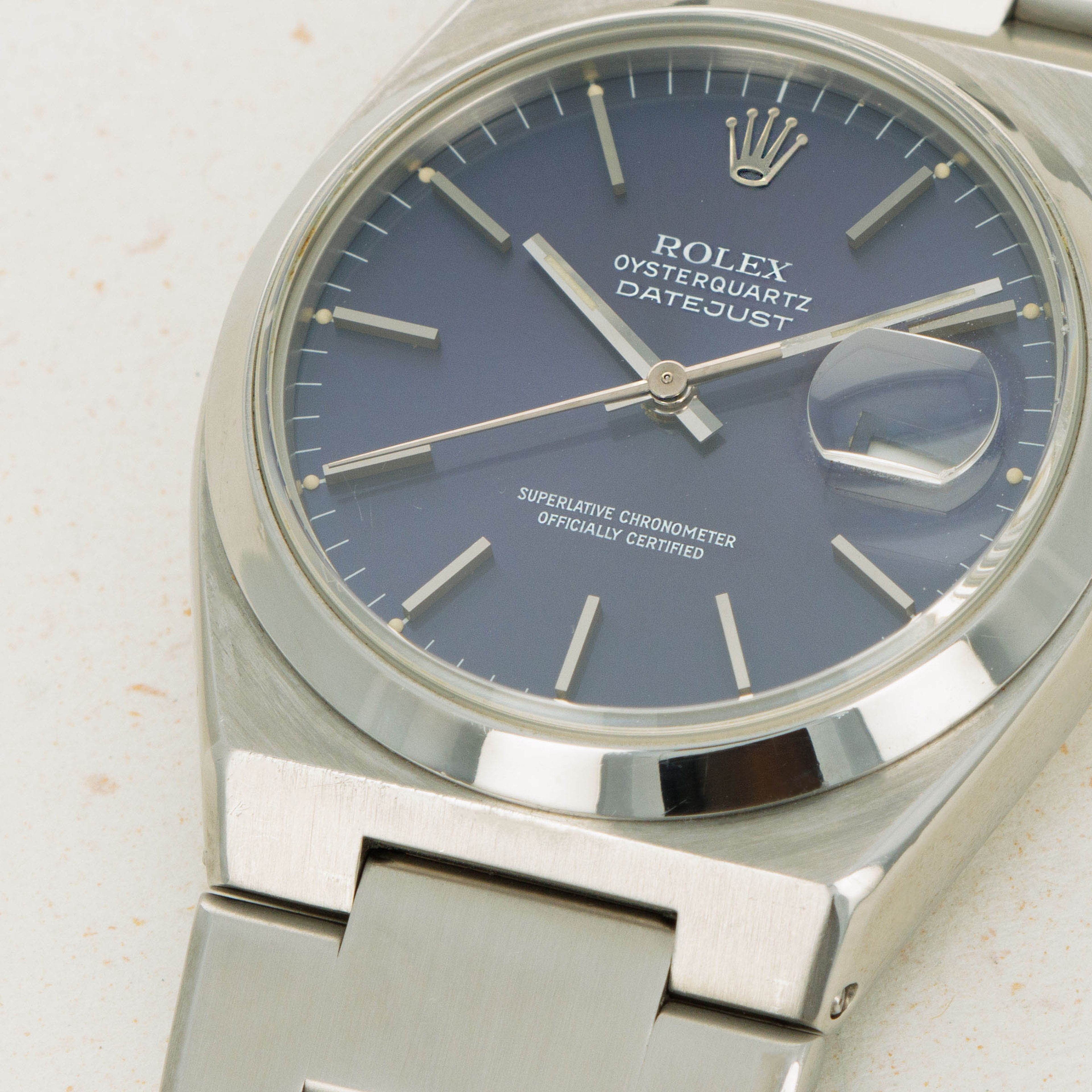 With its rich blue dial giving away none of the ref. 17000's quartz-powered secrets, it is only those in the know that can recognize this as being a very rare quartz-powered Rolex.