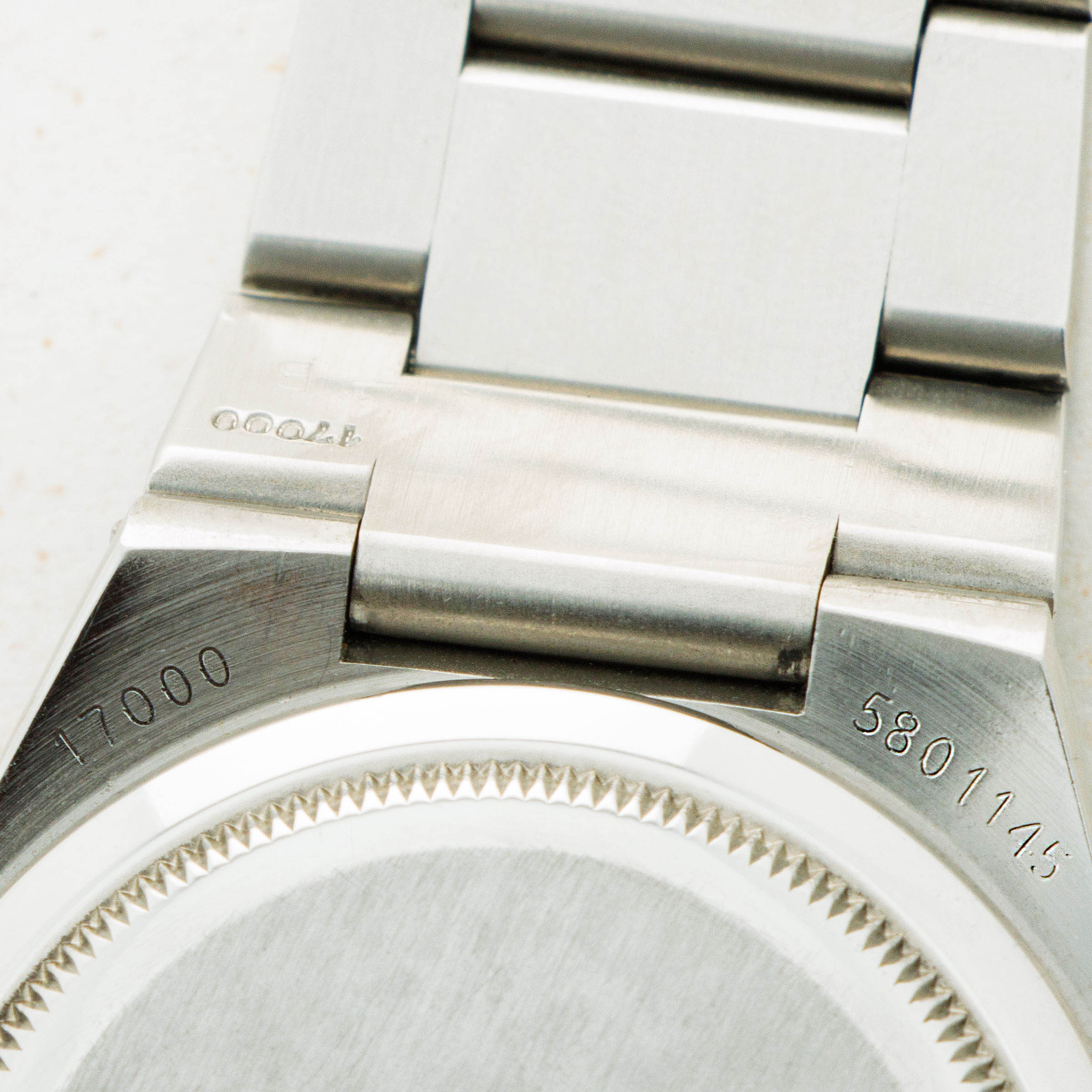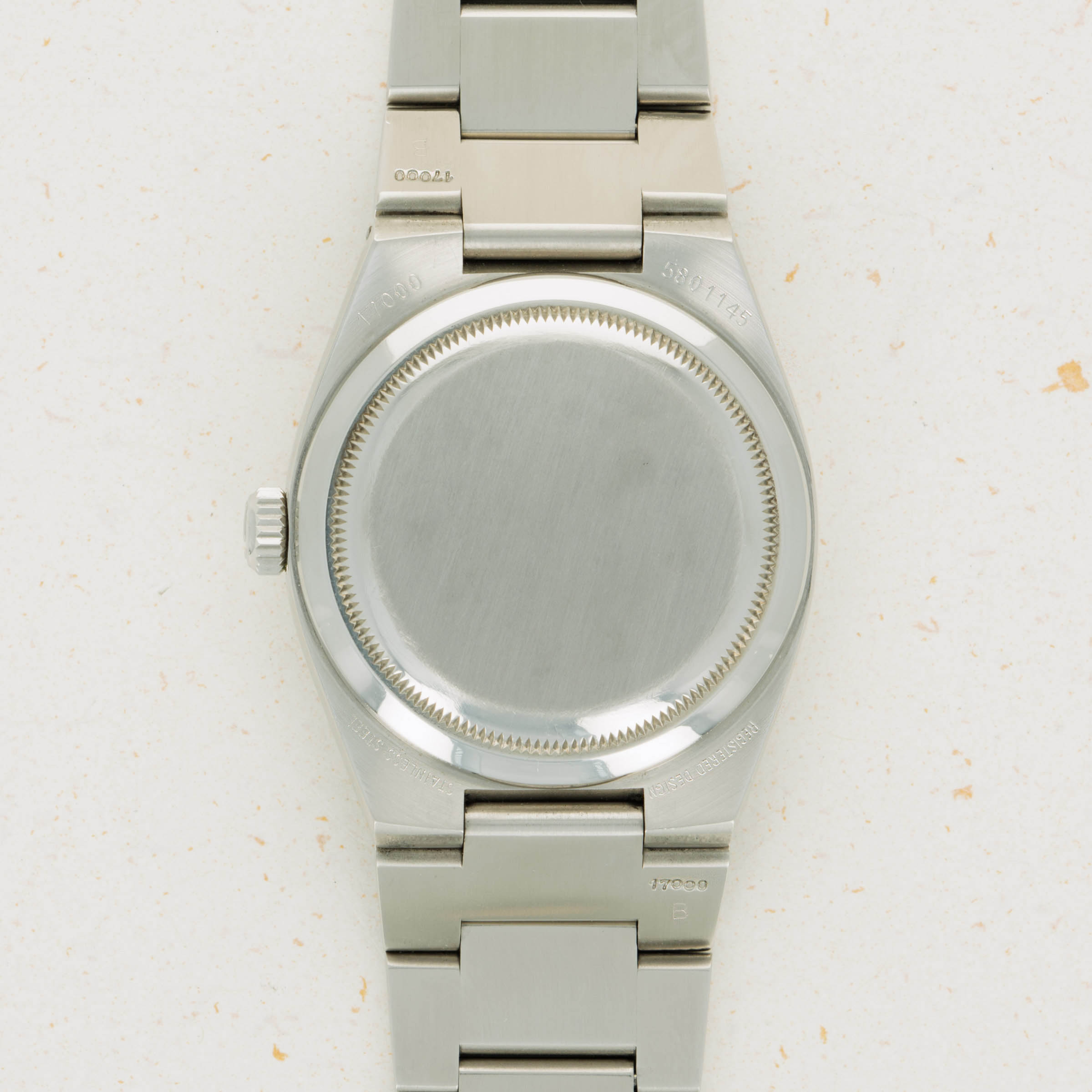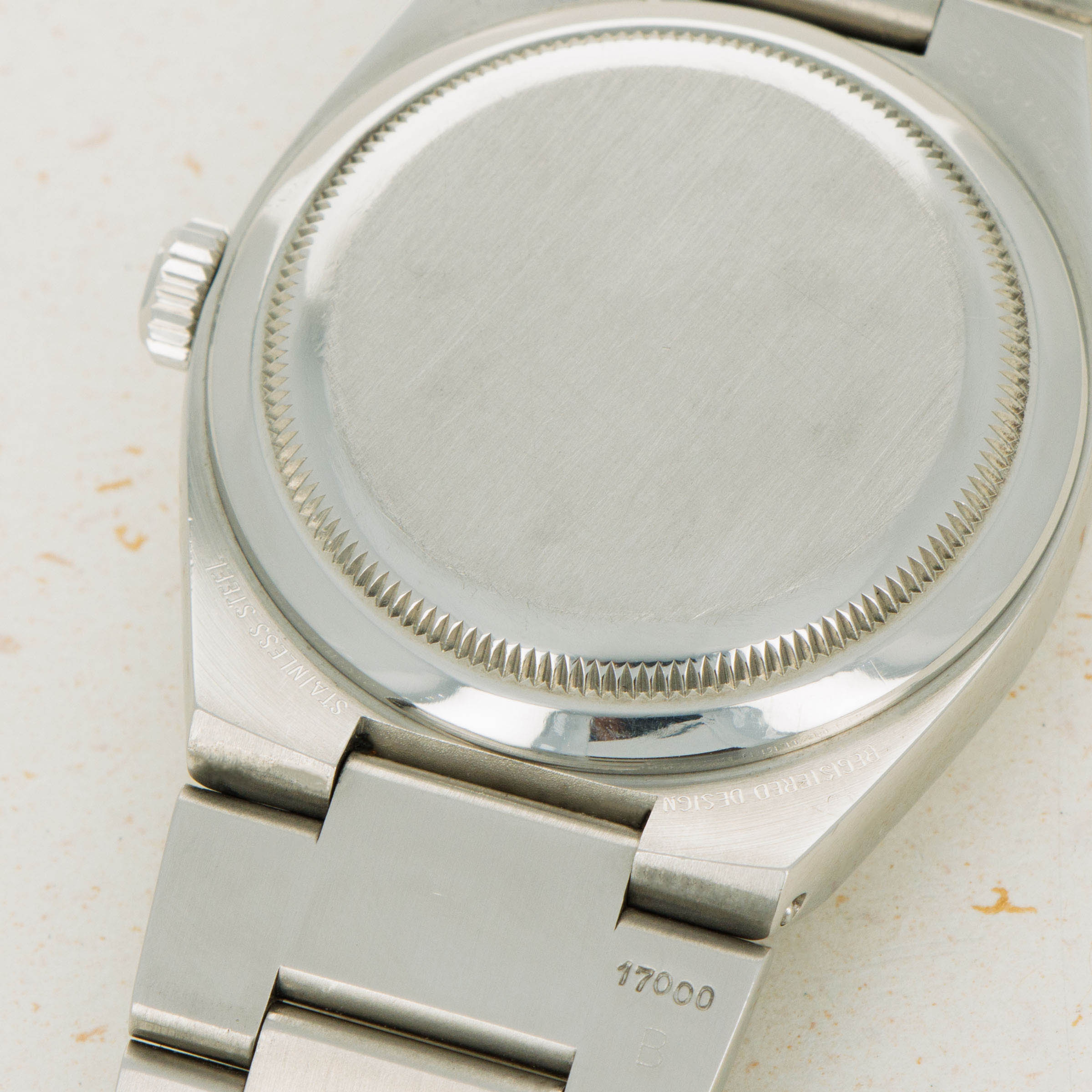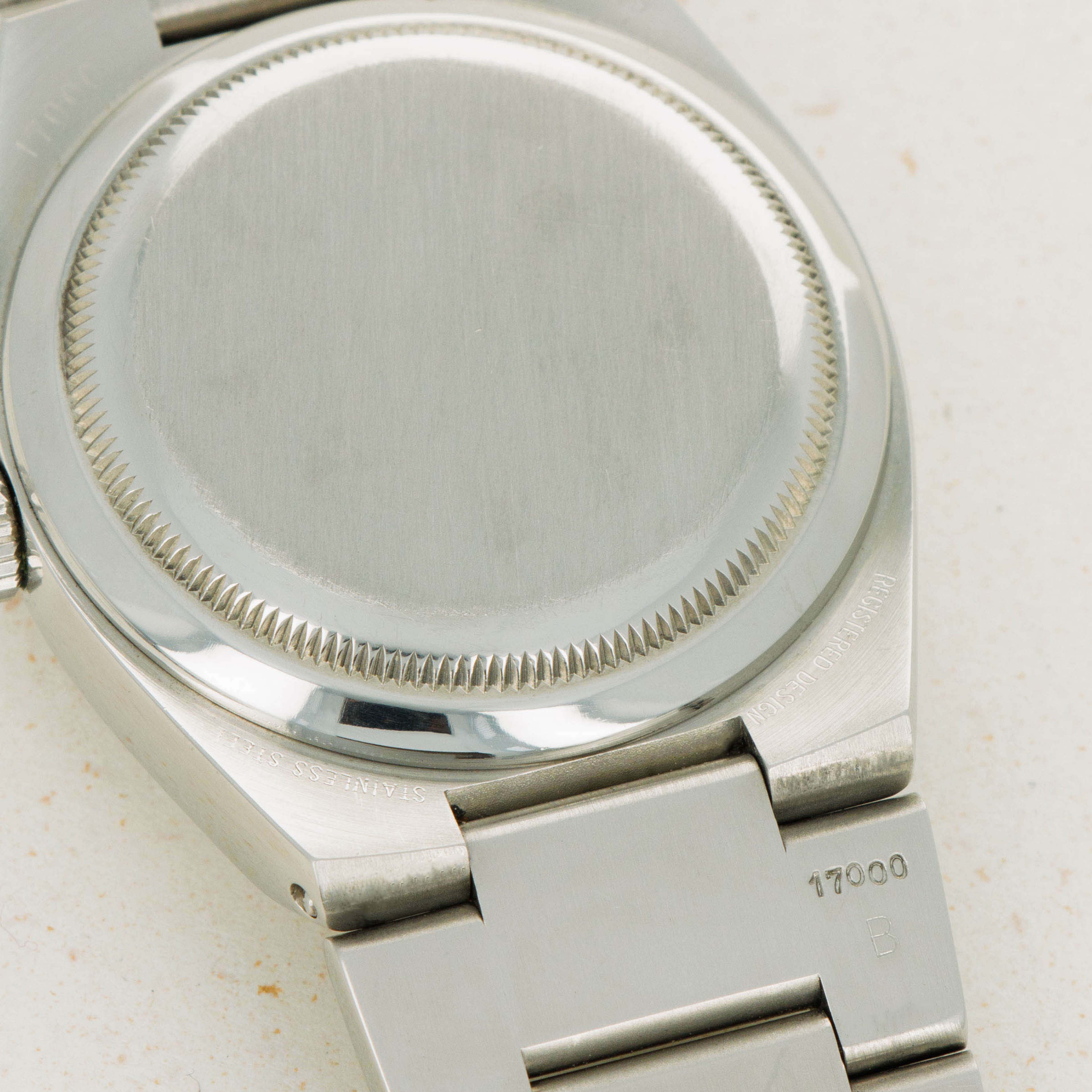 Bearing a construction style that is quite uncommon for Rolex, the ref. 17000 features an integrated bracelet that allows its 36mm case to wear larger than its measurements suggest.