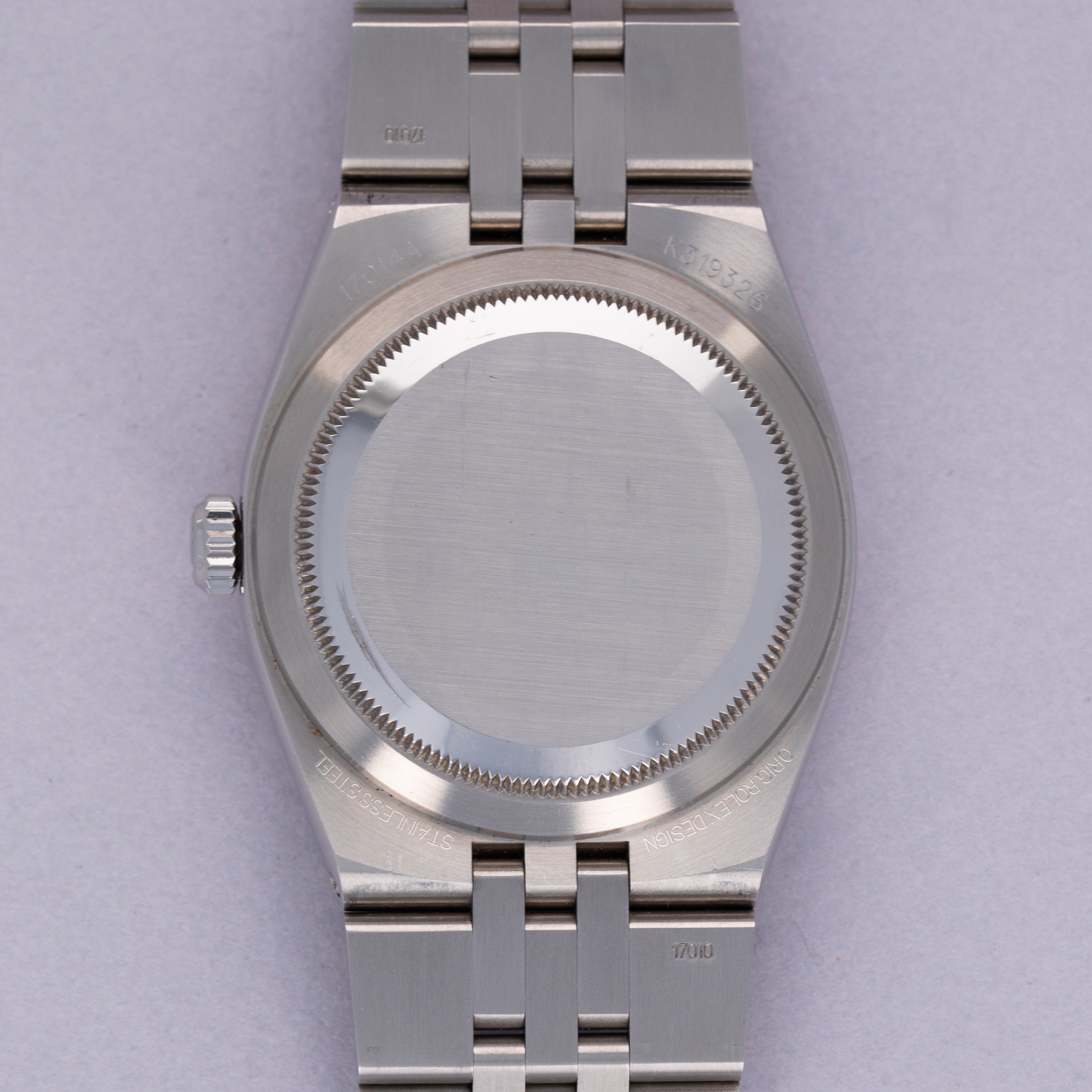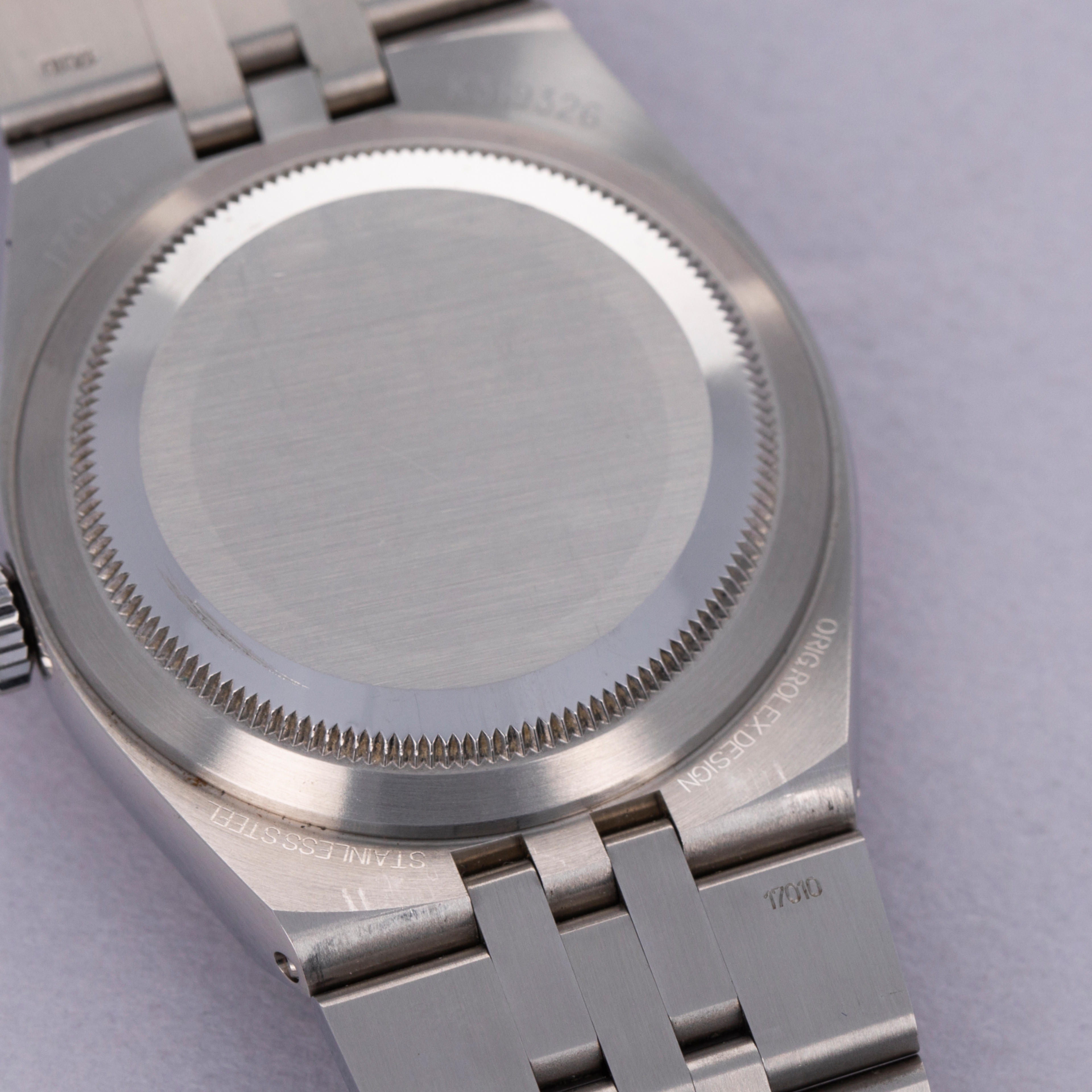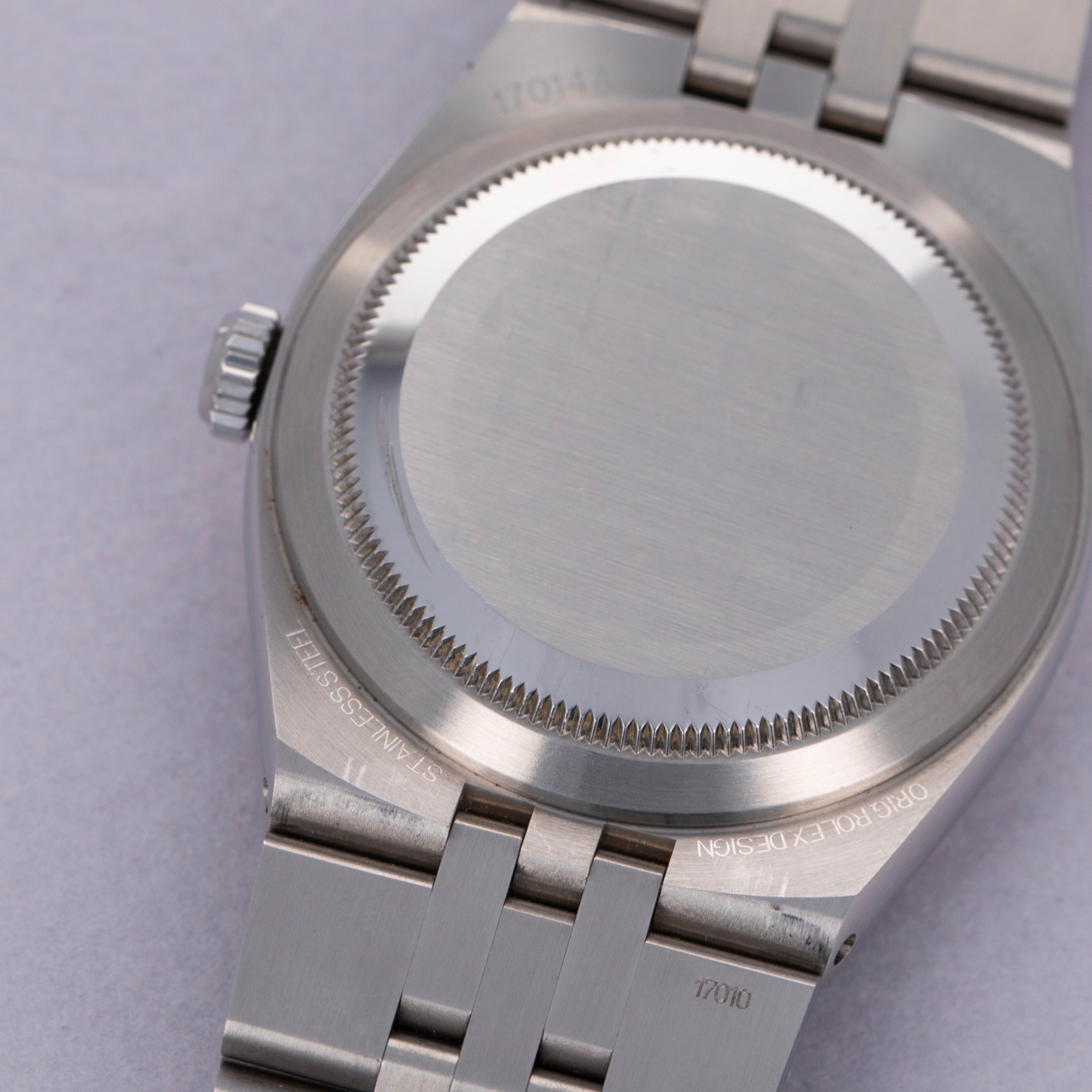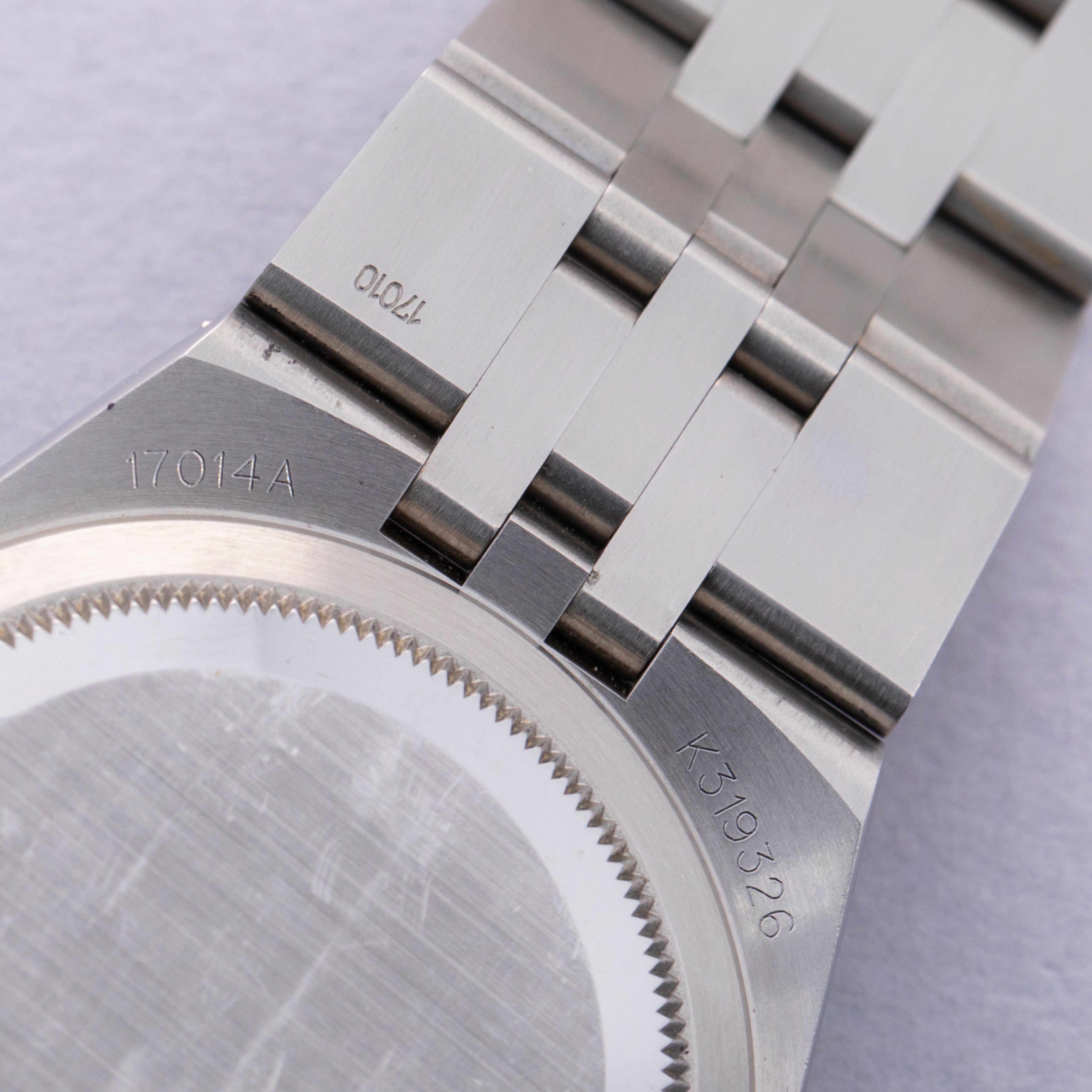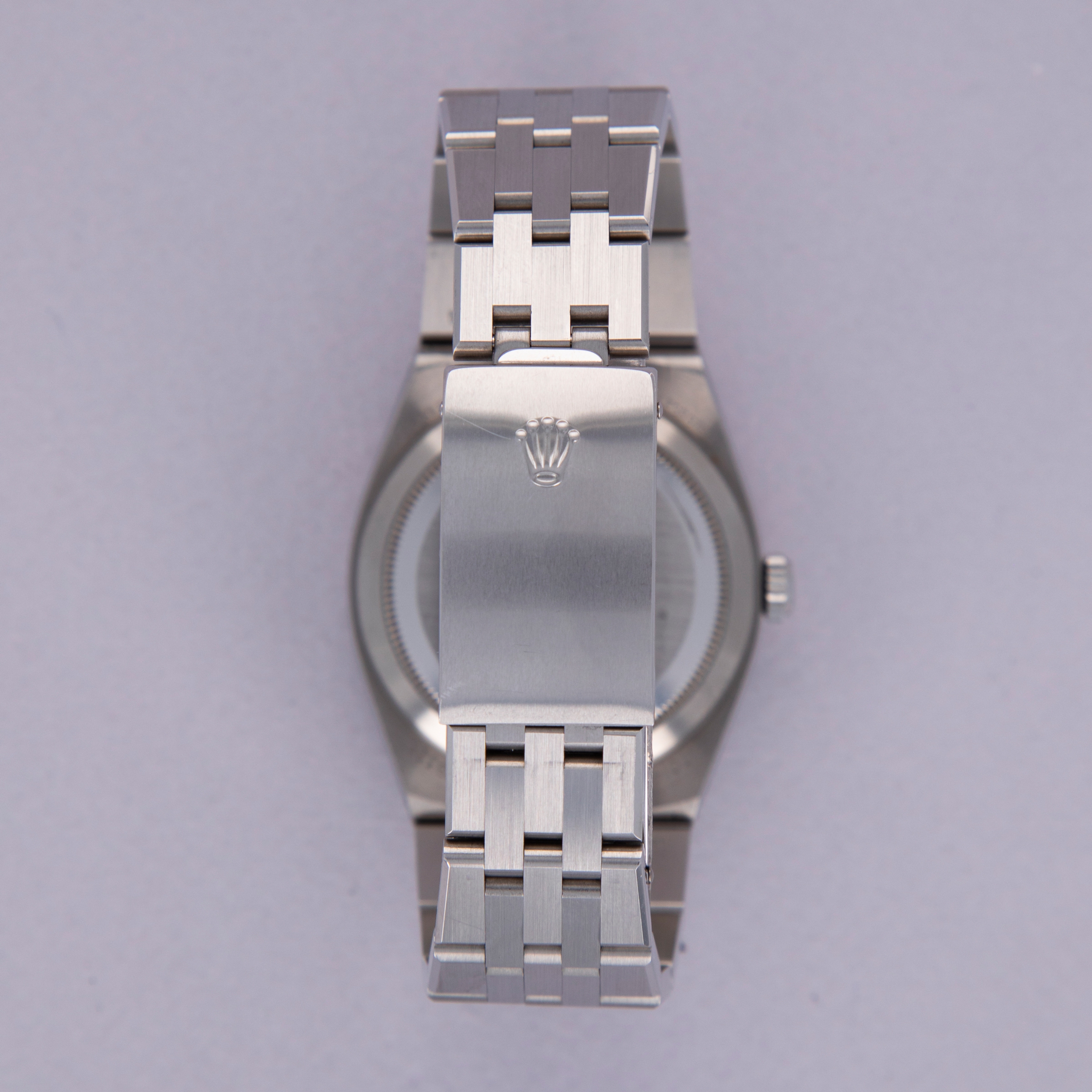 Bearing a construction style that is quite uncommon for Rolex, the ref. 17014 features an integrated bracelet that allows its 36mm case to wear larger than its measurements suggest.