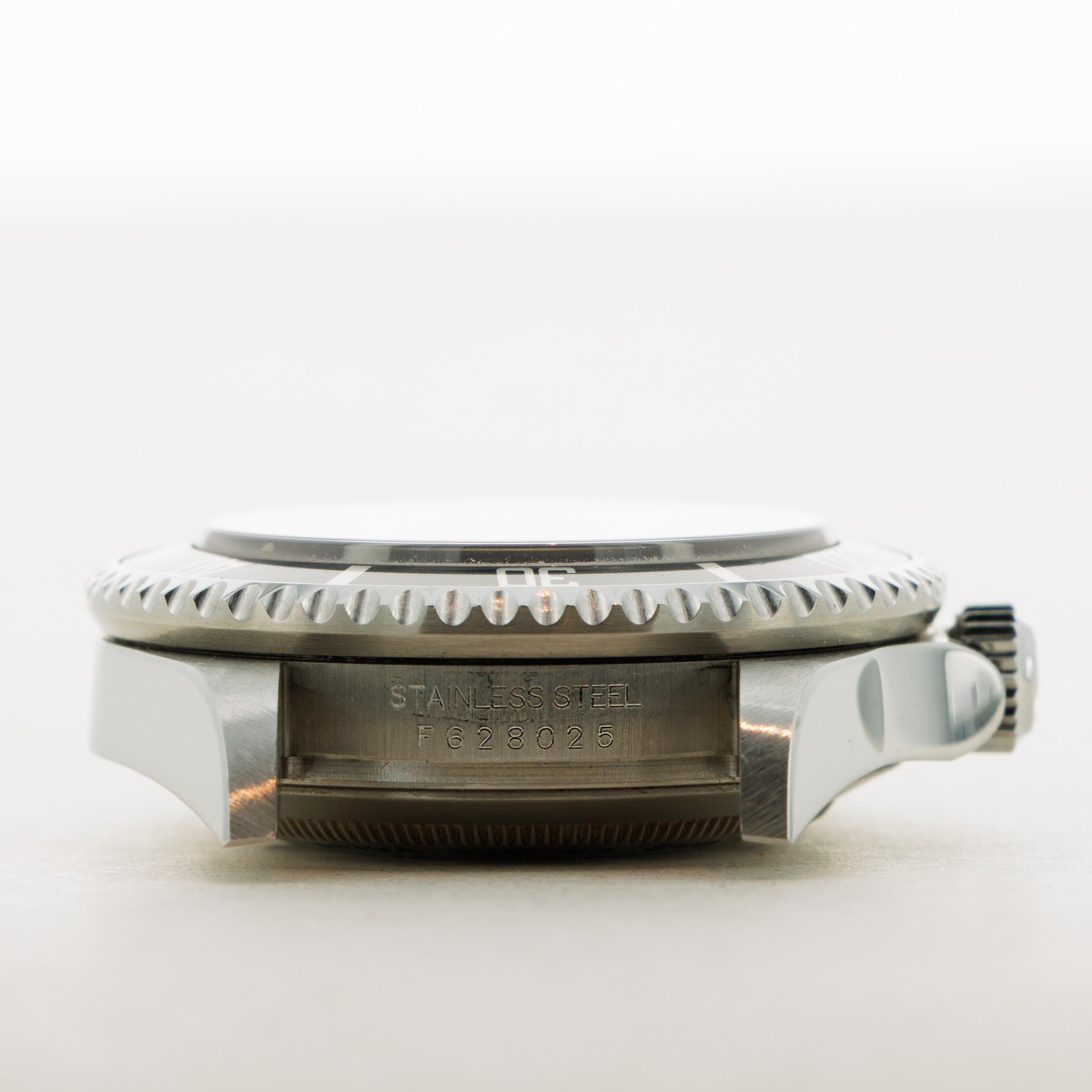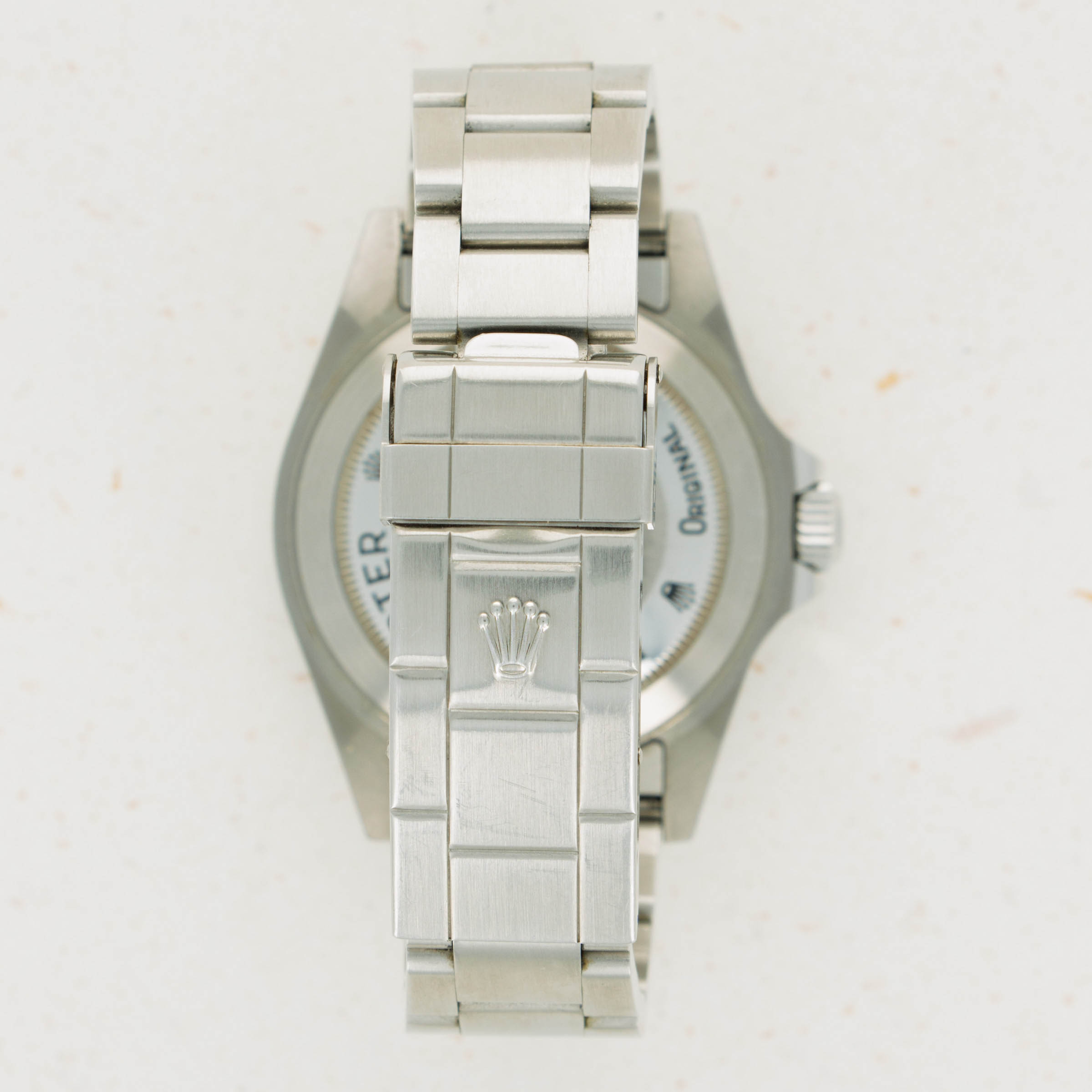 Watch is in near-mint overall condition. There is very minimal surface wear on the watch, and it appears very lightly used only. The caseback still retains all the original black enameling and the factory finish in the center of the caseback. The bracelt has 12 links total, 2 of which are removable. There is no stretch.