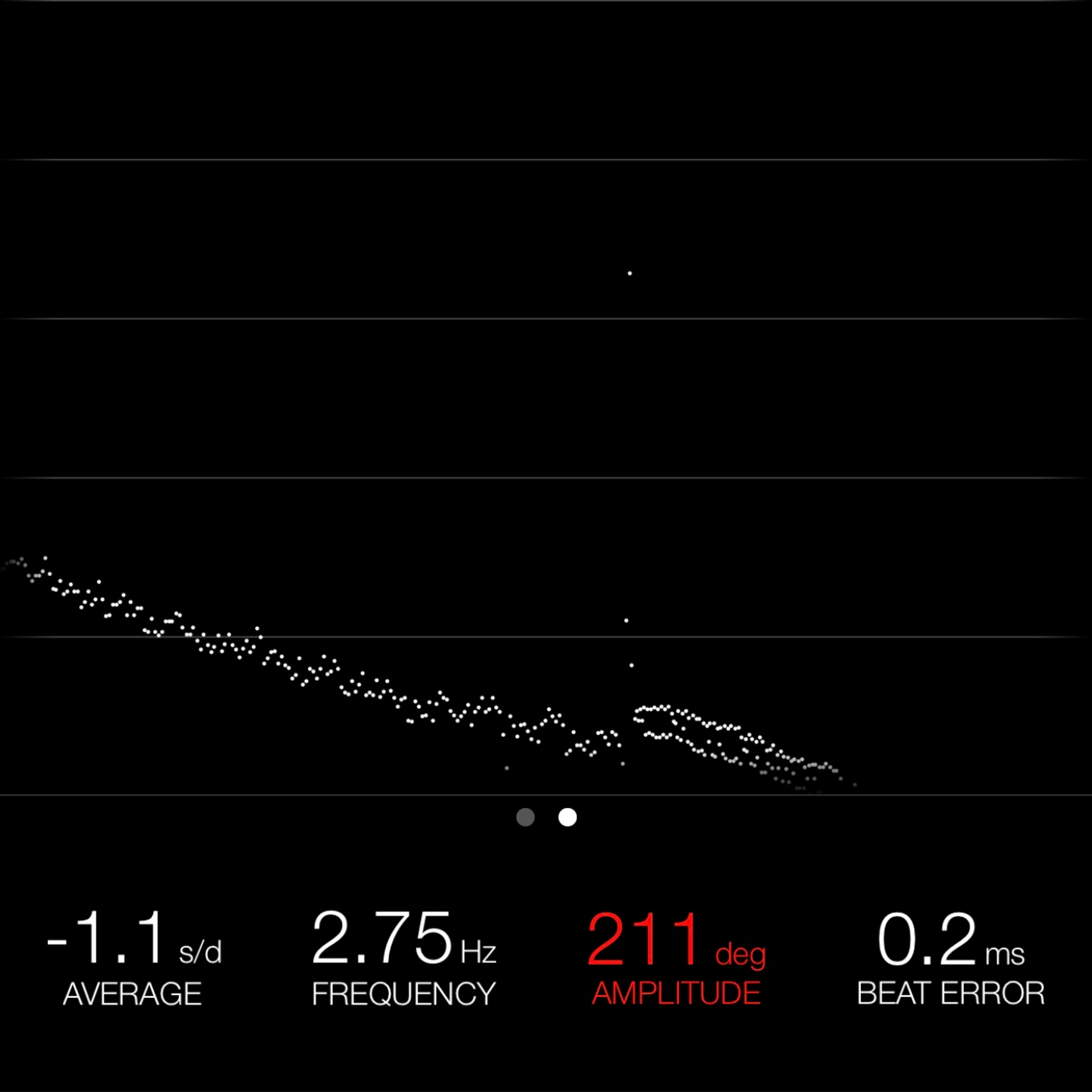 This reading was taken (crown down) with a ONEOF Accuracy Boutique Edition timing machine at time of cataloging. It is provided as a courtesy only, and shall not be construed as a warranty or guarantee of any kind. Please refer to our terms and conditions of sale for more information.