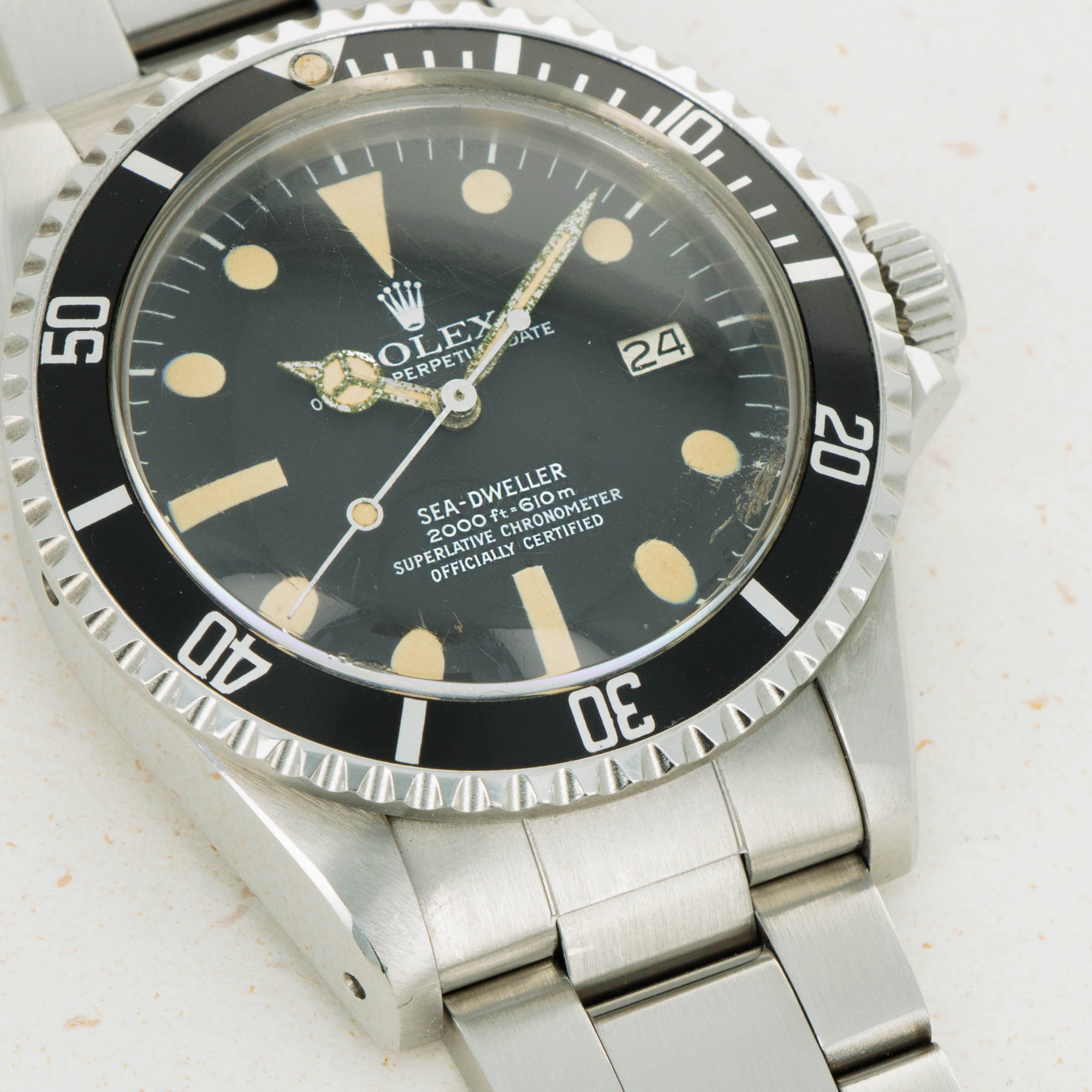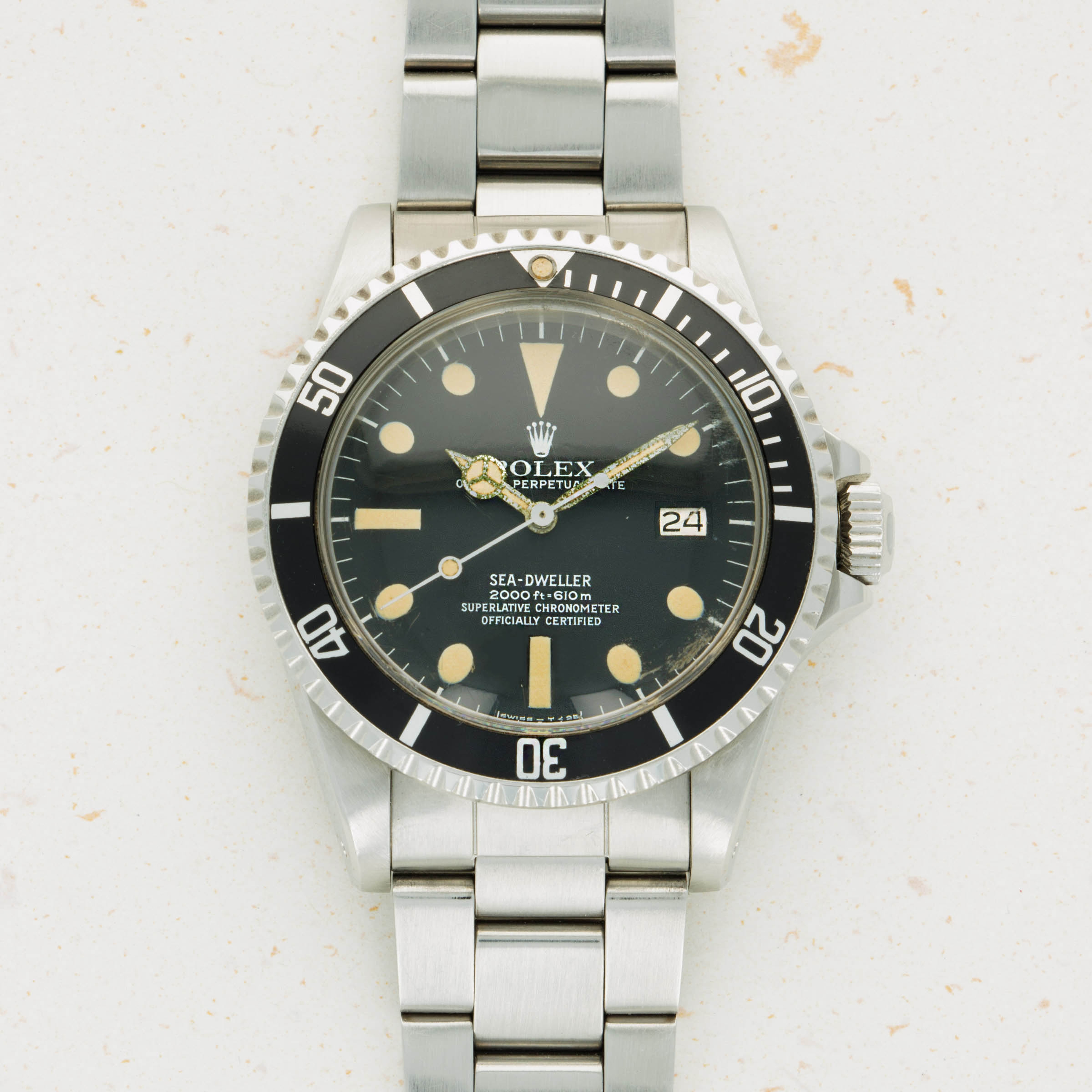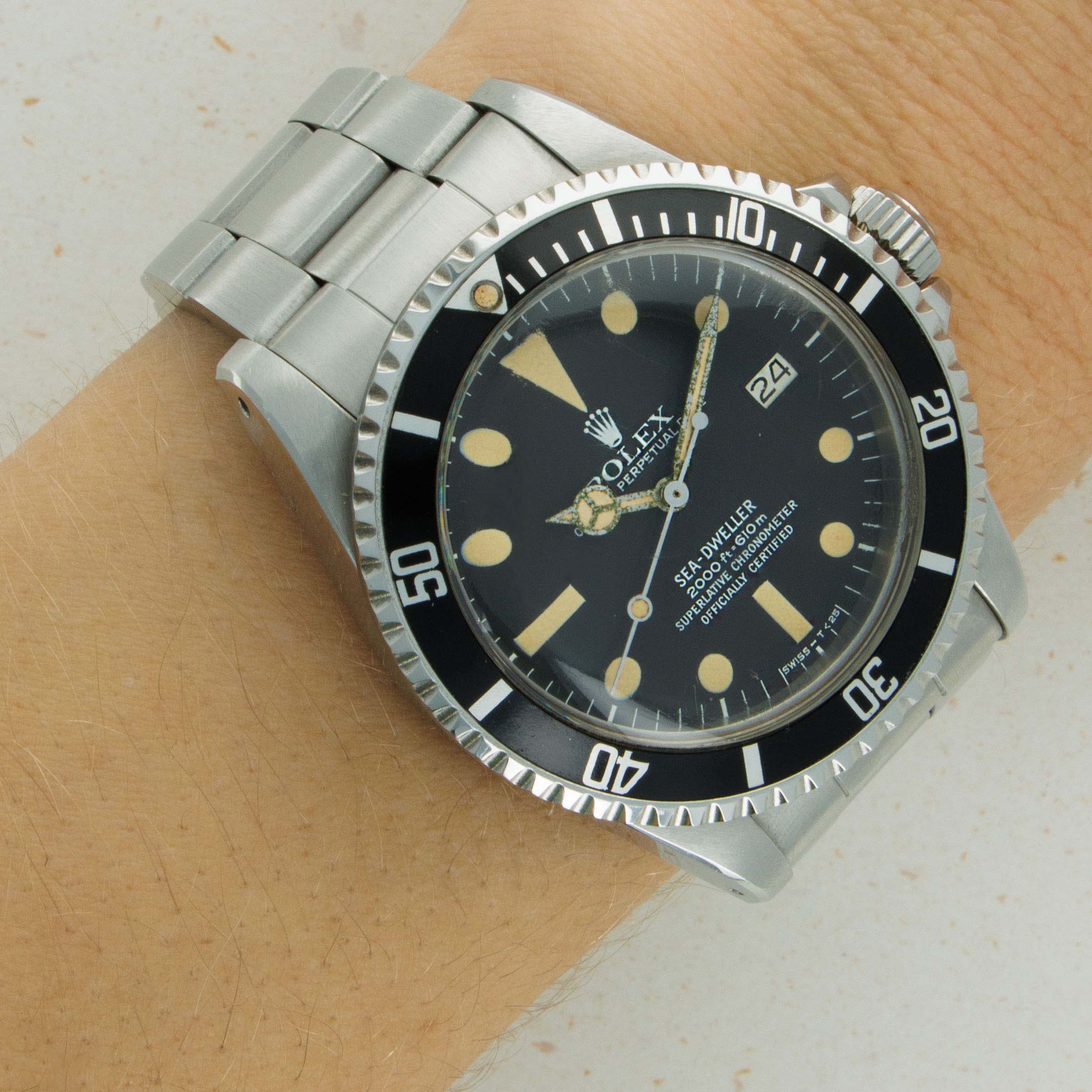 Nicknamed "Great White" due to the all-white text of the dial, the present example belongs to the production of Sea-Dweller that replaced the ref. 1665 dials that featured red text. This is one of the nicest examples we've seen, and comes with its original papers and sales invoice.