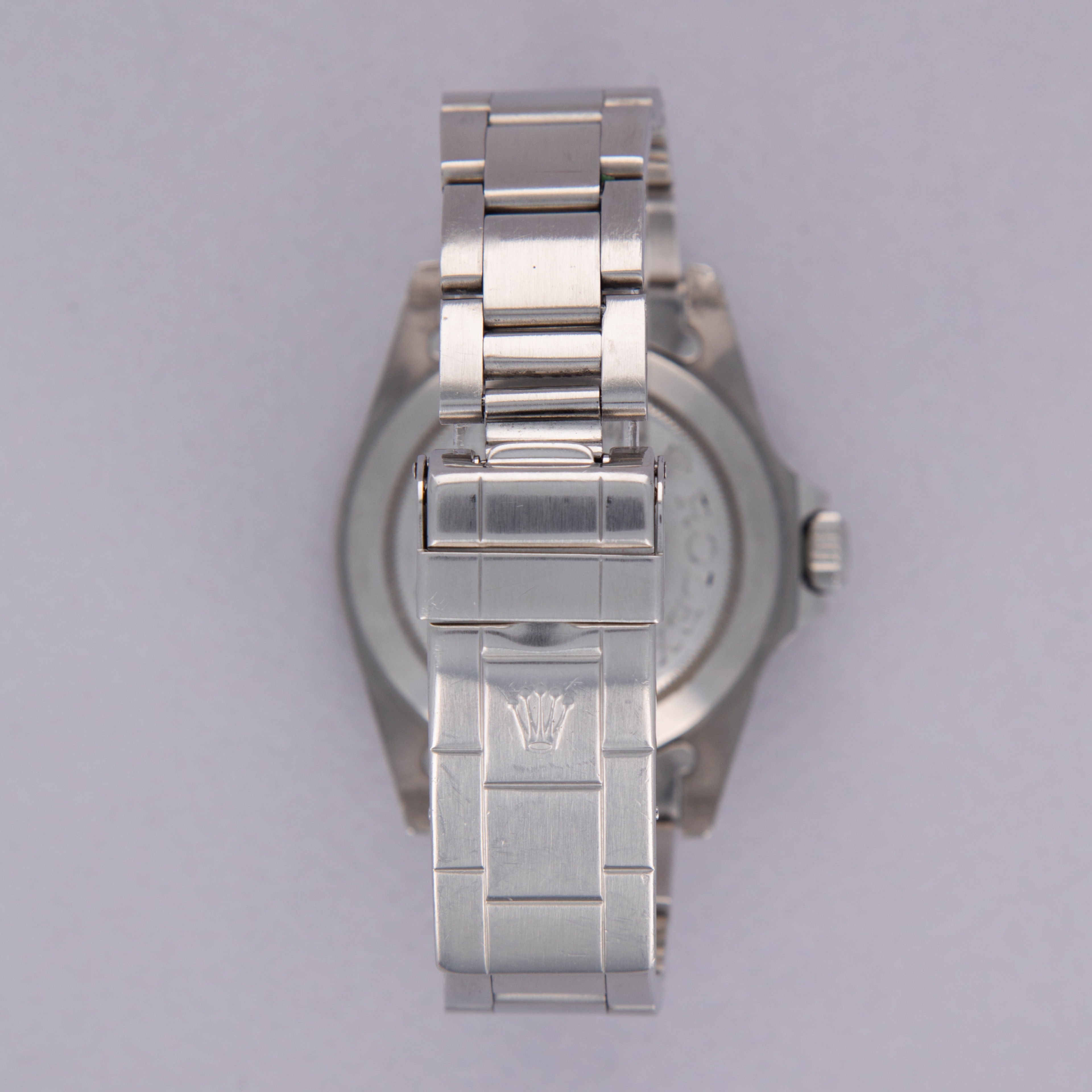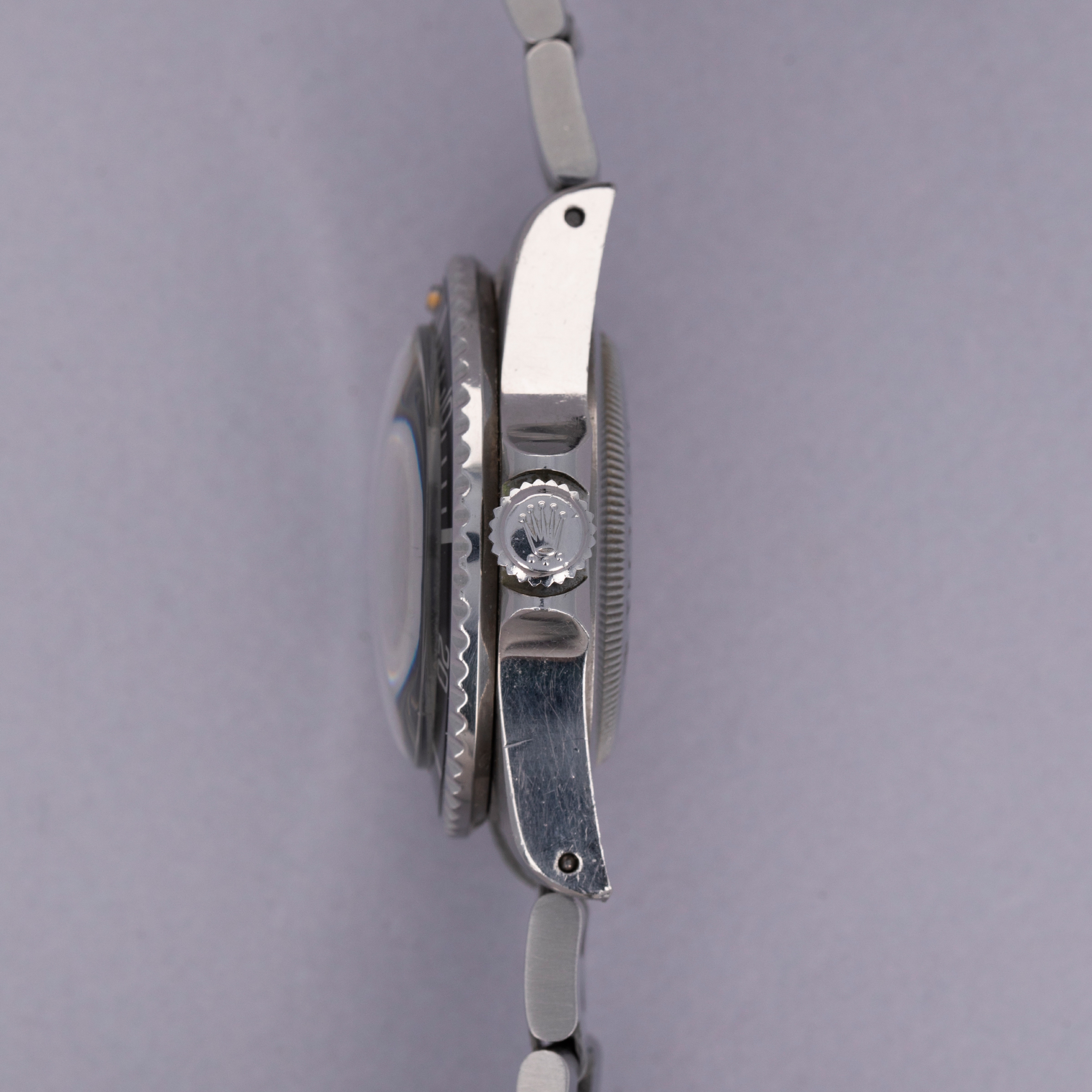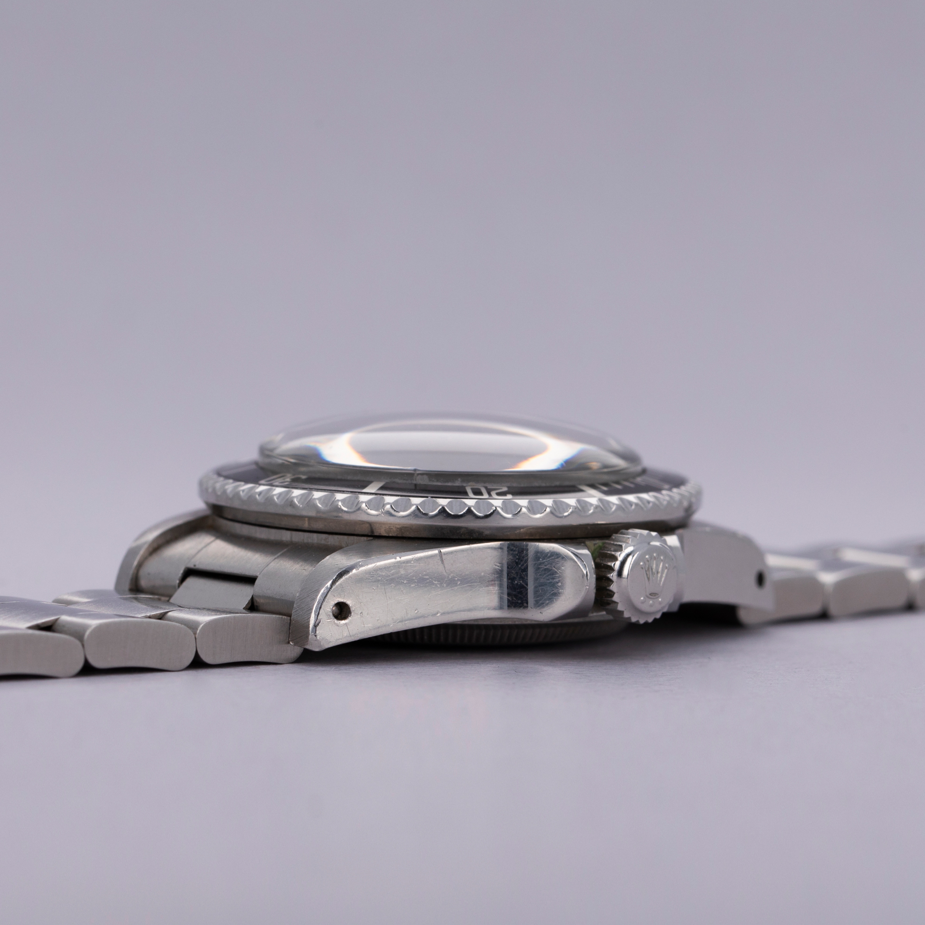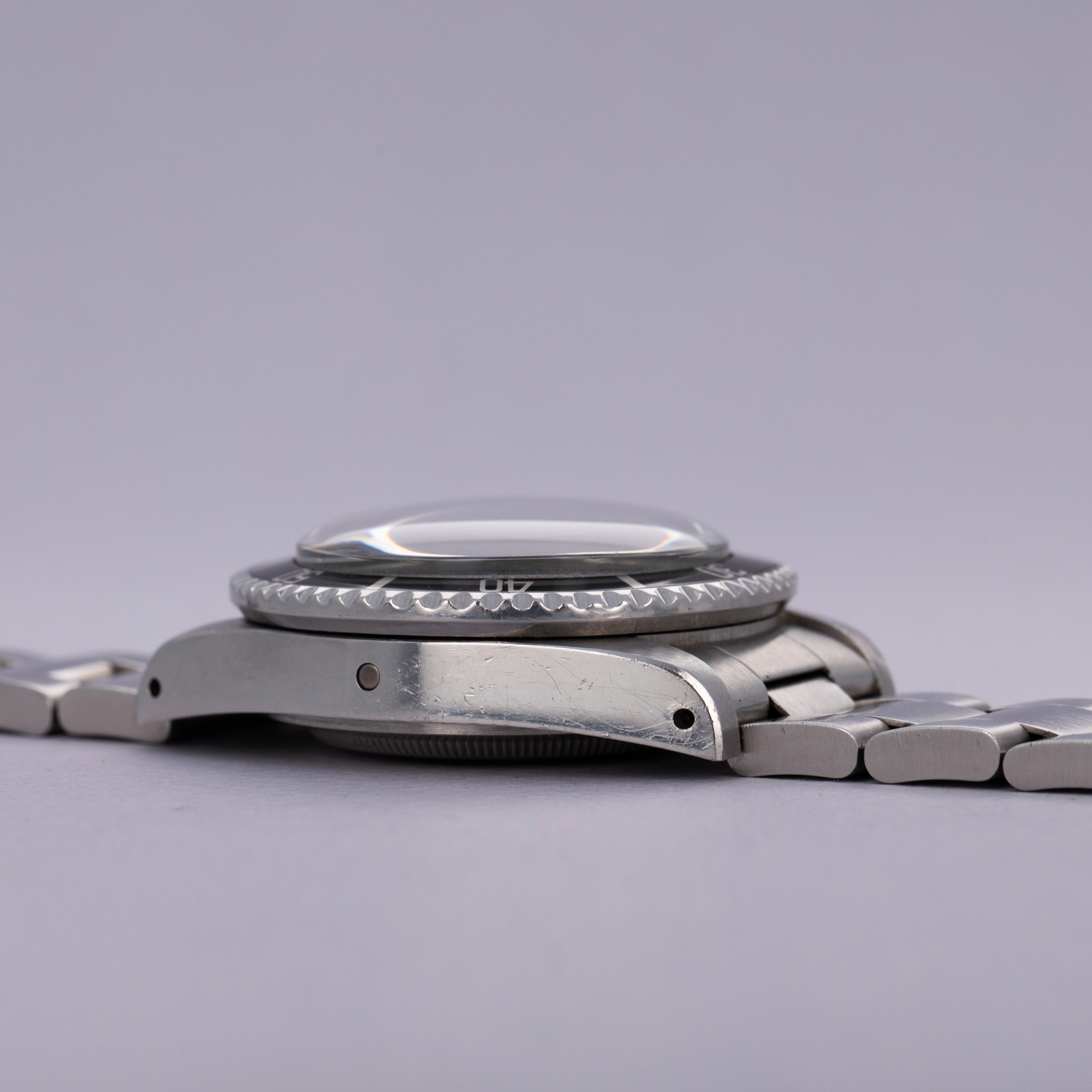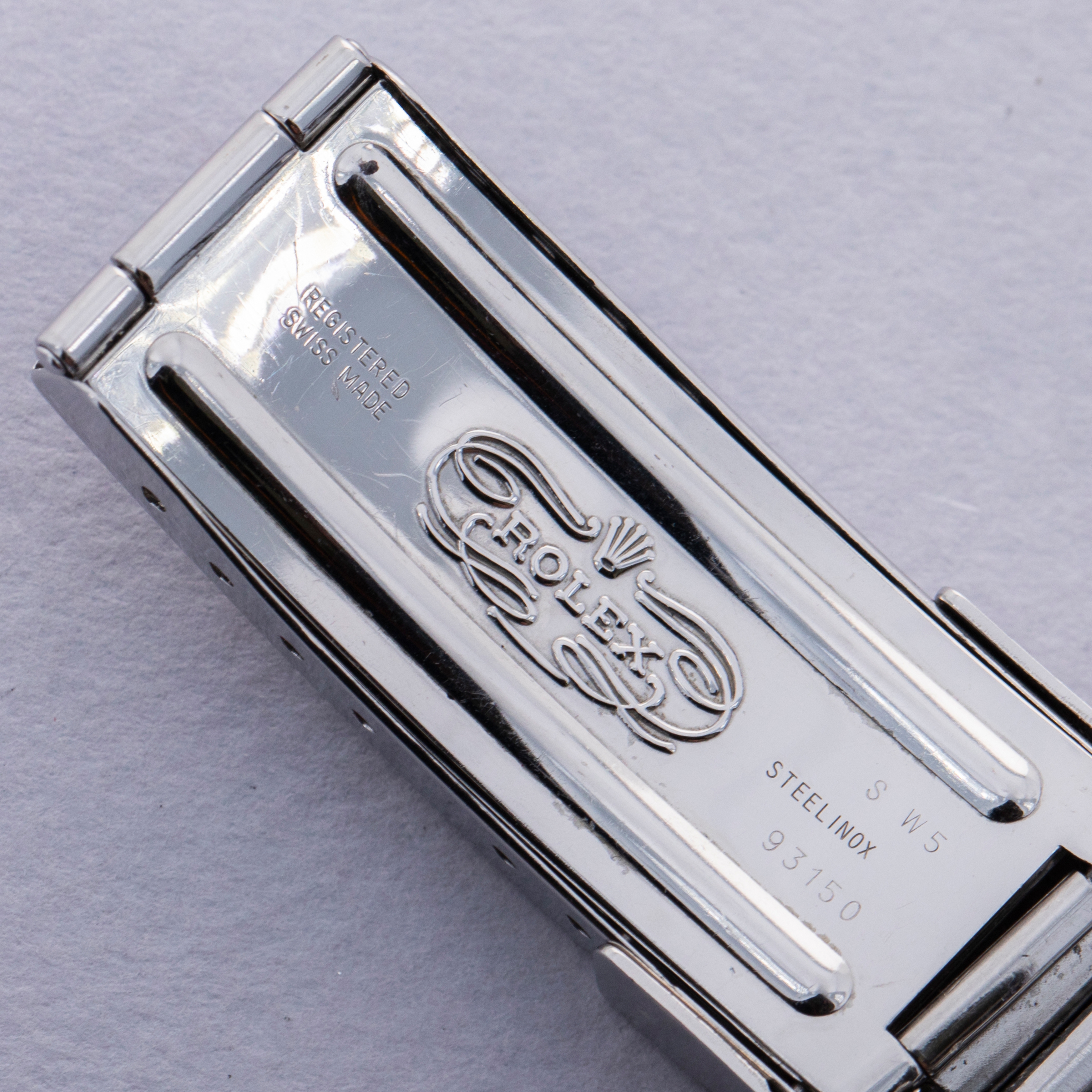 Watch is in excellent overall conditinon. Case exhibits some minor surface wear, with some scratches and marks visible. Wear and small scratches visible near the lug-holes due to bracelet removal. The lugs retain a crisp chamfered edge as seen in the images. Bezel teeth have minor wear, and the insert shows little visible damage. Original tritium pearl matches the luminous hands and indexes. The dial is in excellent condition with little wear. The original luminous dots have aged to a strong dark yellow/orange color. There are some minor marks visible on some of the indexes. Watch comes on a 91350 oyster bracelet with 11 linsk total. It shows minor stretch and fits an approx 7" wrist.