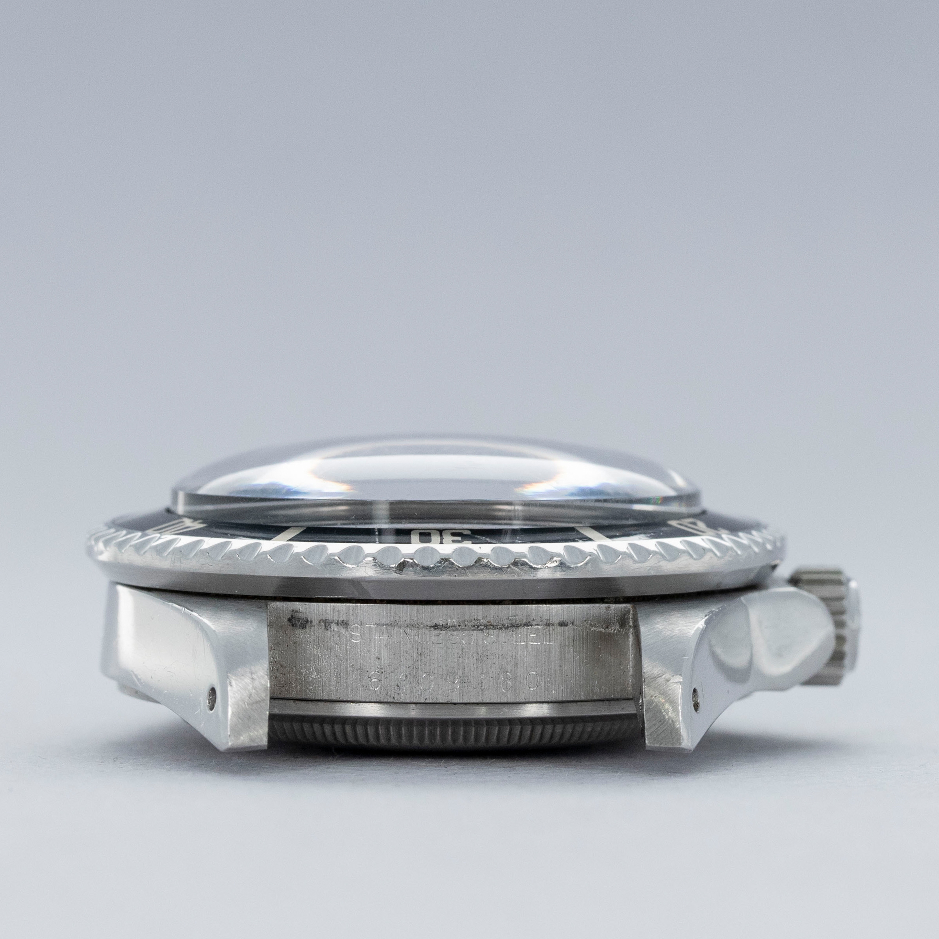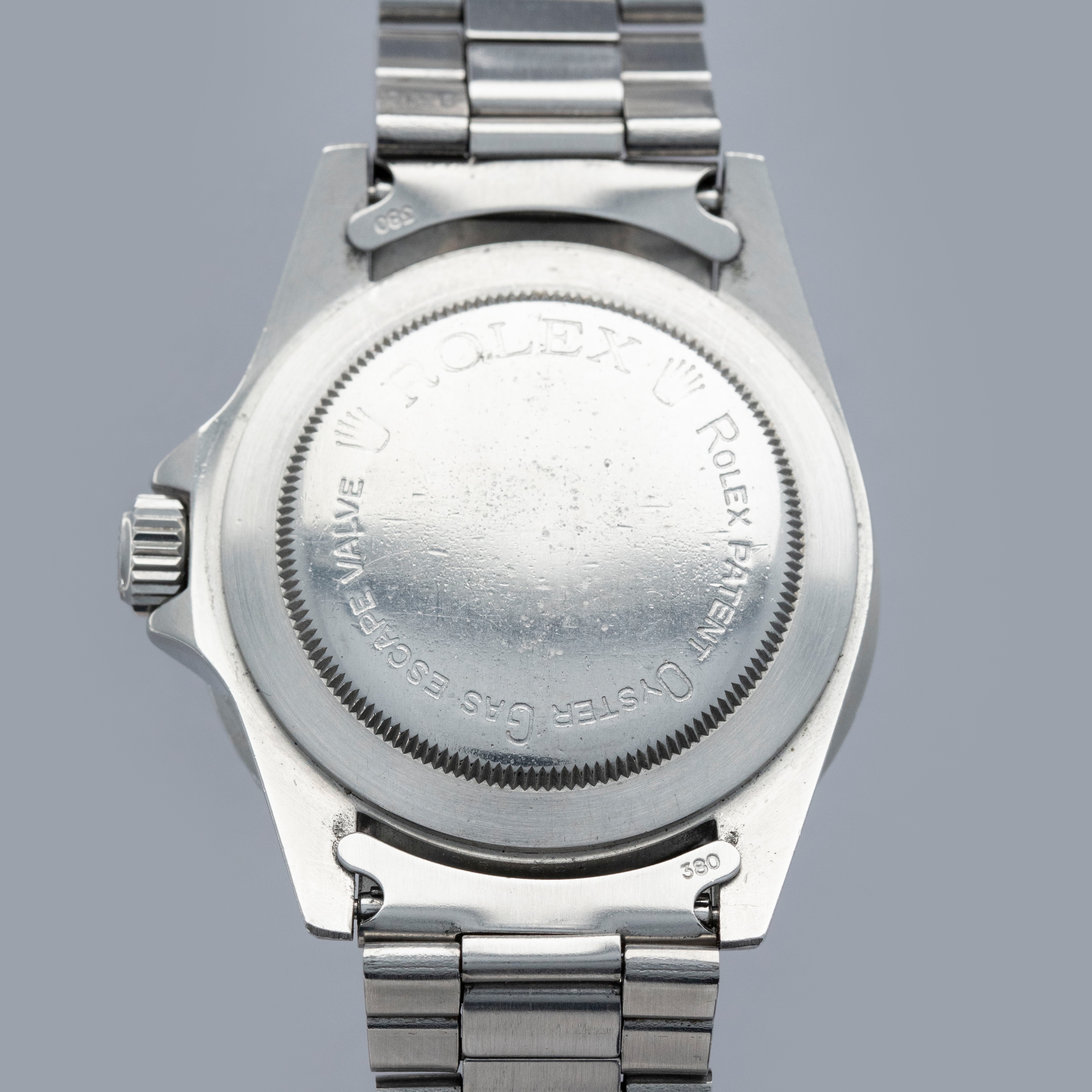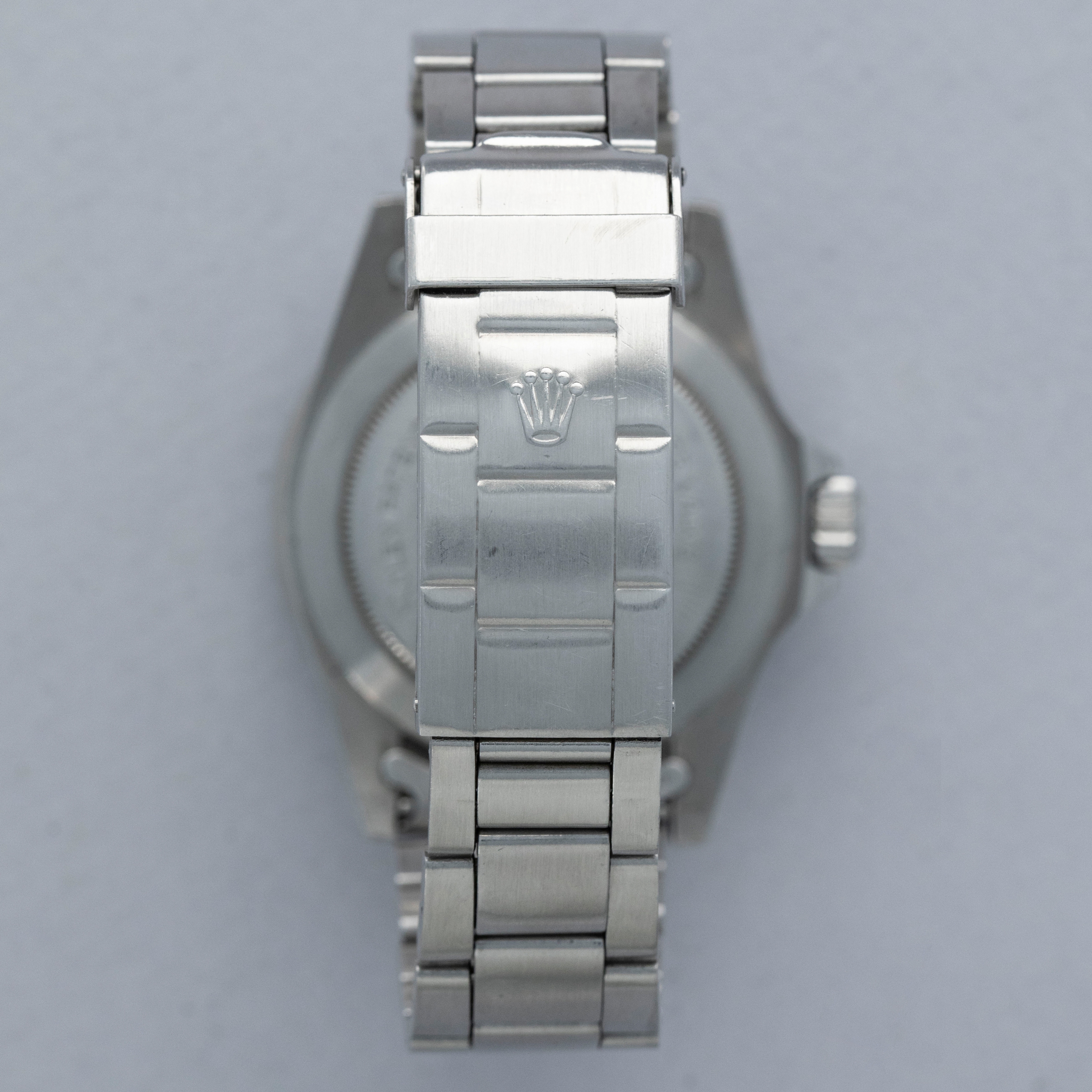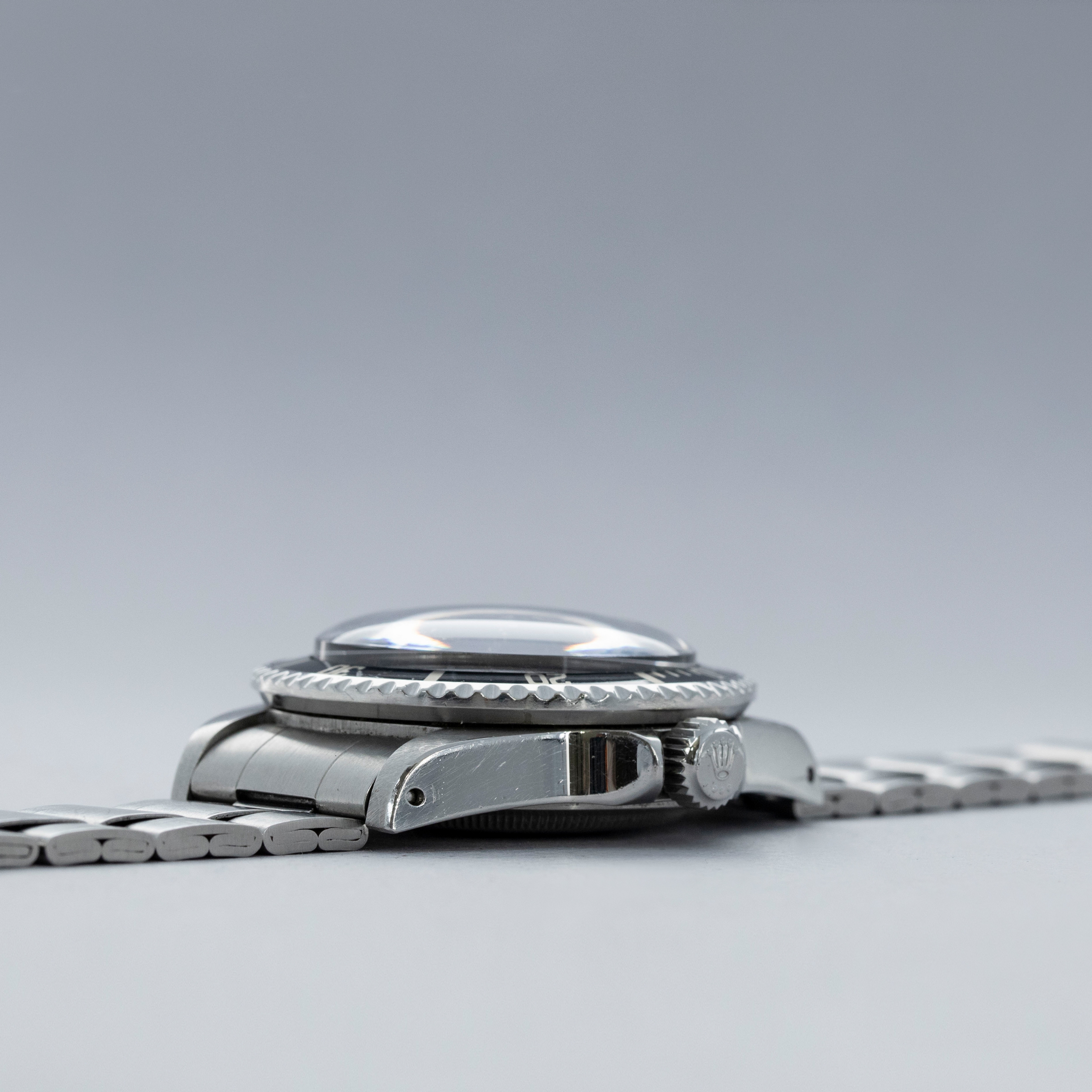 The watch is in overall excellent condition. The steel case is well defined with crisp chamfers shows some scratches and light marks as expected of a watch of this vintage. The case back has some scratches and marks. The bezel is excellent, with some light marks and scratches on the insert. The dial is excellent, with crisp text and minute markers, and the lume is very clean. The hands have lume that is of a similar tone. The folded link Oyster bracelet is in excellent condition with light play between the links. The bracelet currently fits a 7" wrist and has 10 links.