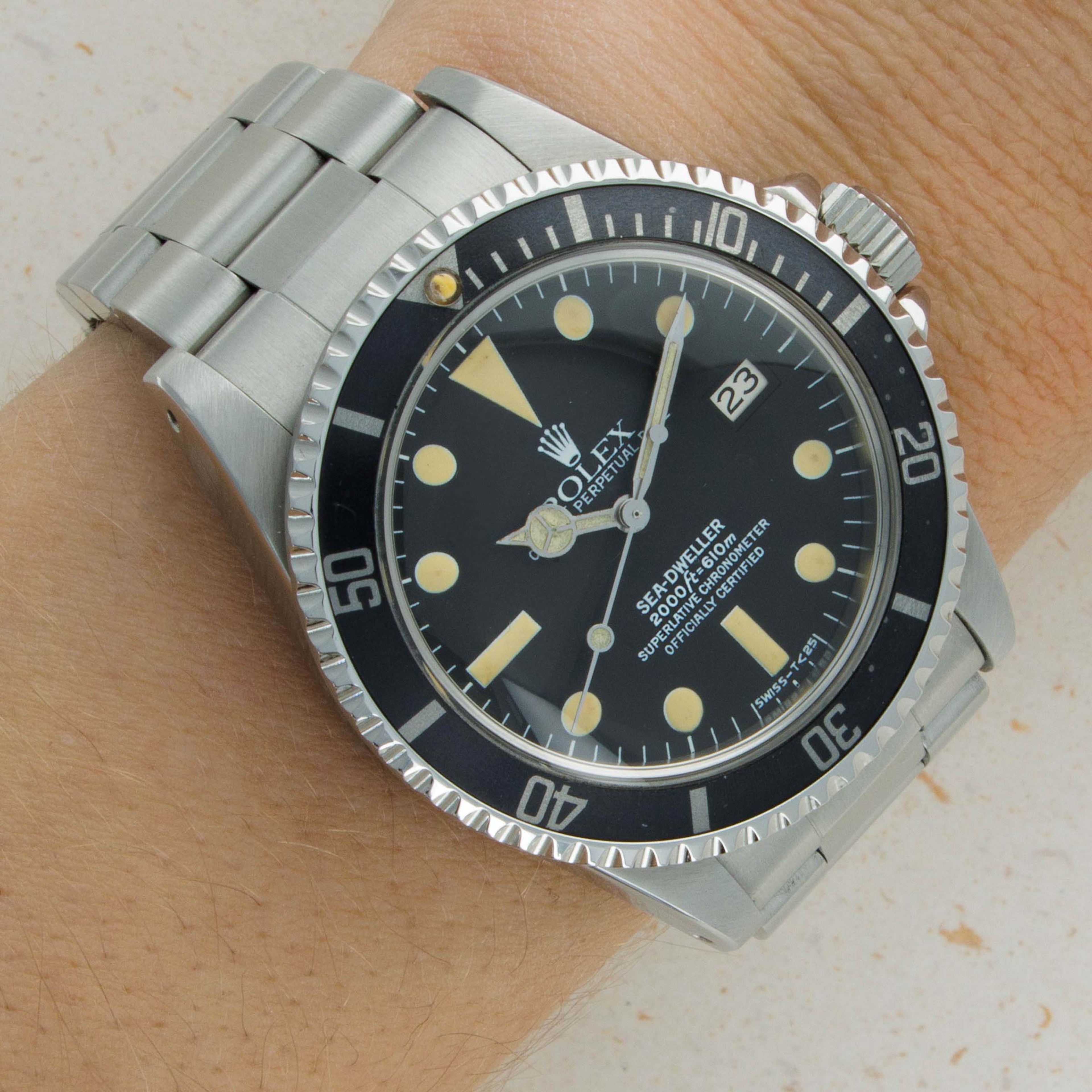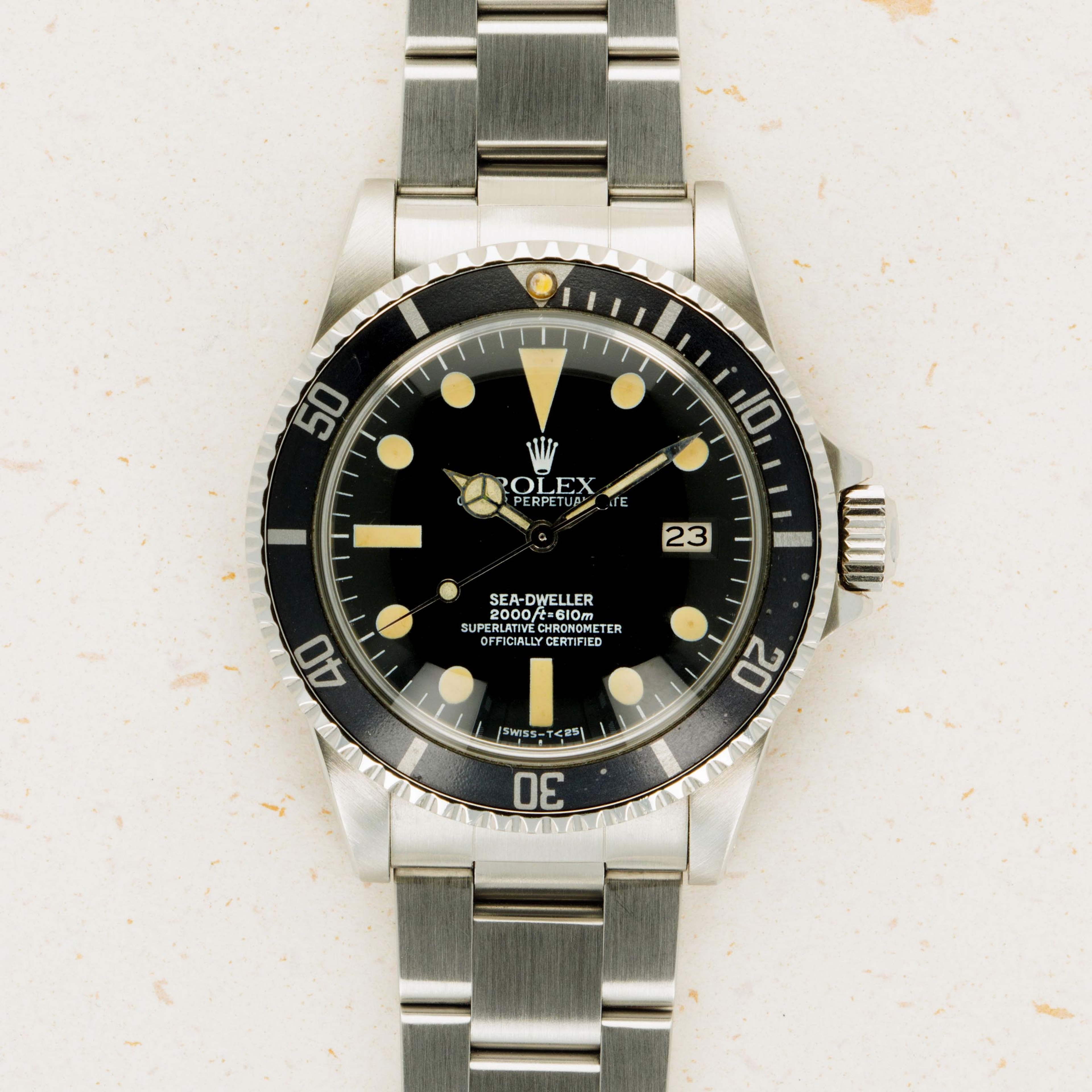 Debuting in 1967, with the specific aim of bolstering Rolex's dive watch offering, the Rolex Sea-Dweller built upon the industry-leading dive watch credentials that the Submariner had earned Rolex over the previous 14 years. Created specifically with professional divers in mind, Rolex collaborated with diving companies like COMEX to perfect the Sea-Dweller's design and ensure it would be the ultimate dive watch. Featuring the ingenious Helium-Escape Valve that Rolex had patented the same year, a hugely impressive water resistance, and a sizeable case design, the Sea-Dweller rightfully toppled the Submariner as Rolex's most hardcore dive watch. Today offered in a few separate styles such as two-tone, with various dials, and in two different case sizes (43mm and 44mm), the Sea-Dweller has taken a leaf from the rest of Rolex's offerings and merged its tool-watch focused design with tasteful aesthetics, to create one of the most sought-after and best-equipped dive watches that any diver might ever need.