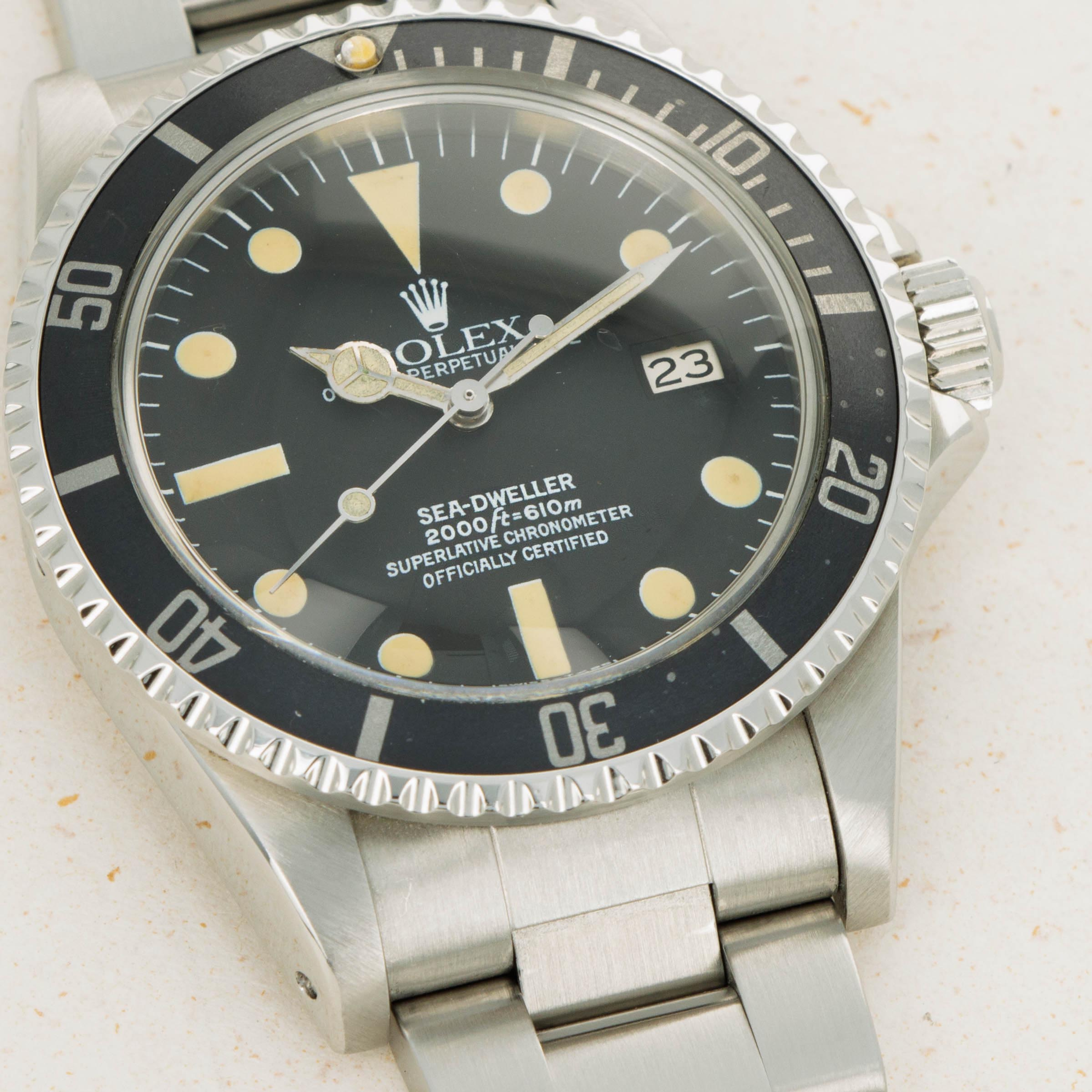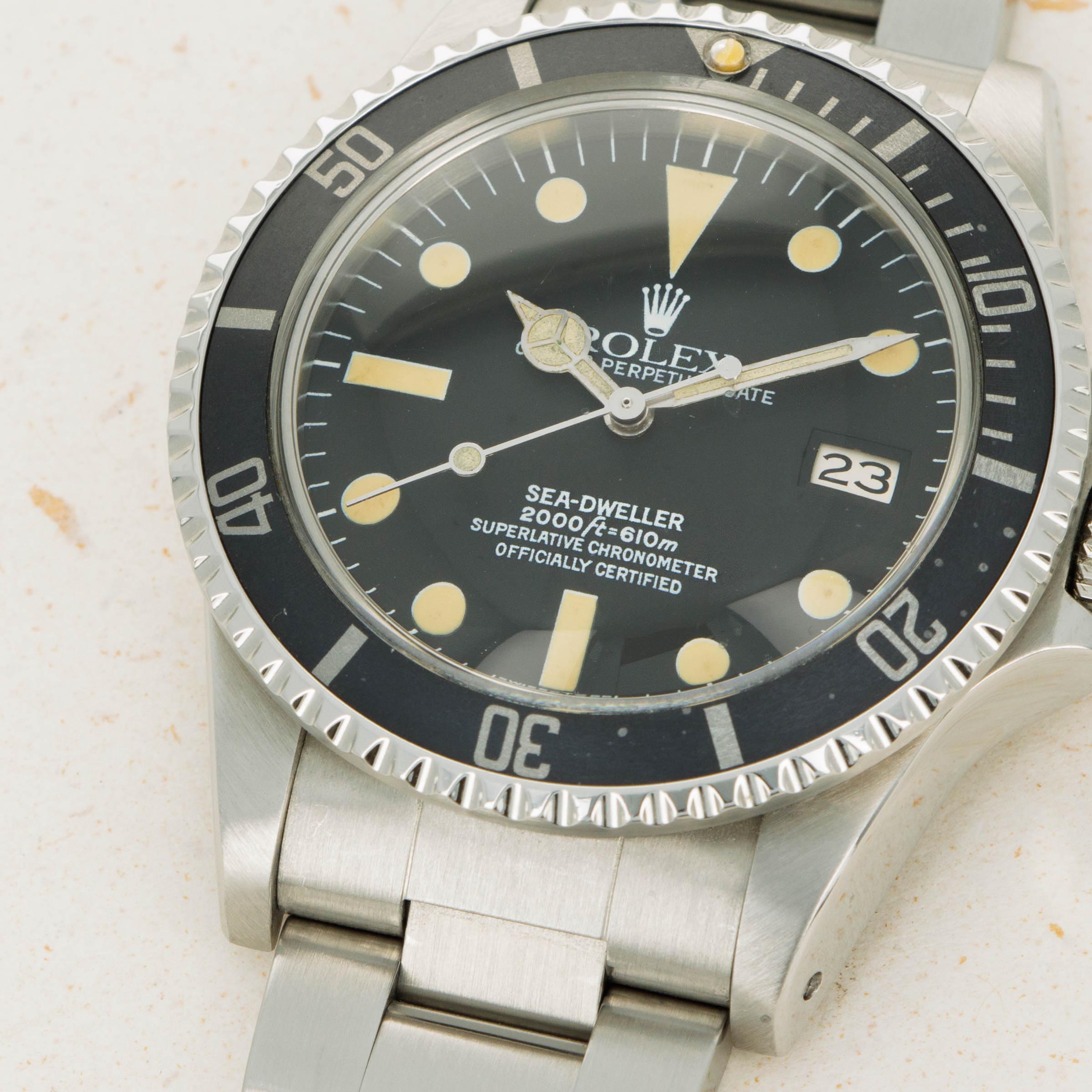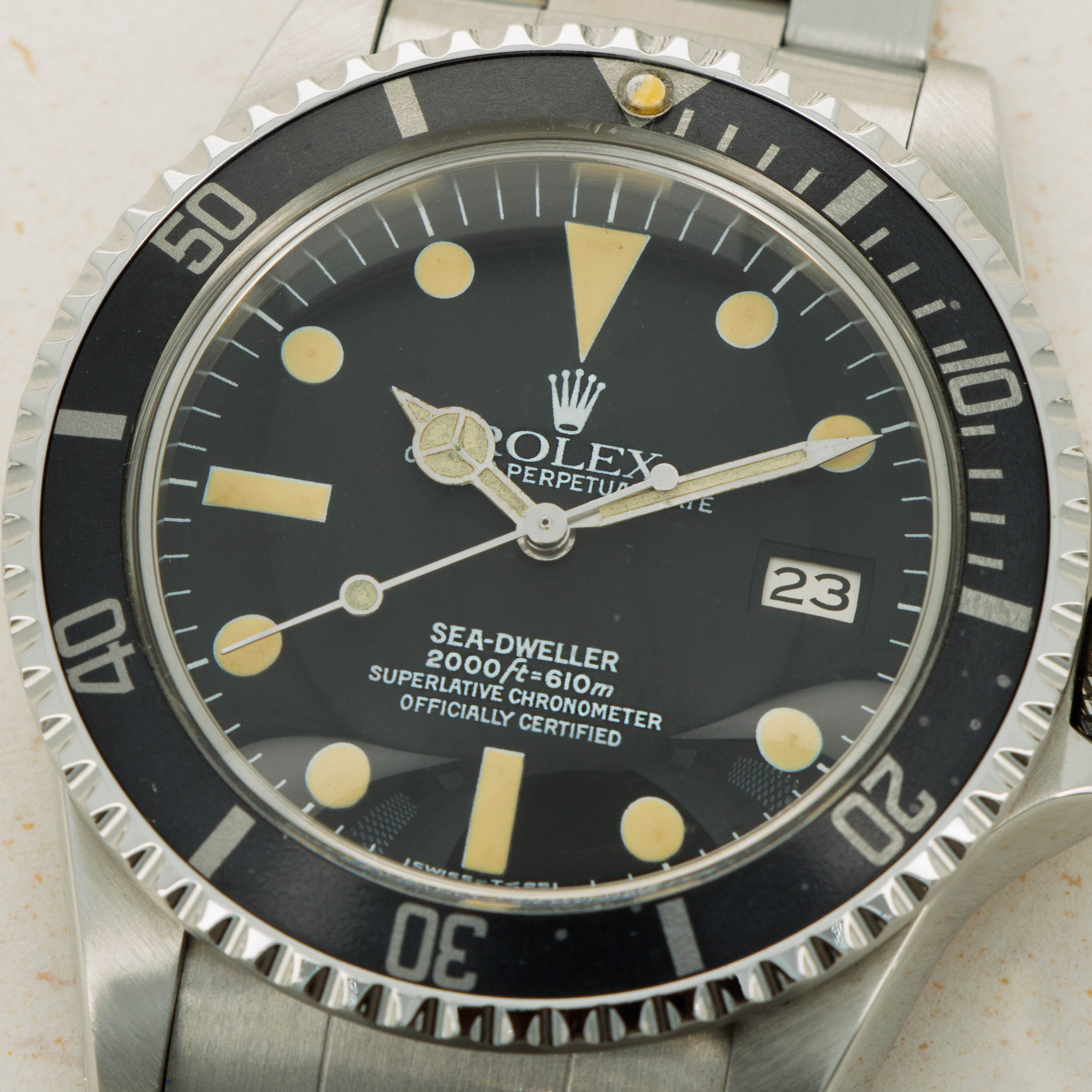 Nicknamed "Great White" due to the all-white text of the dial, the present example belongs to the production of Sea-Dweller that replaced the ref. 1665 dials that featured red text. The "Great White" Sea-Dweller was first introduced in 1977 and was in production until approximately 1983, meaning this example was one of the last to be produced.
