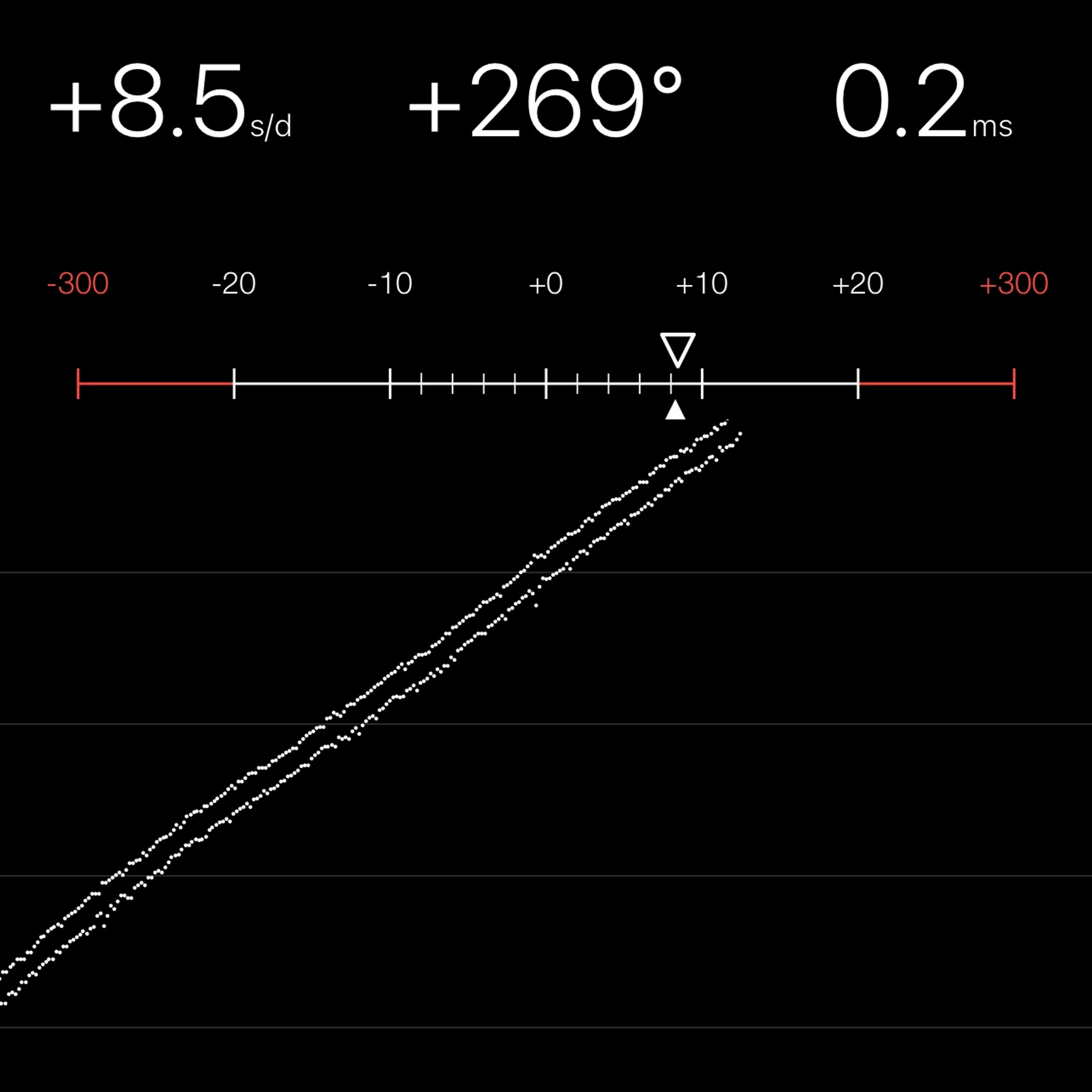 This reading was taken (crown down) with a ONEOF Accuracy Boutique Edition timing machine at time of cataloging. It is provided as a courtesy only, and shall not be construed as a warranty or guarantee of any kind. Please refer to our terms and conditions of sale for more information.
