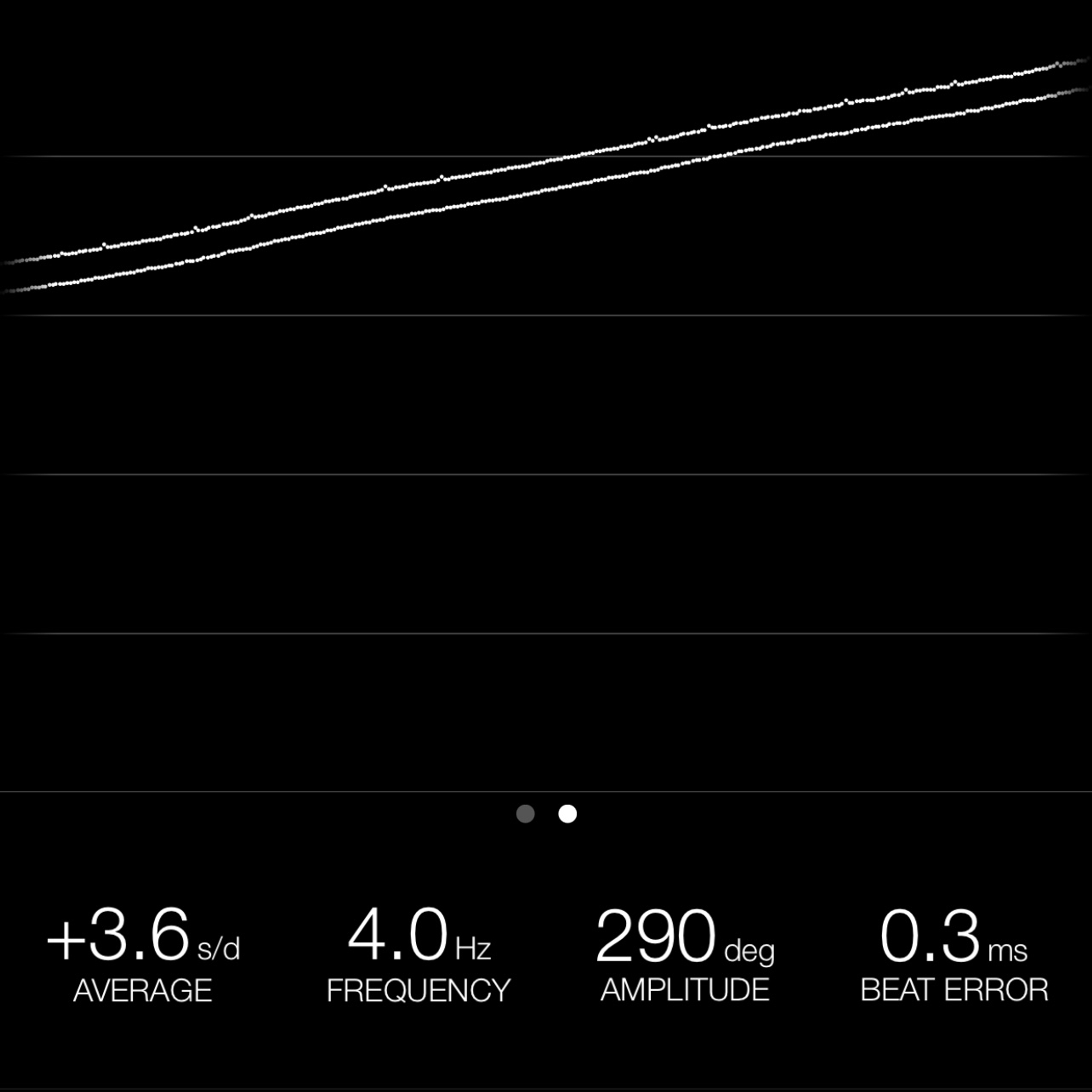 This reading was taken (crown down) with a ONEOF Accuracy Boutique Edition timing machine at time of cataloging. It is provided as a courtesy only, and shall not be construed as a warranty or guarantee of any kind. Please refer to our terms and conditions of sale for more information.