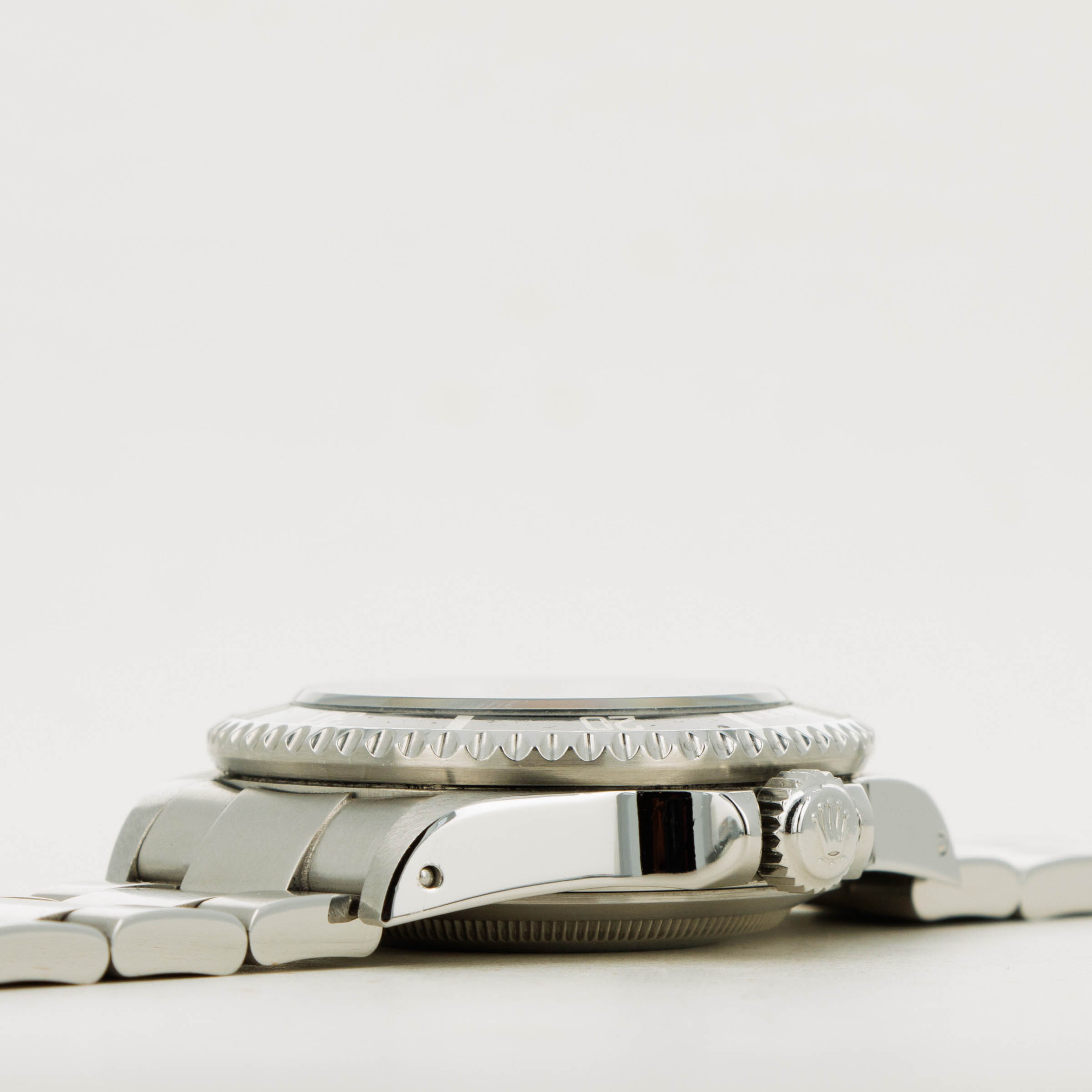 While now ubiquitous amongst every Rolex model, the ref. 16660 introduced the sapphire crystal to the Sea-Dweller collection. Without a cyclops lens at 3 o'clock, this sapphire crystal sets itself apart from other Rolex models that feature the lens.