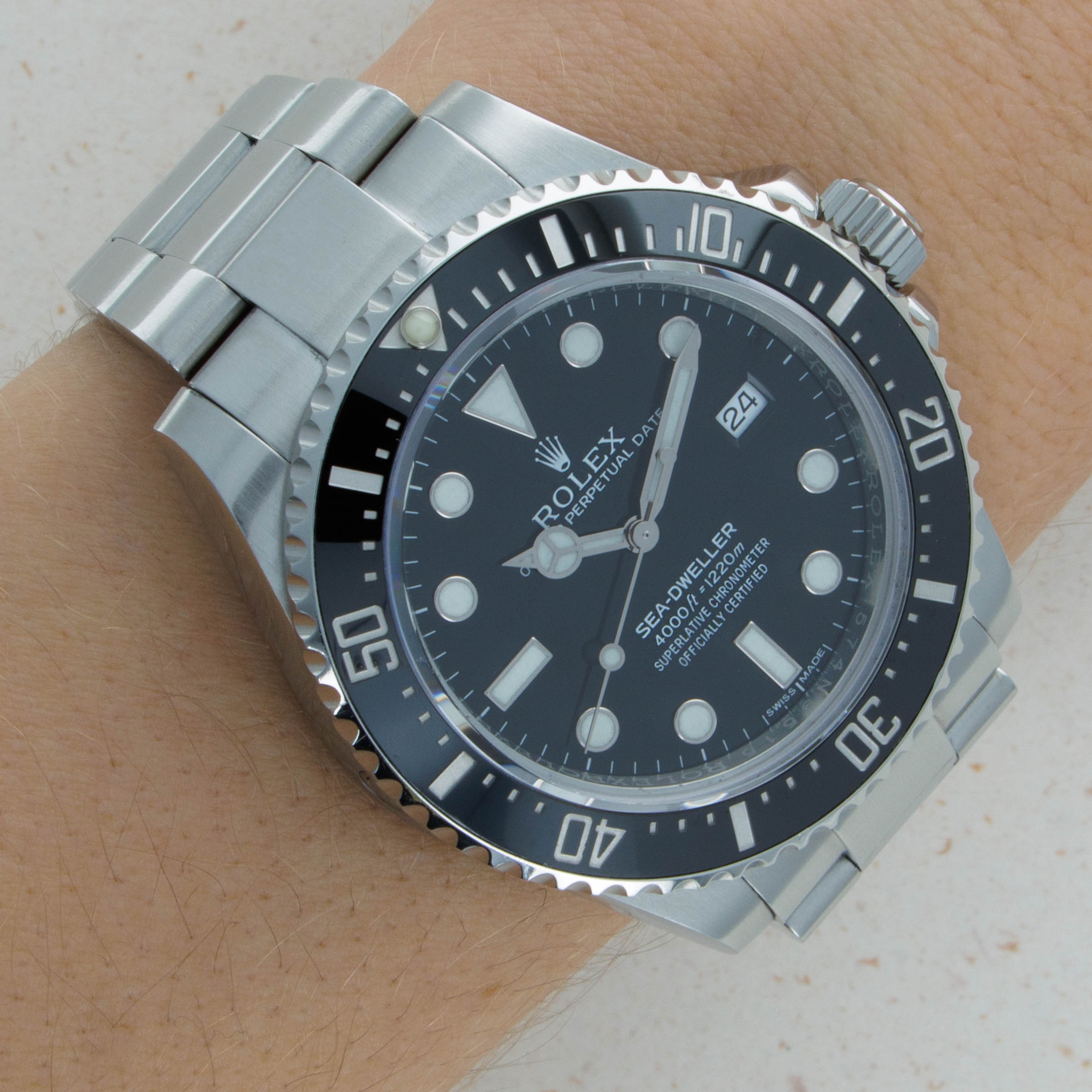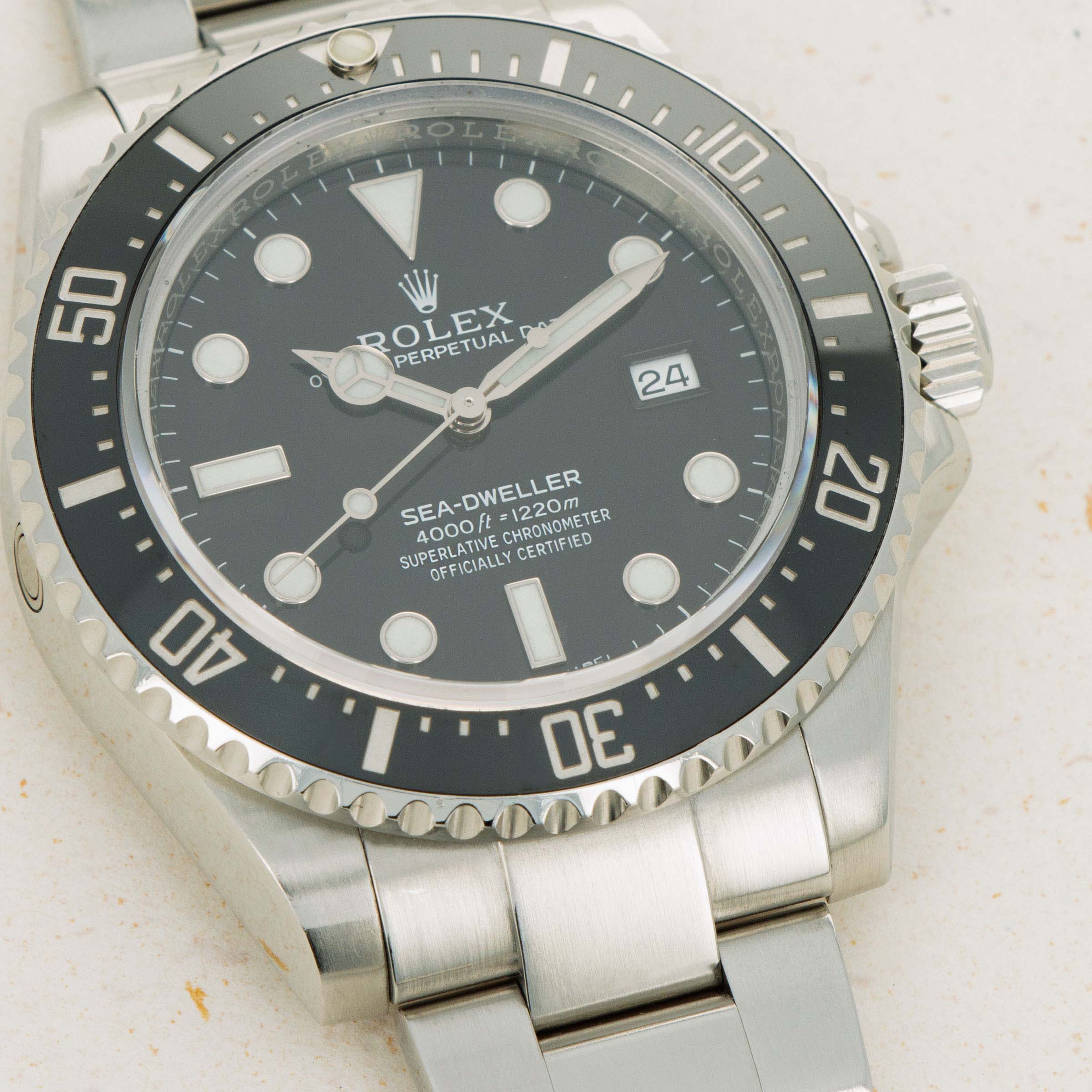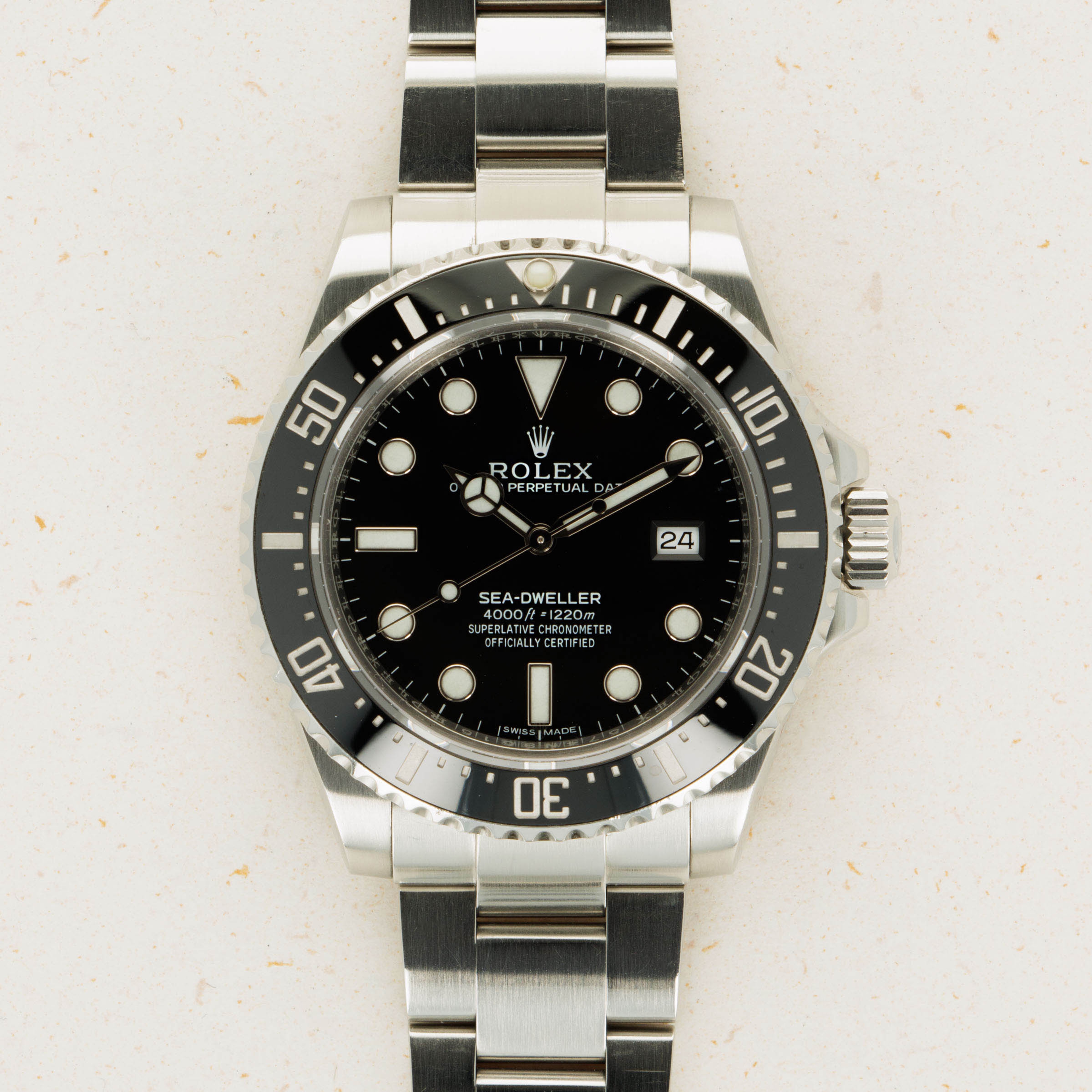 An icon within Rolex's dive watch category, the Sea-Dweller has earned its title as one of Rolex's most robust offerings with its impressive water resisitance and hefty construction.