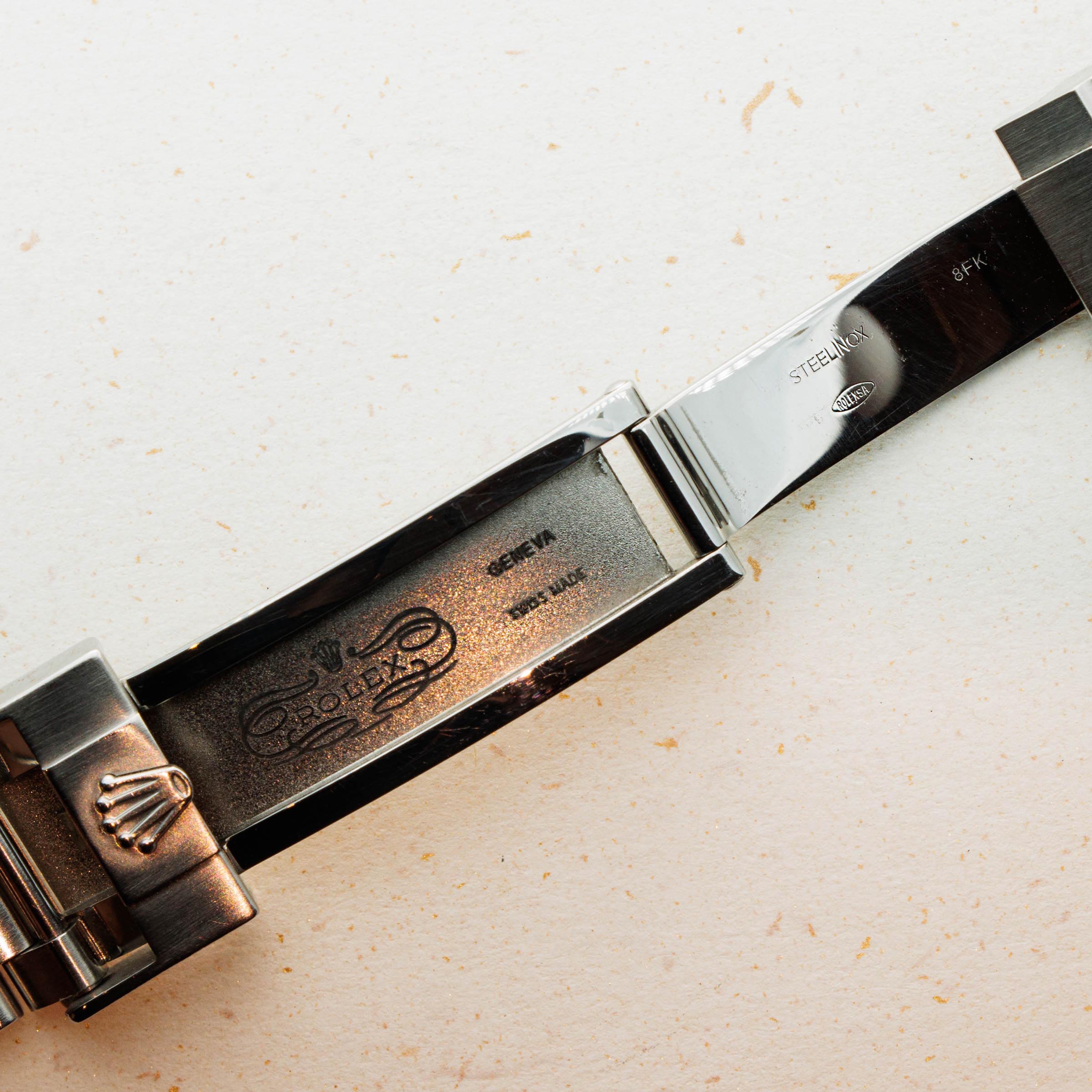 Watch is in excellent overall condition. There are small marks and scratches visible on the case sides and along some of the bracelet. Dial and ceramic bezel insert appear to be near-mint without any marks. Bracelet has12 full, 2 half links - 4 full links removable. 1 extra full link and 1 divers extension on the side.