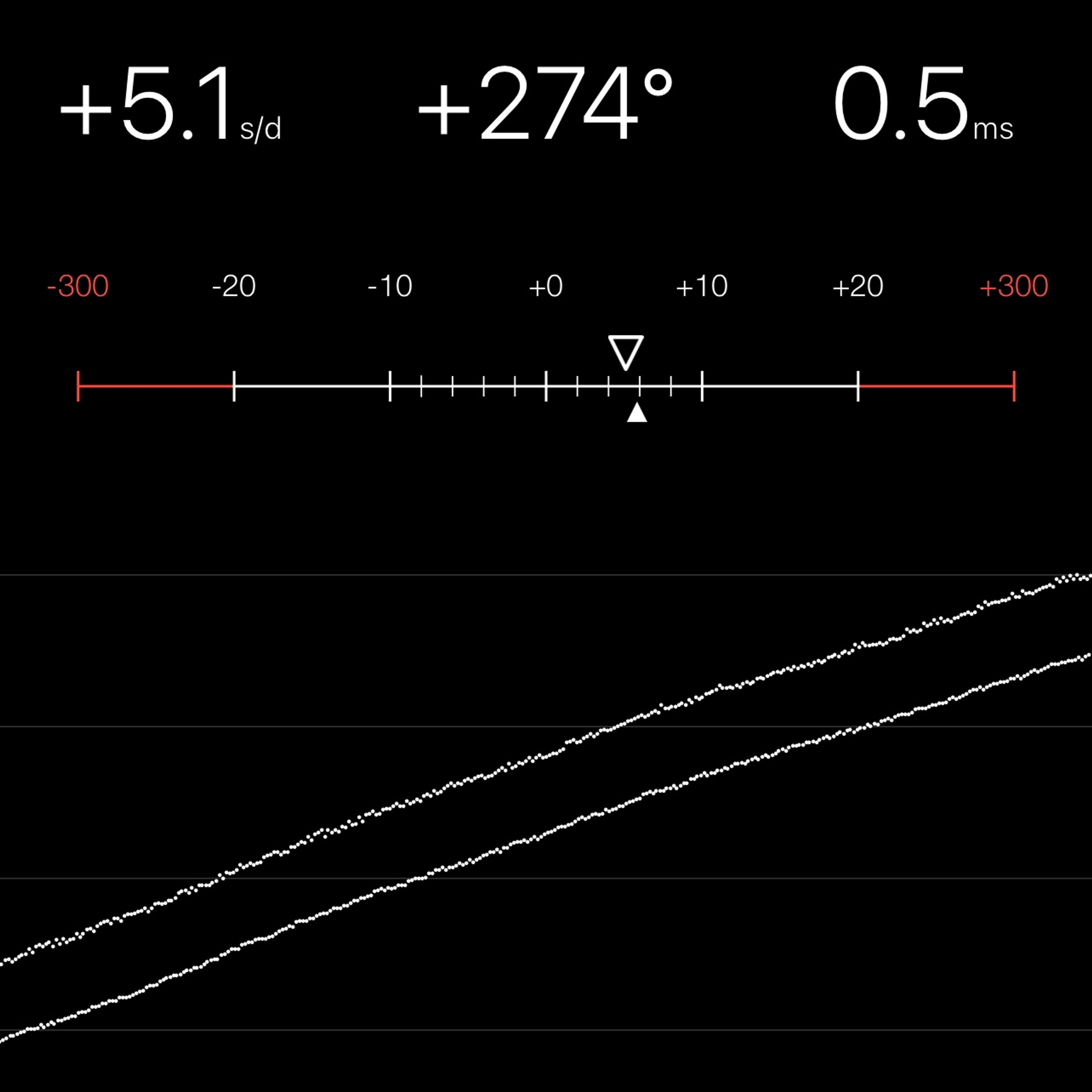 This reading was taken (crown down) with a ONEOF Accuracy Boutique Edition timing machine at time of cataloging. It is provided as a courtesy only, and shall not be construed as a warranty or guarantee of any kind. Please refer to our terms and conditions of sale for more information.