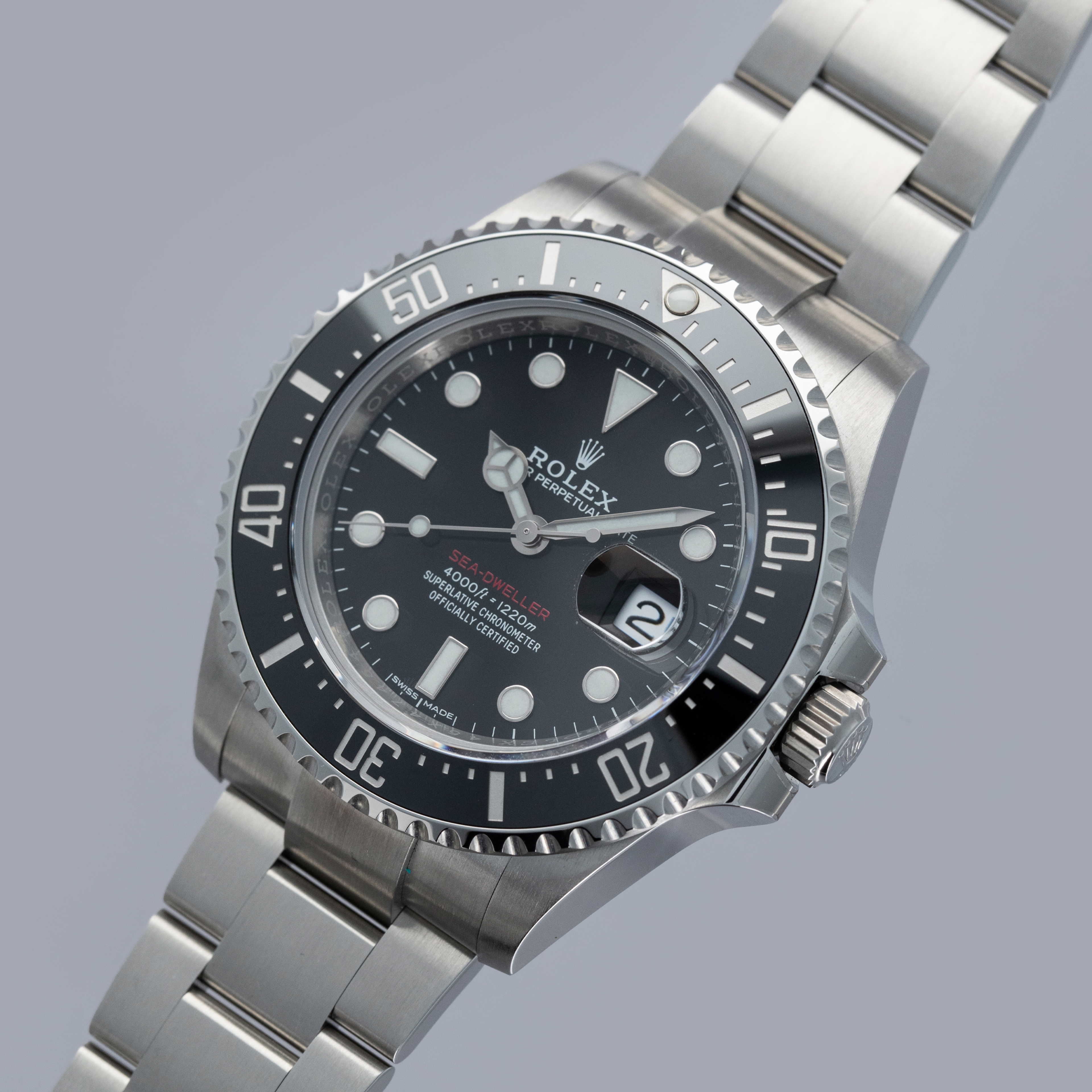 Fitted with a hulking 43mm case, the Sea-Dweller is an imposing beast standing proudly as one of the largest and most robust timepieces Rolex has ever offered.