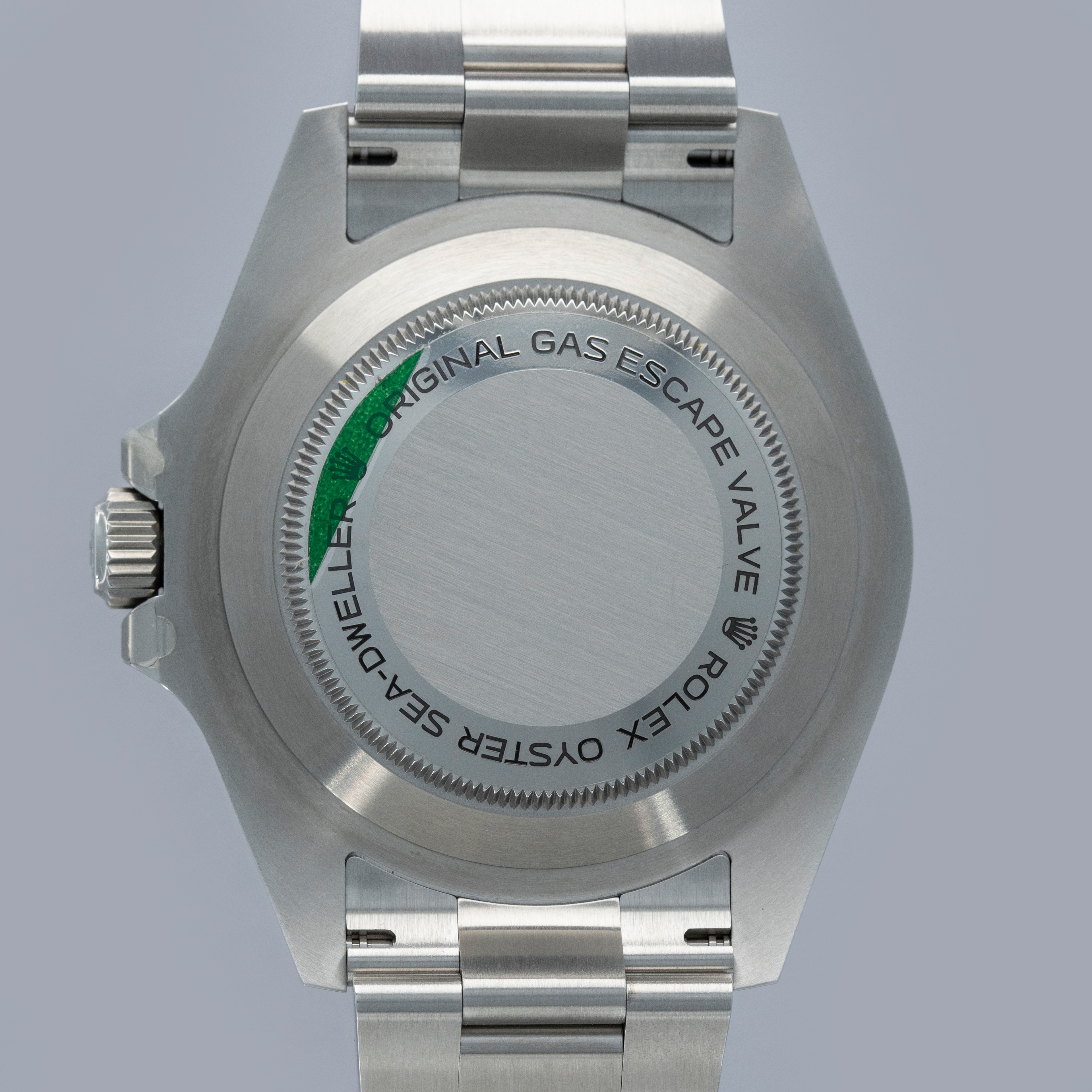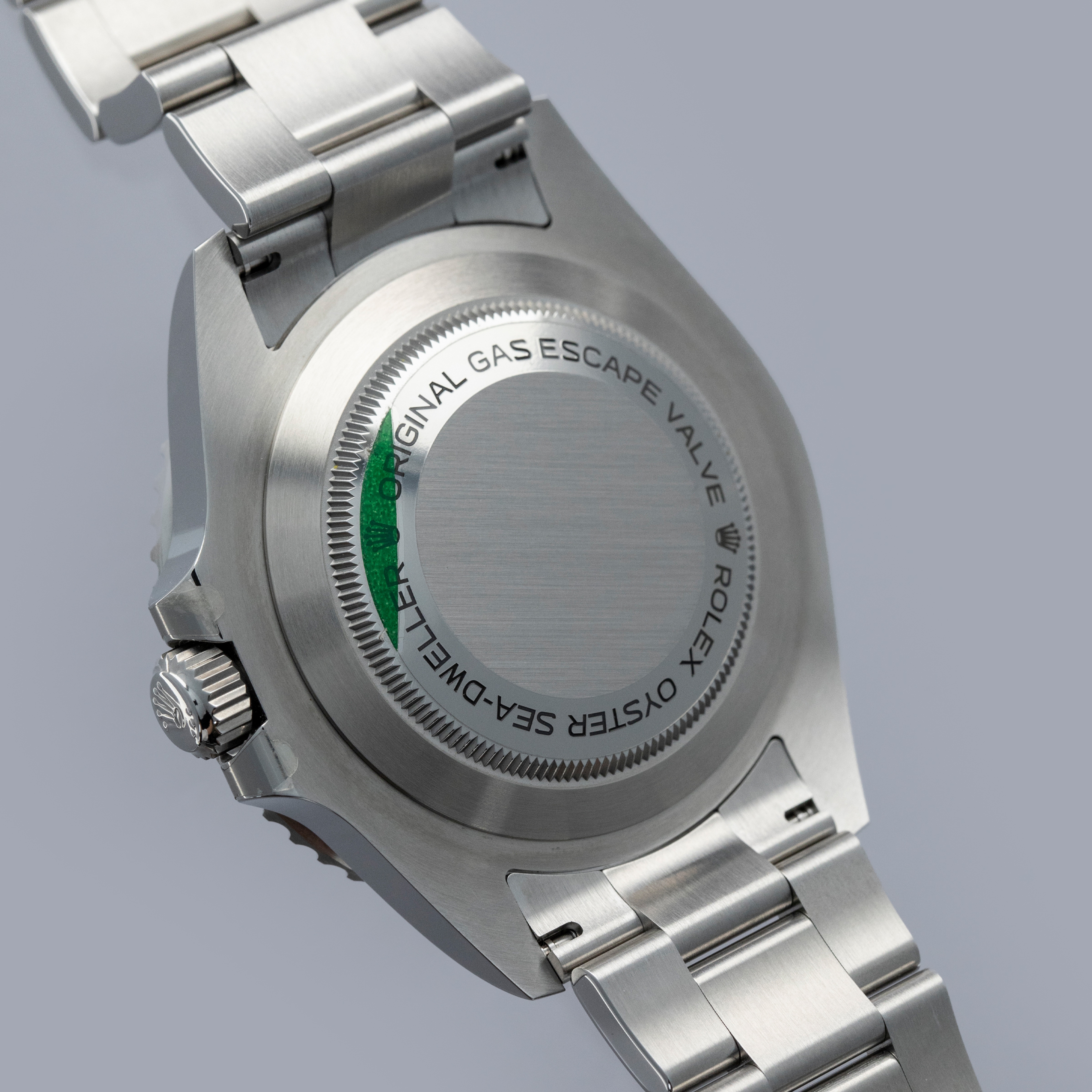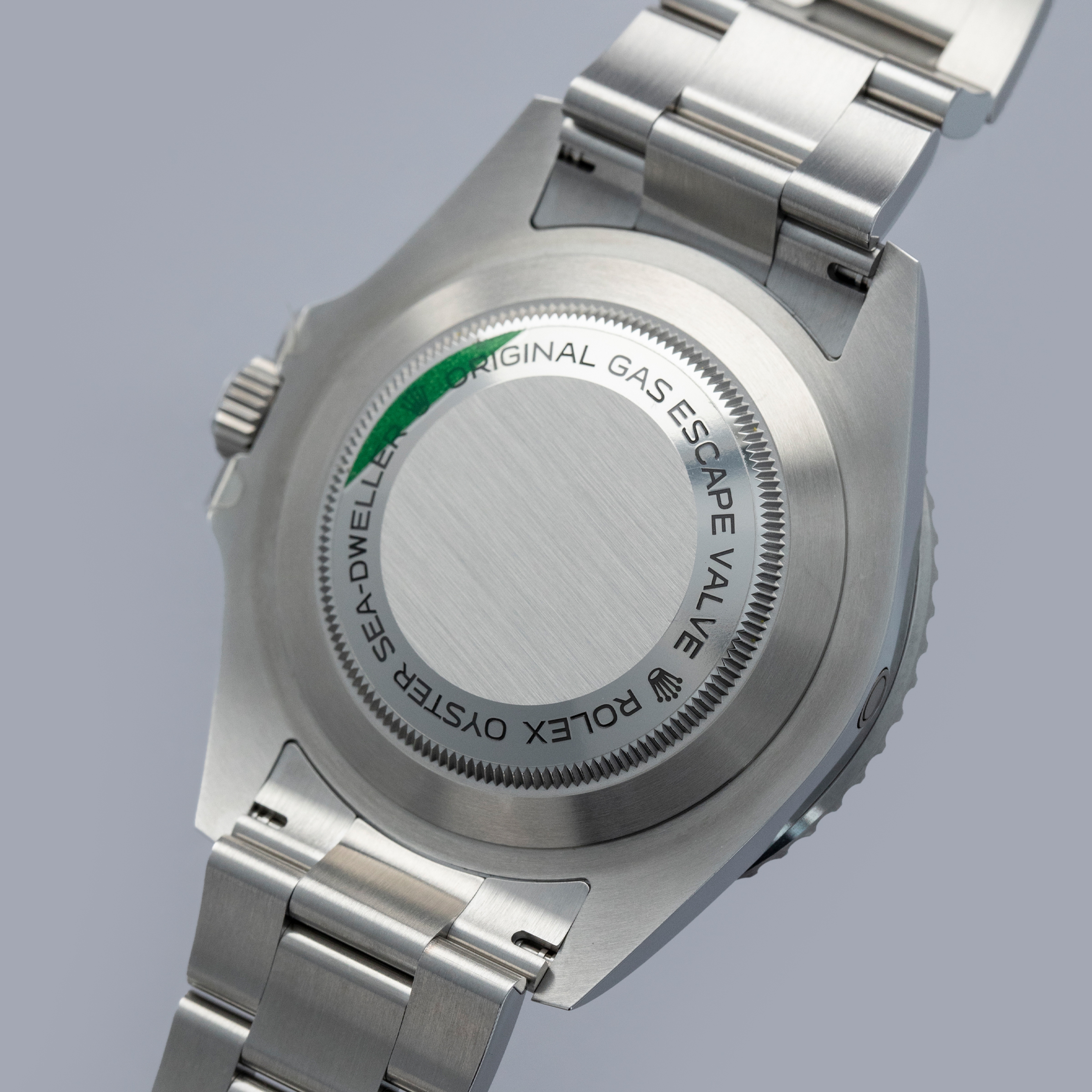 With its jet black dial, the Sea-Dweller retains its impeccable legibility with Rolex's signature luminous dots and Mercedes hour hand. Additionally, with its red inscription at 6 o'clock, it is immediately reminiscent of the vintage Sea-Dwellers that came before it.