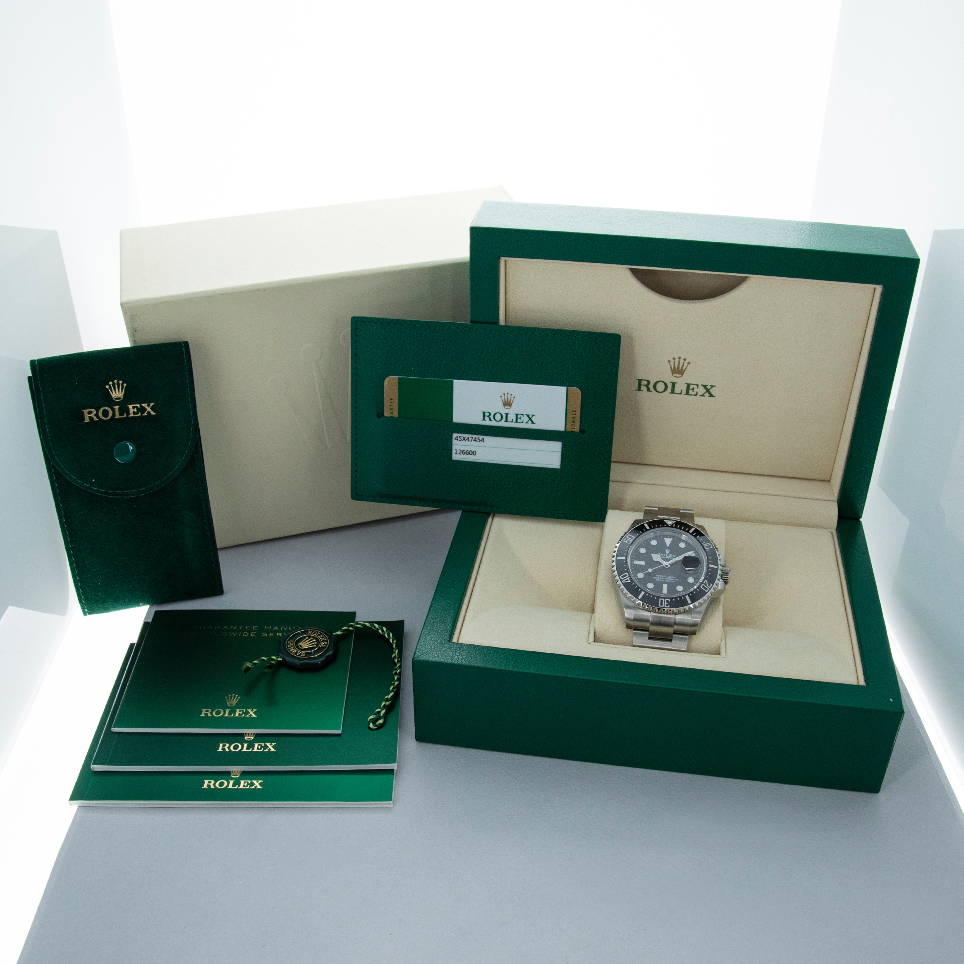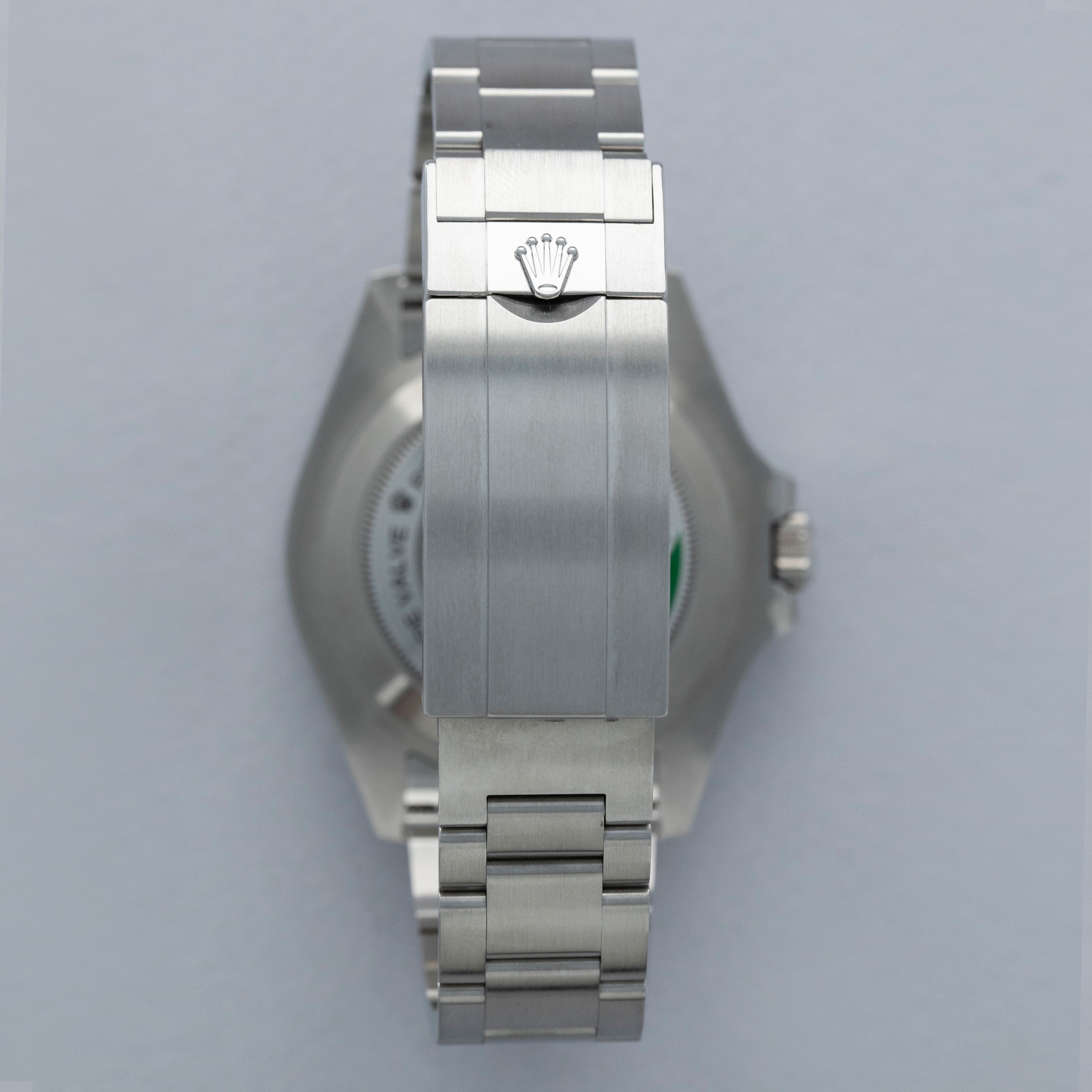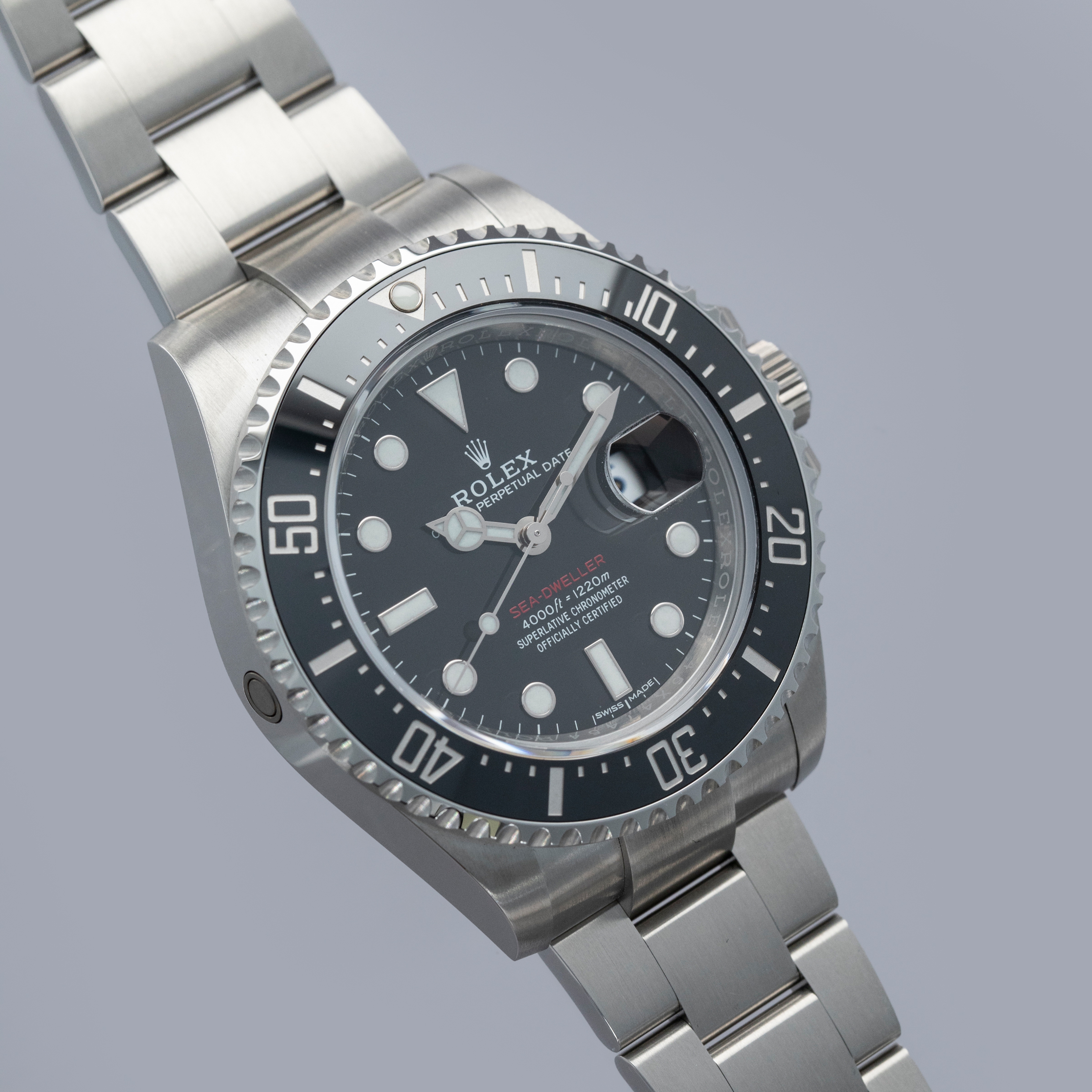With its jet black dial, the Sea-Dweller retains its impeccable legibility with Rolex's signature luminous dots and Mercedes hour hand. Additionally, with its red inscription at 6 o'clock, it is immediately reminiscent of the vintage Sea-Dwellers that came before it.