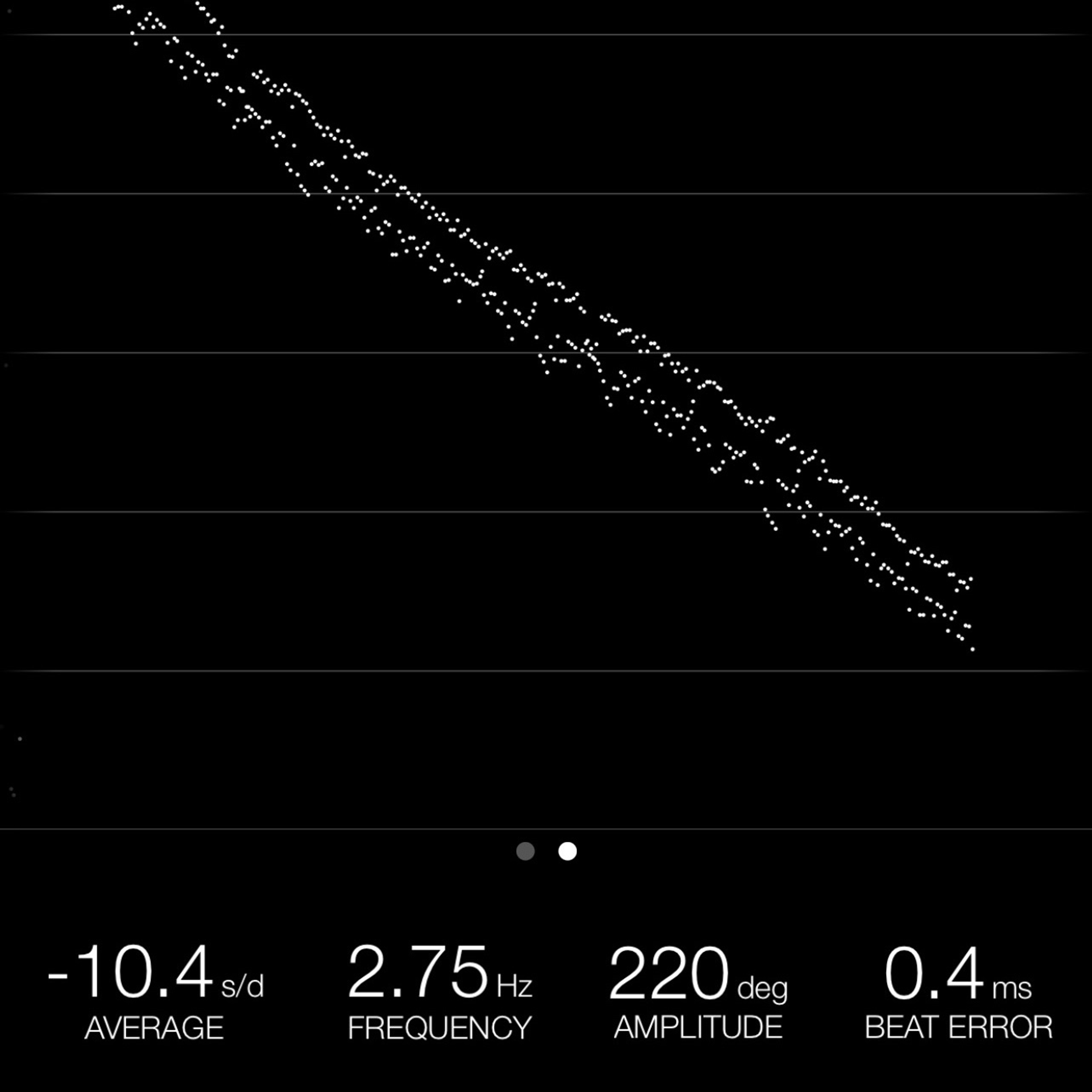 This reading was taken (crown down) with a ONEOF Accuracy Boutique Edition timing machine at time of cataloging. It is provided as a courtesy only, and shall not be construed as a warranty or guarantee of any kind. Please refer to our terms and conditions of sale for more information.