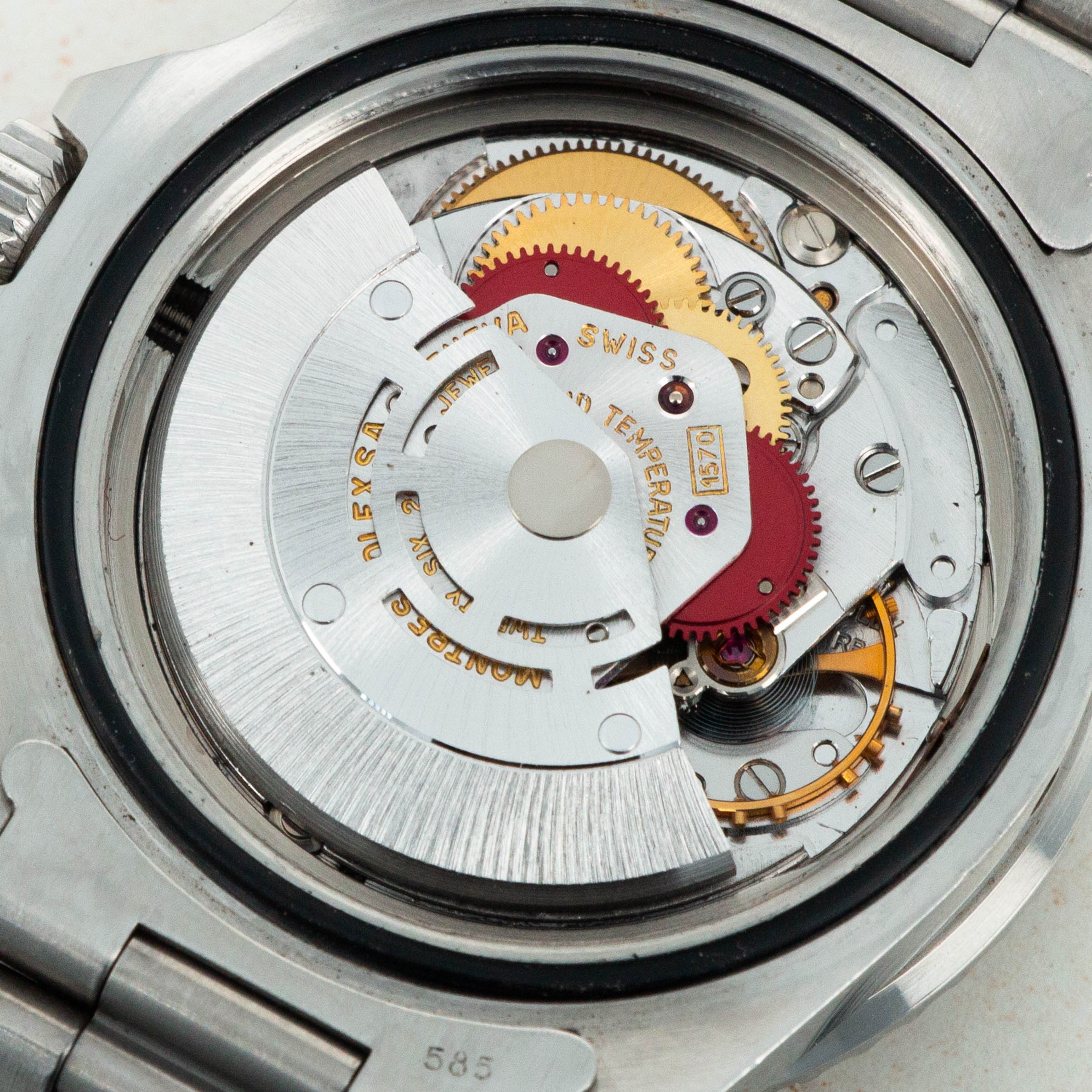 The Rolex caliber 1575 movement is pristine and like new. No signs of wear, nor service marks can be seen on the caseback. The watch shows no indication of having been serviced previously.