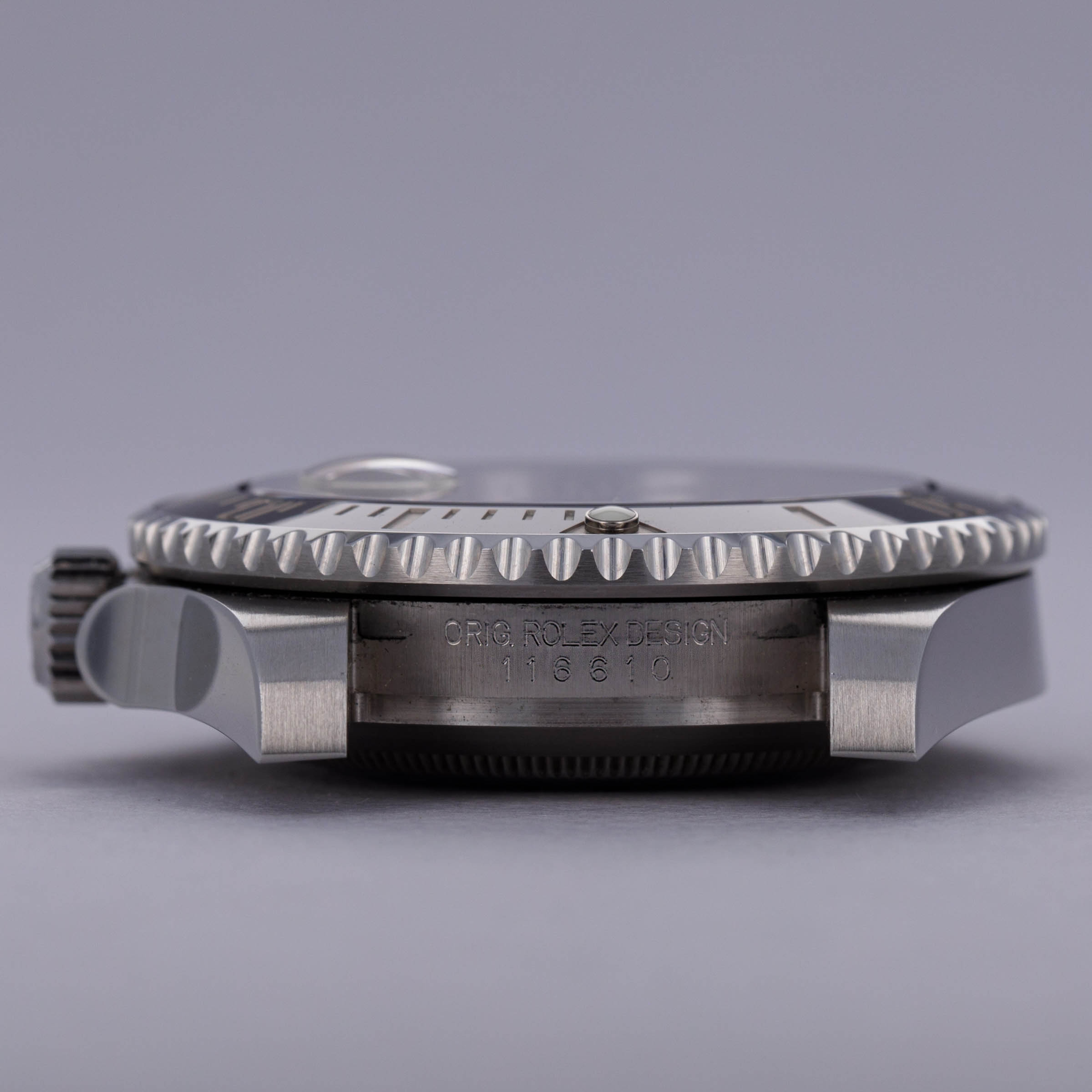 Known as the watch that brought Rolex's 'Maxi-case' into production, the ref. 116610LN is a notoriously robust watch famed for its thick lugs, large indices, and beefy crown guards.