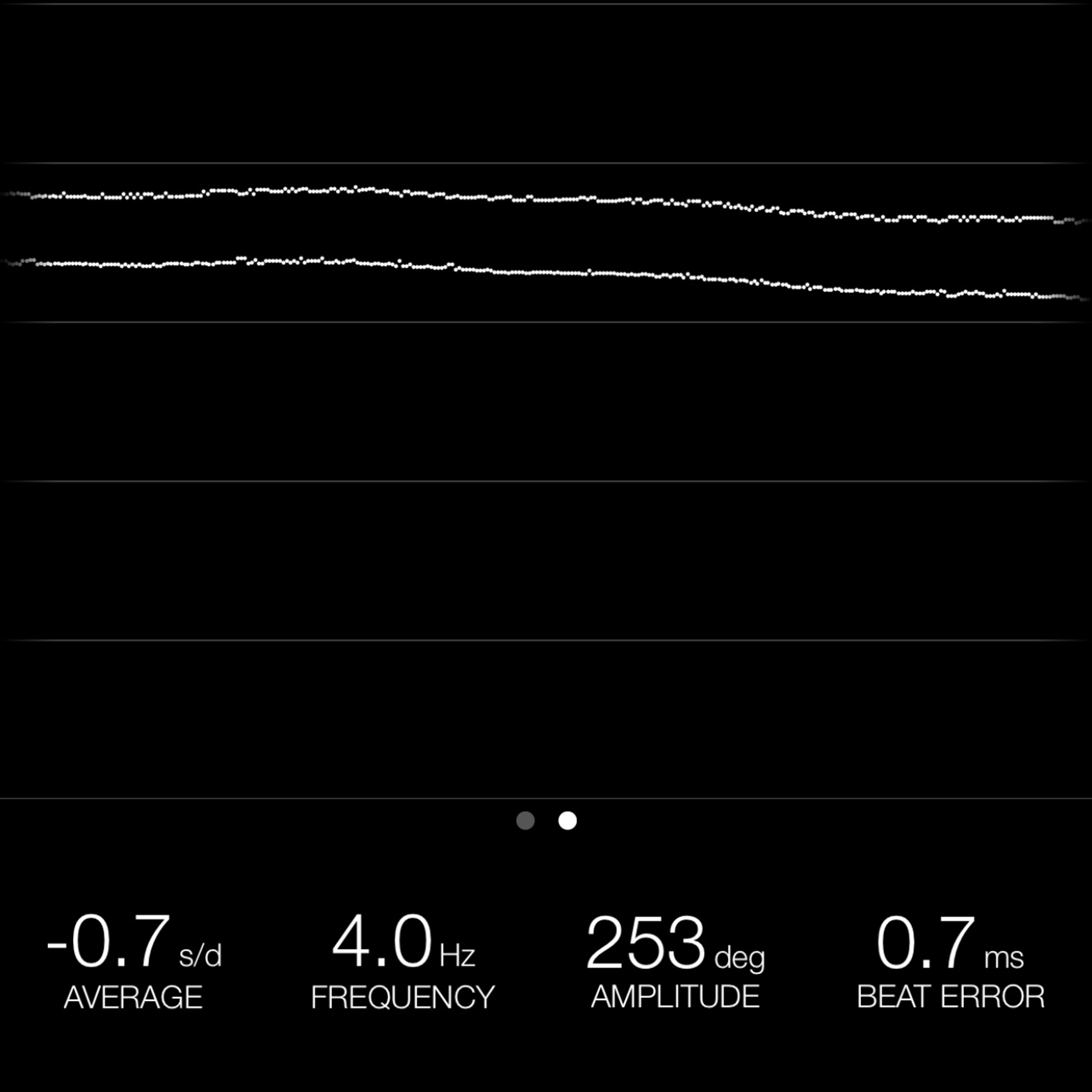This reading was taken (crown down) with a ONEOF Accuracy Boutique Edition timing machine at time of cataloging. It is provided as a courtesy only, and shall not be construed as a warranty or guarantee of any kind. Please refer to our terms and conditions of sale for more information.