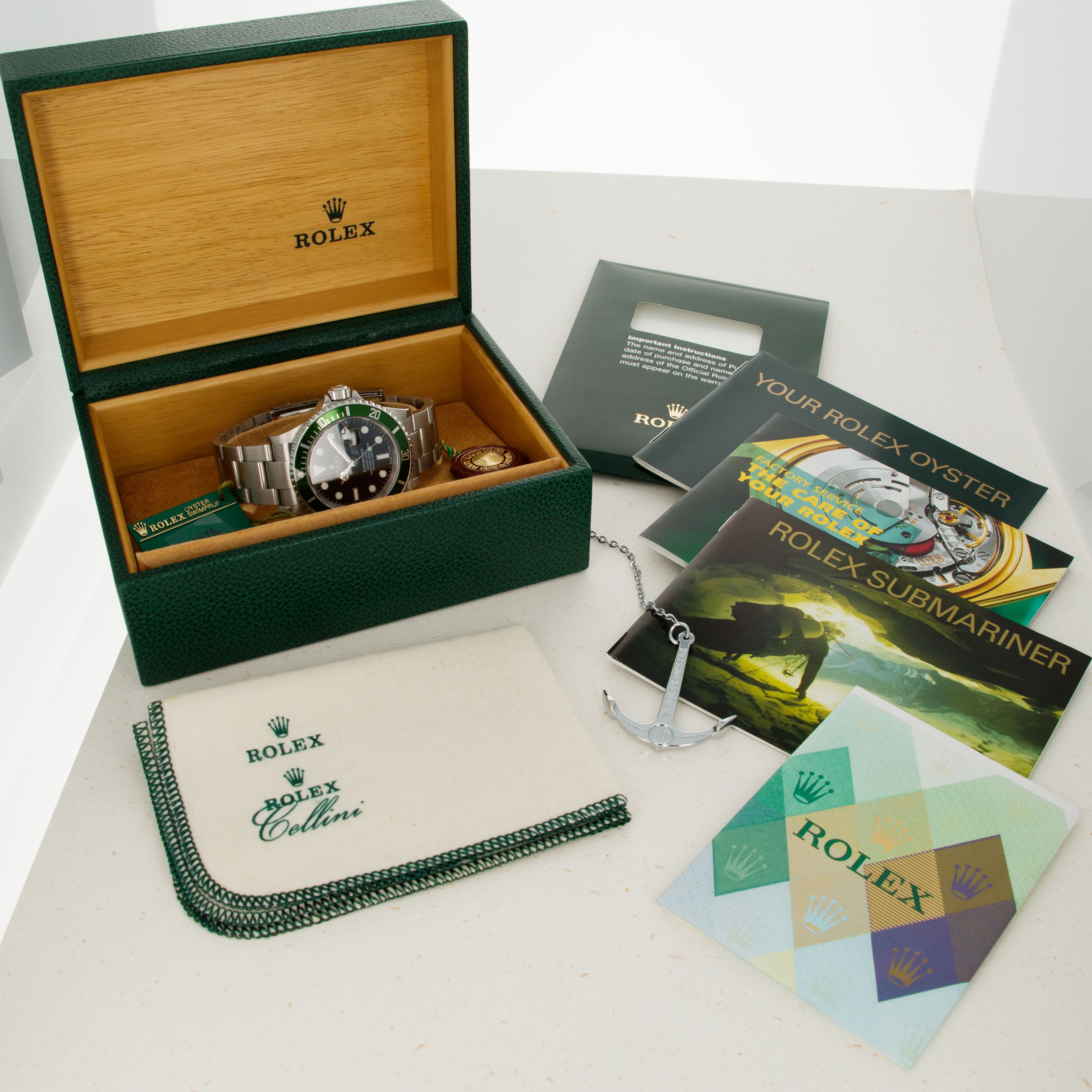 Finding a complete early "Flat 4" ref. 16610LV these days is no easy task, but here is one served to you on a silver platter. Not only is it part of a complete set, but it is also offered in New Old Stock condition with its original protective stickers still adhered to its surface, just waiting to be taken off. With the majority of examples being heavily worn, with aged and scratched bezel inserts, this one is a bona fide gem.