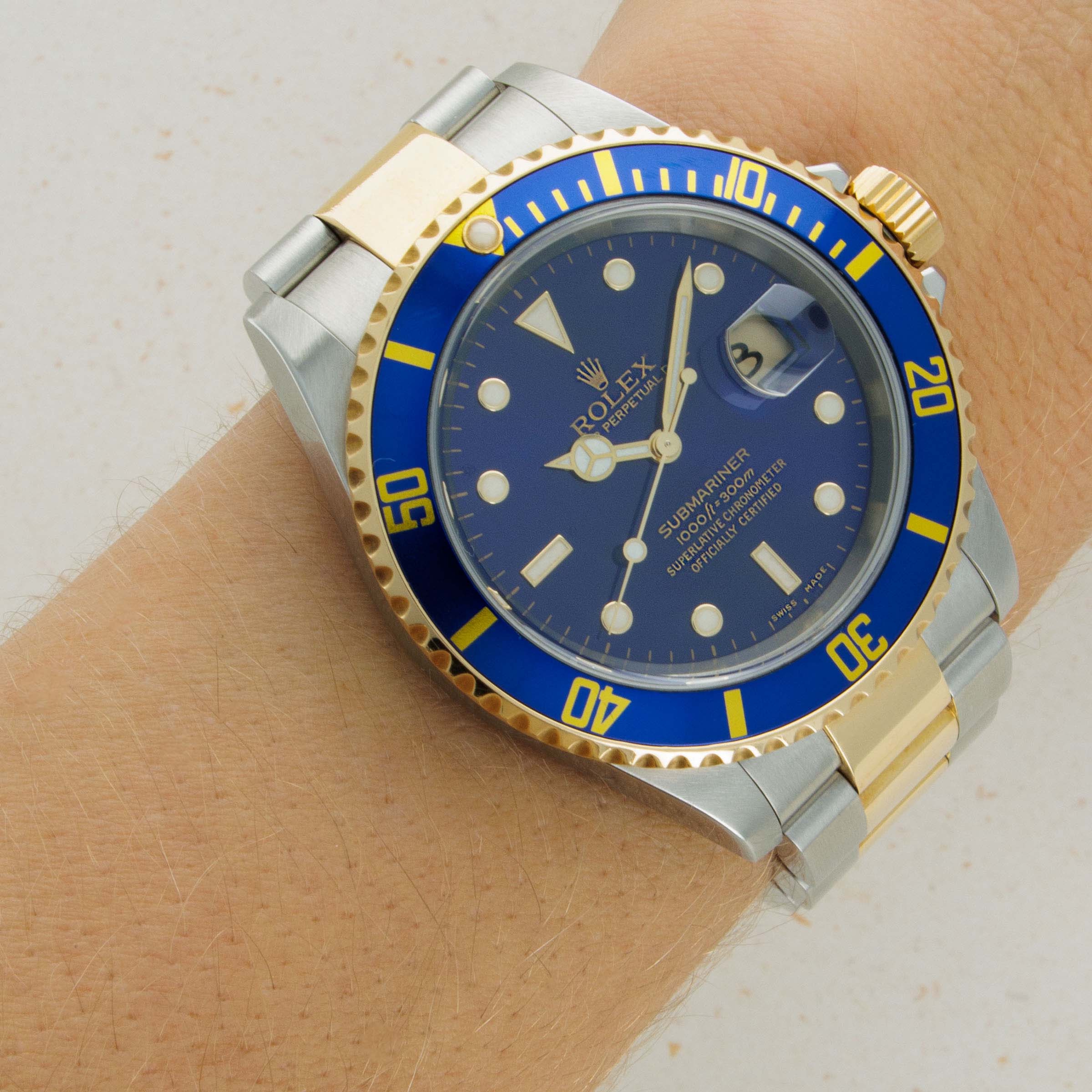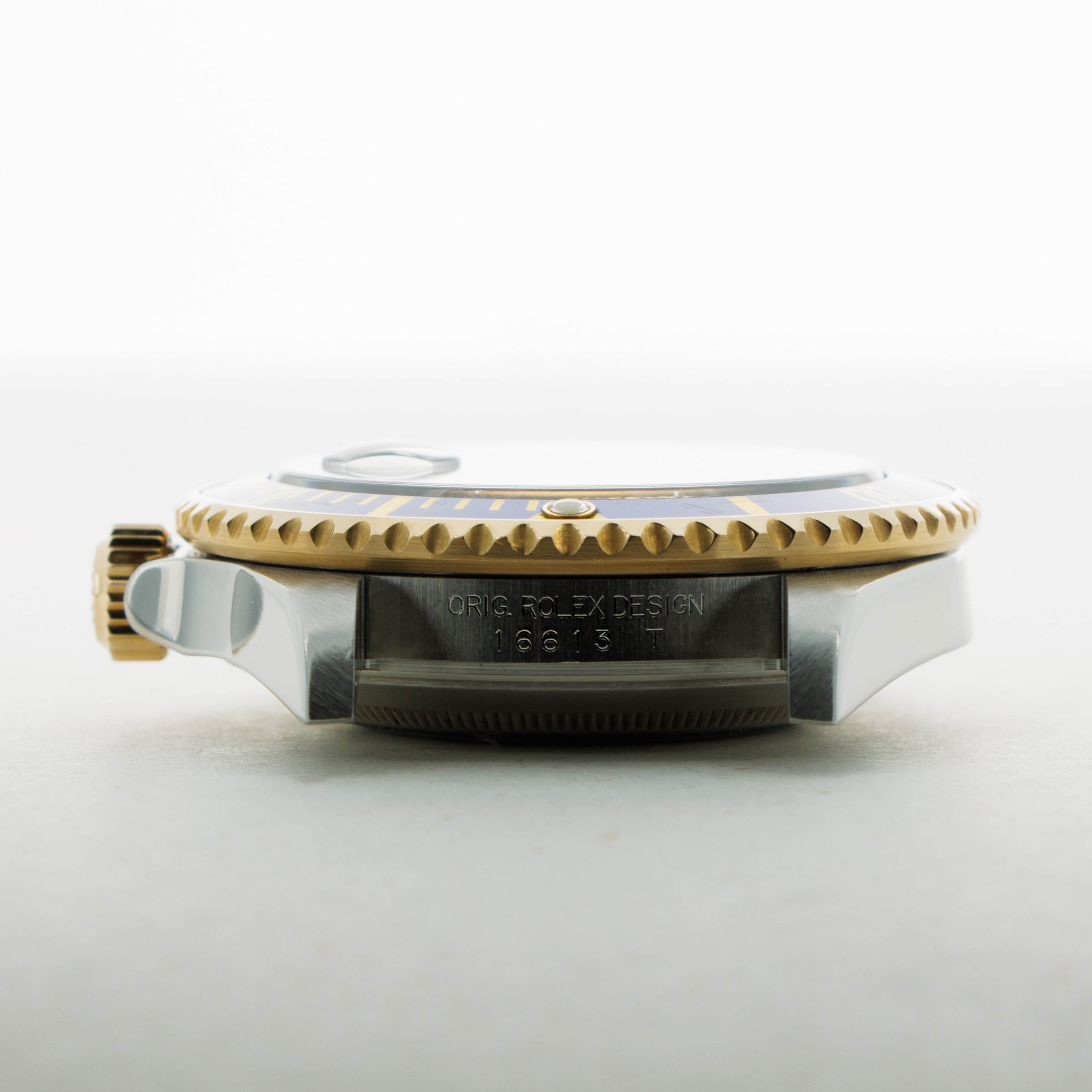 Affectionately known as the "Bluesy," the ref. 16613LB that we have here features a blue aluminum bezel insert alongside a matching blue dial that are punctuated with gold inscriptions, hour markers and hands - which matches the 18kt yellow gold in its bi-metal construction.
