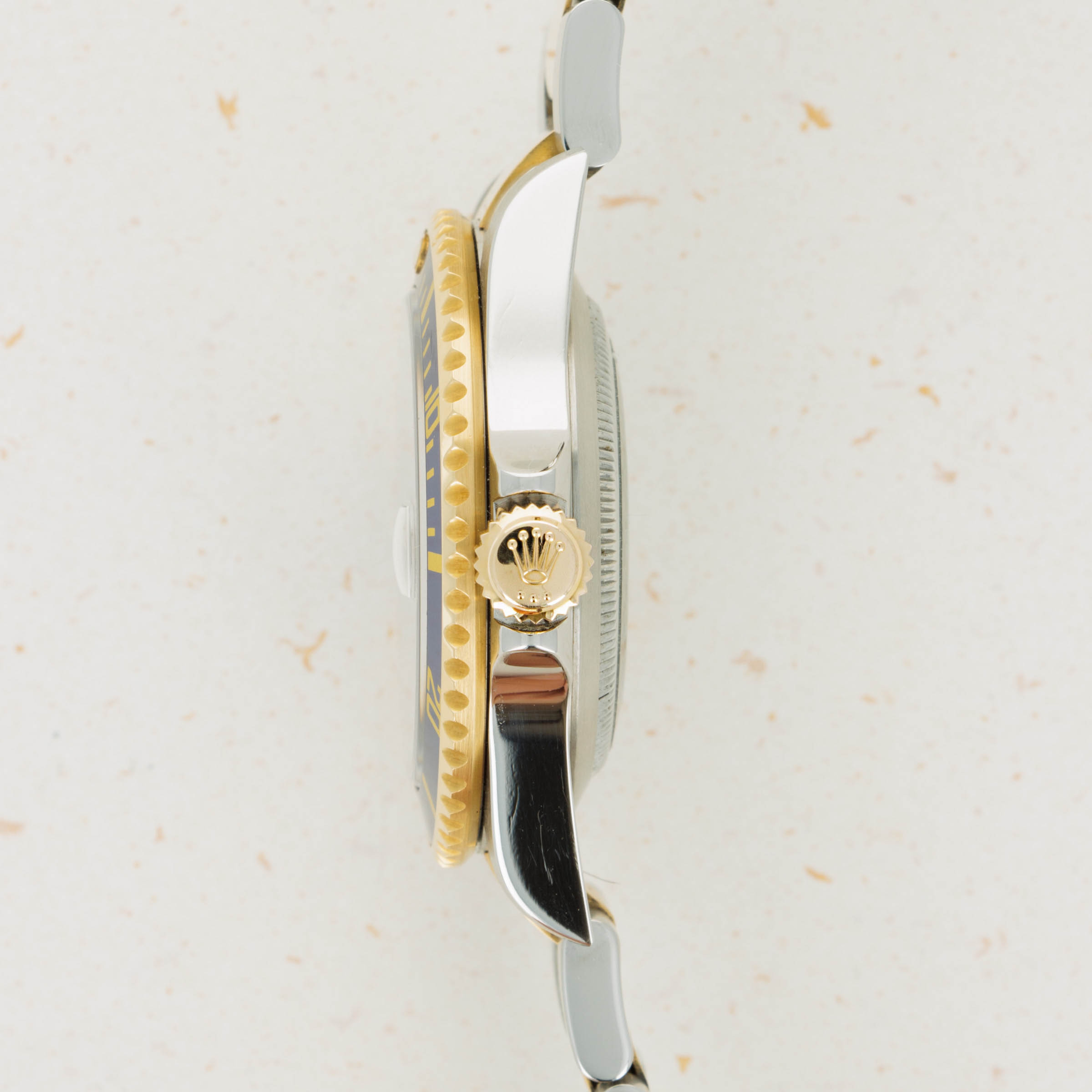 A modern classic, the Bluesy is rich in character thanks to its iconic aesthetic that blends the Rolex Submariner's rugged design with 18kt yellow gold and its traditional stainless steel.