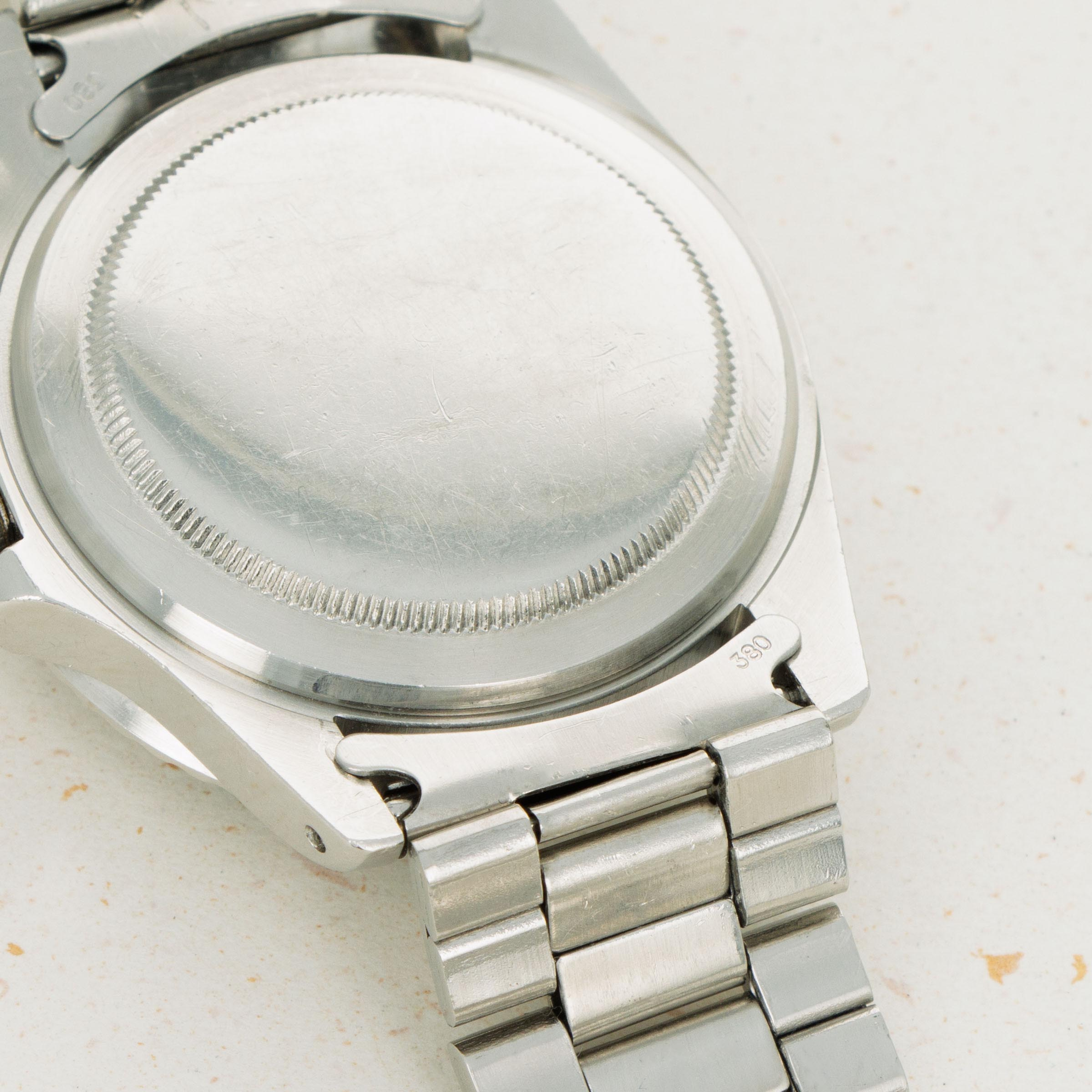 Preserved in wonderful condition, this example's black aluminum bezel retains its jet-black color and lacks any large scratches or dents that might interfere with it's wearer's ability to enjoy its beautiful design.