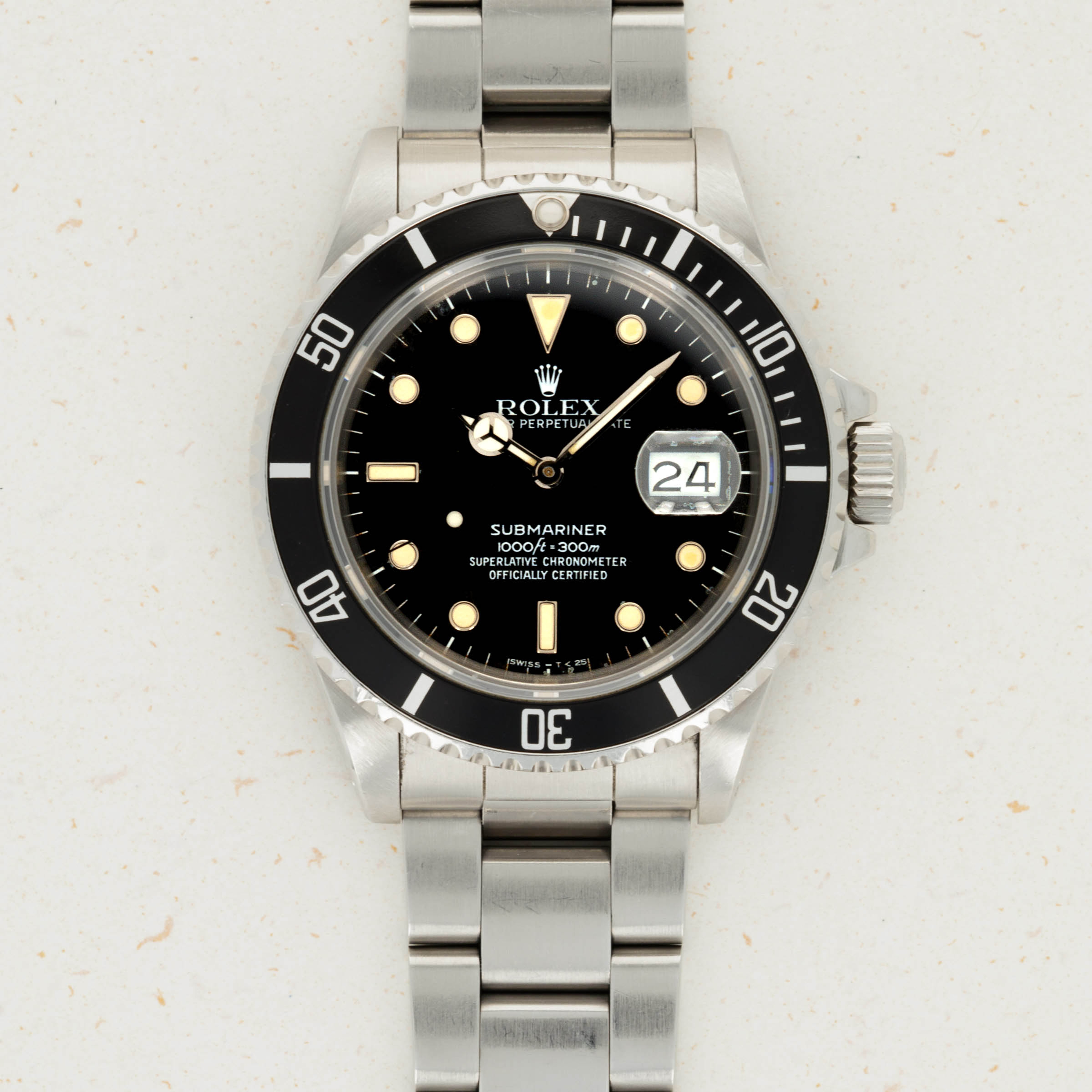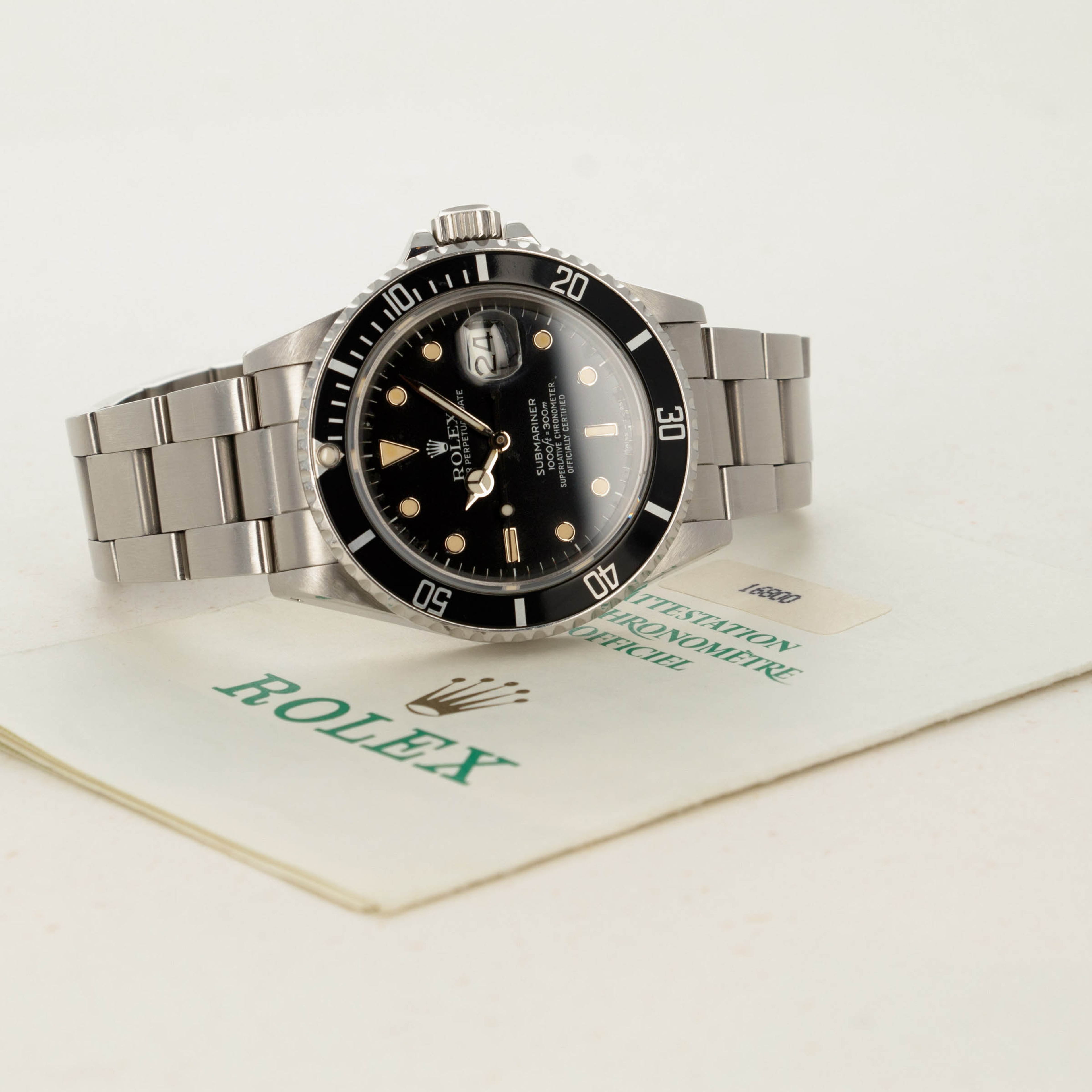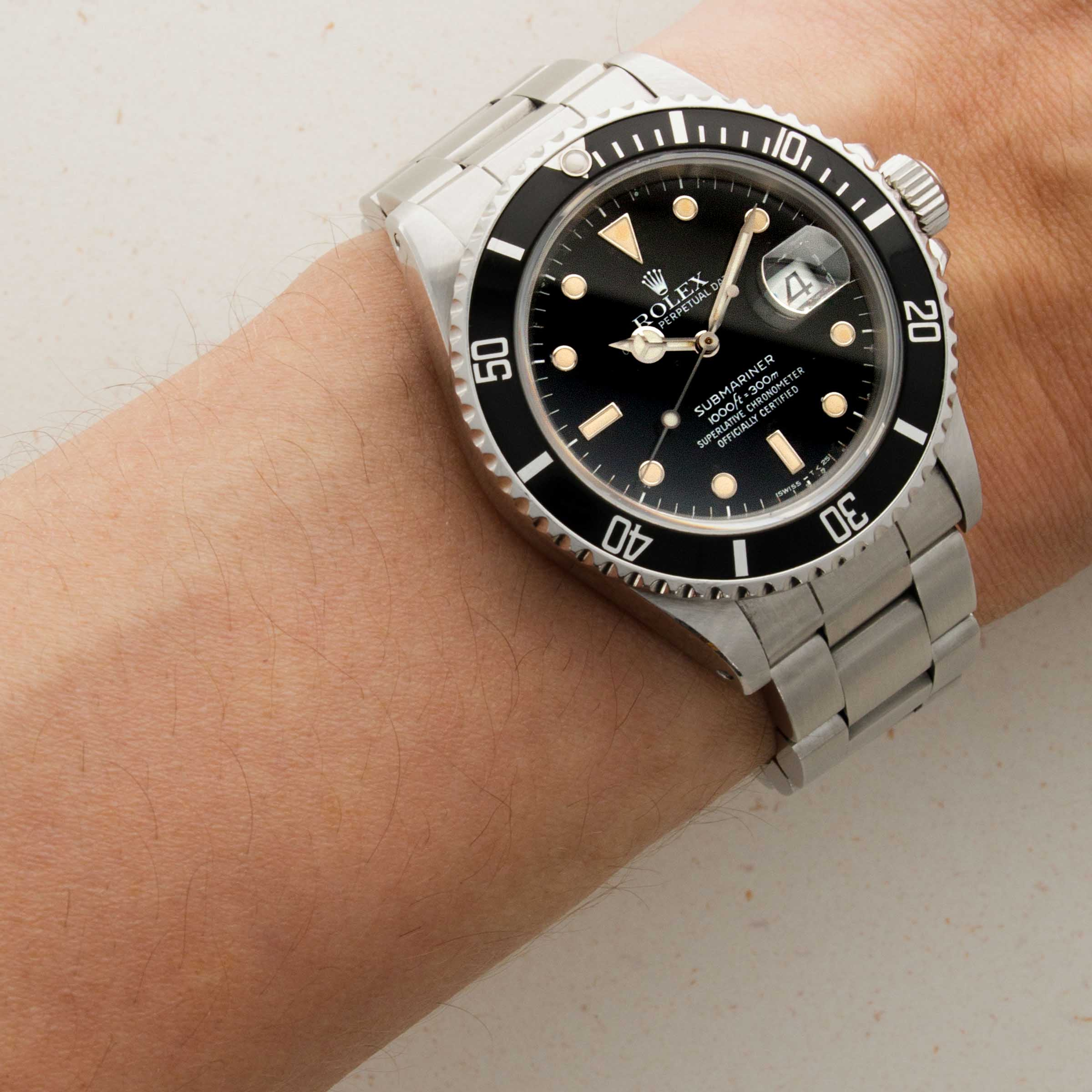With its pitch black bezel insert, sharp edges and preserved surfaces, this ref. 16800 is a fantastic demonstration of what vintage Rolex timepieces were like when they first left the AD.
