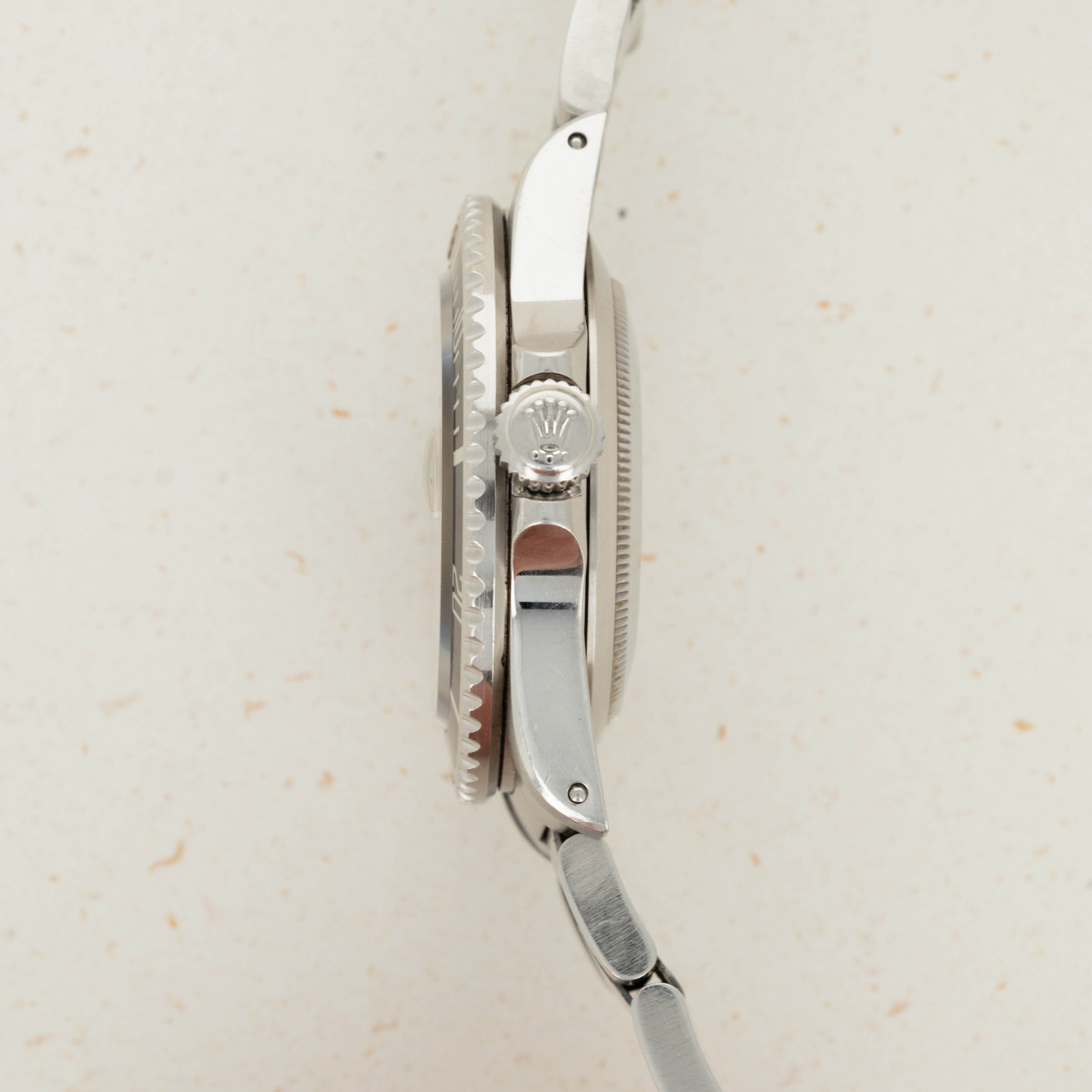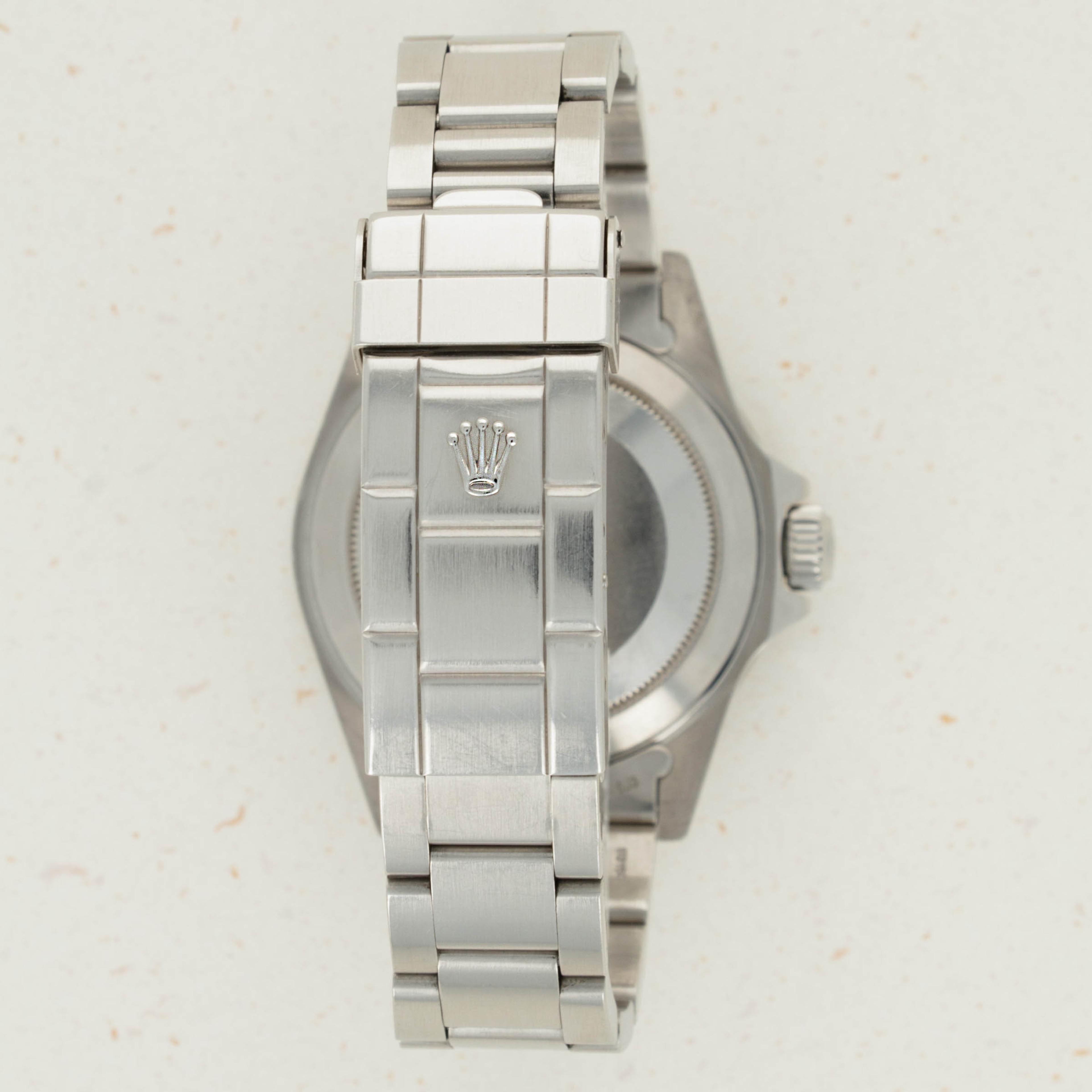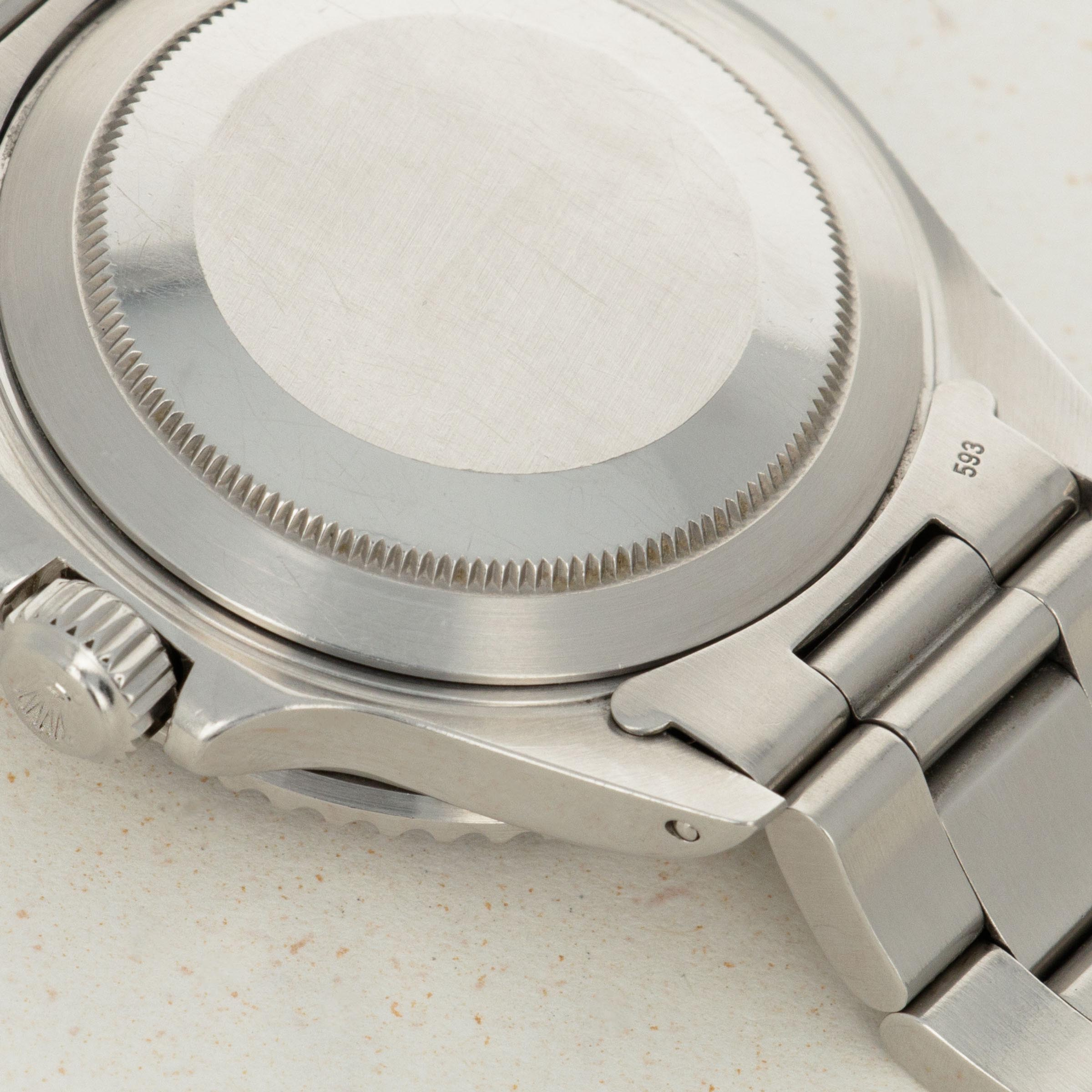 Offered in great condition, this example's edges are sharp, its black anodized aluminum bezel is virtually scratch-free, and its signature stainless steel construction is devoid of wear and tear throughout. The final cherry on top, the Rolex coronet atop its Oysterlock clasp is extremely pronounced.